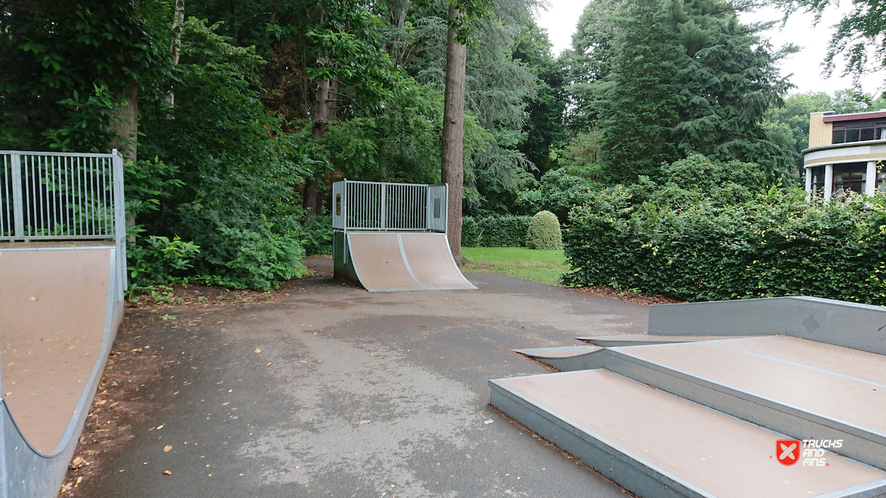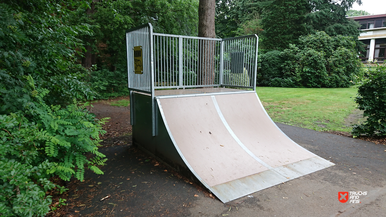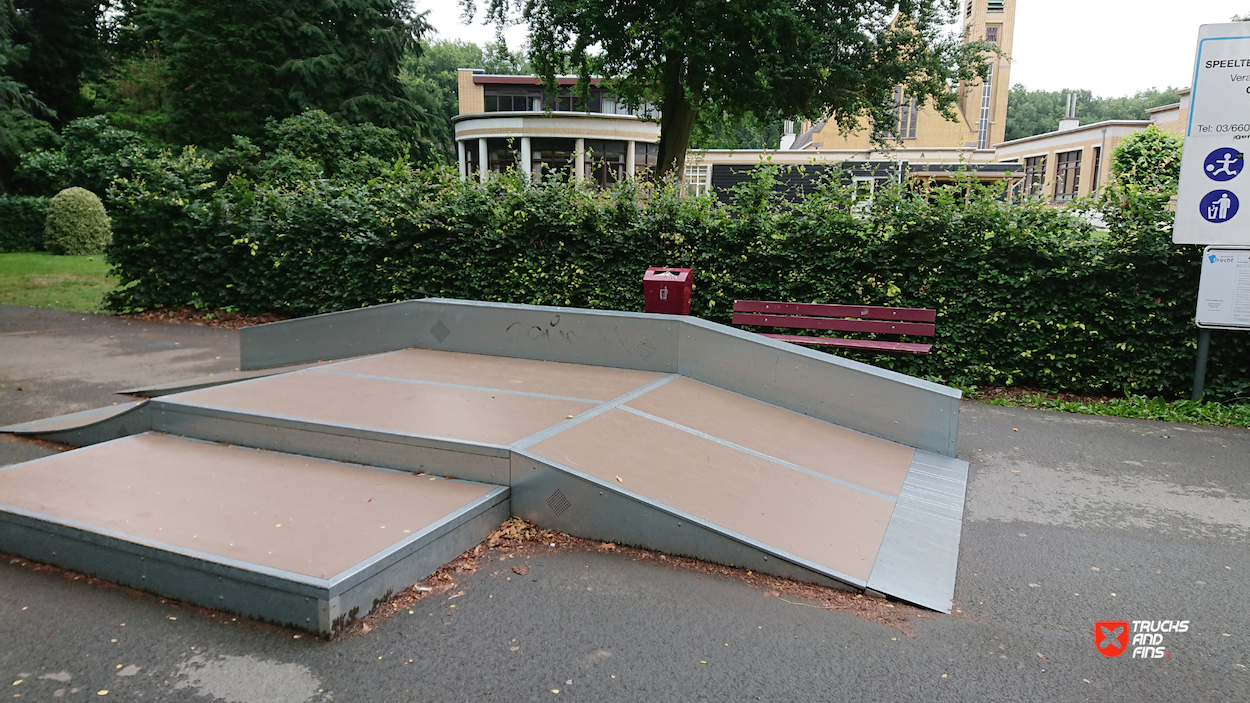 Sint Job Skatepark features a miniramp and several basic skateboarding obstacles in a back and forth setup. The skatepark was built by Rhino Ramps.