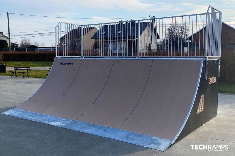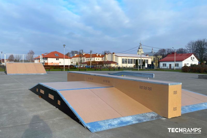 Białobrzegi Skatepark is a small park with several basic obstacles in a back and forth setup. The skatepark was built by Techramps