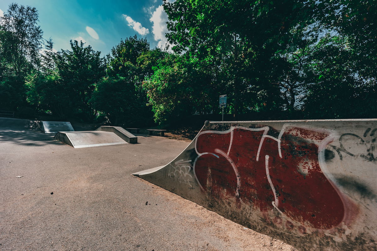 Birkenau skatepark is a small park with several basic skateboarding obstacles in a back and forth setup.