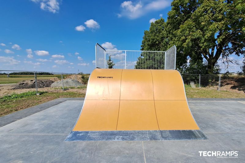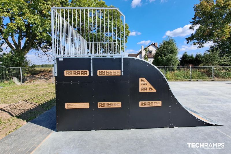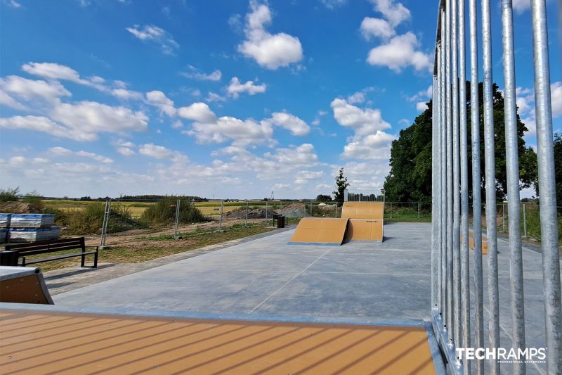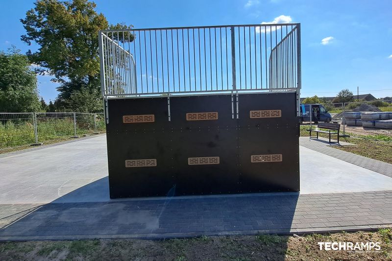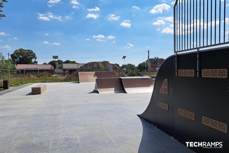 Biskupiec skatepark is a small park with several basic obstacles in a back and forth setup. The skatepark was built by Techramps.