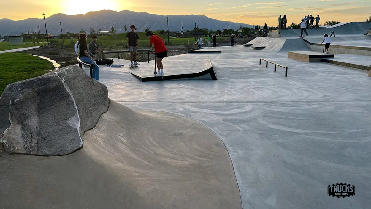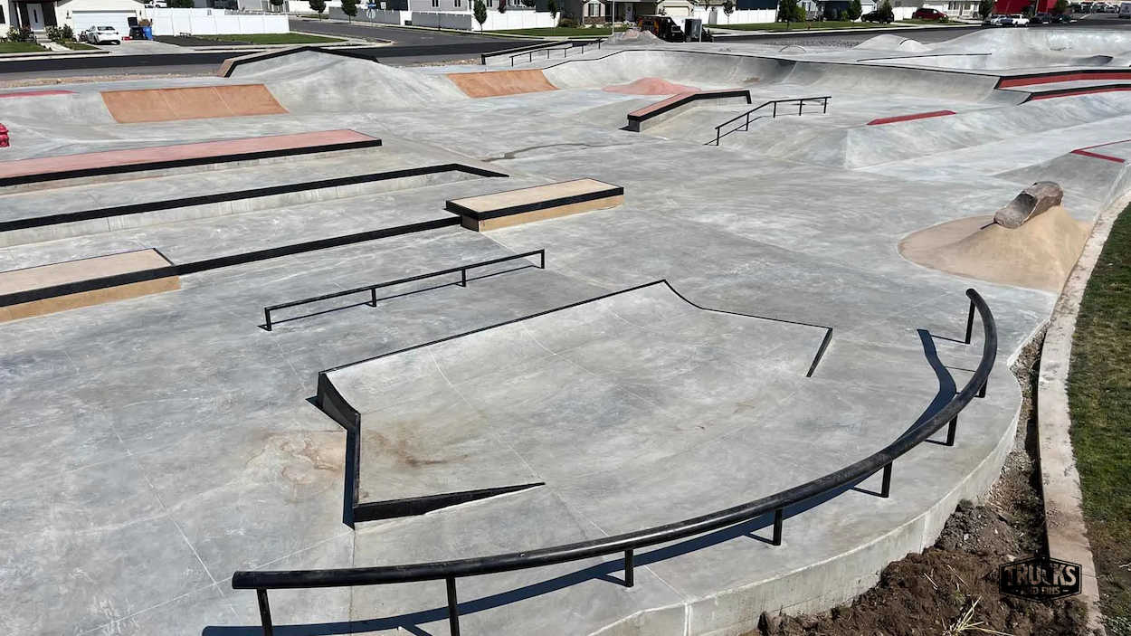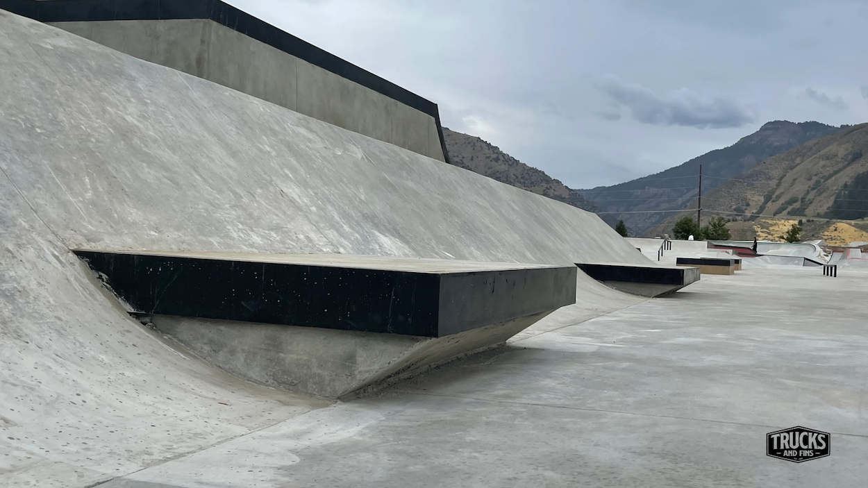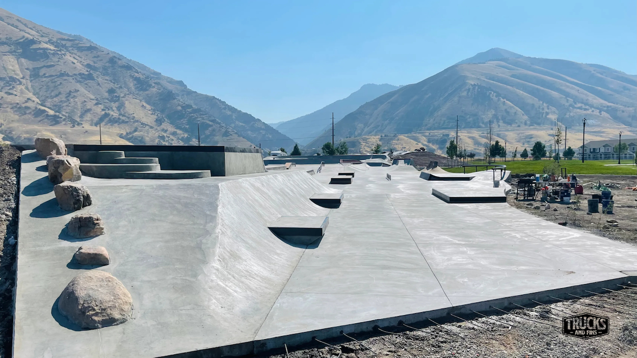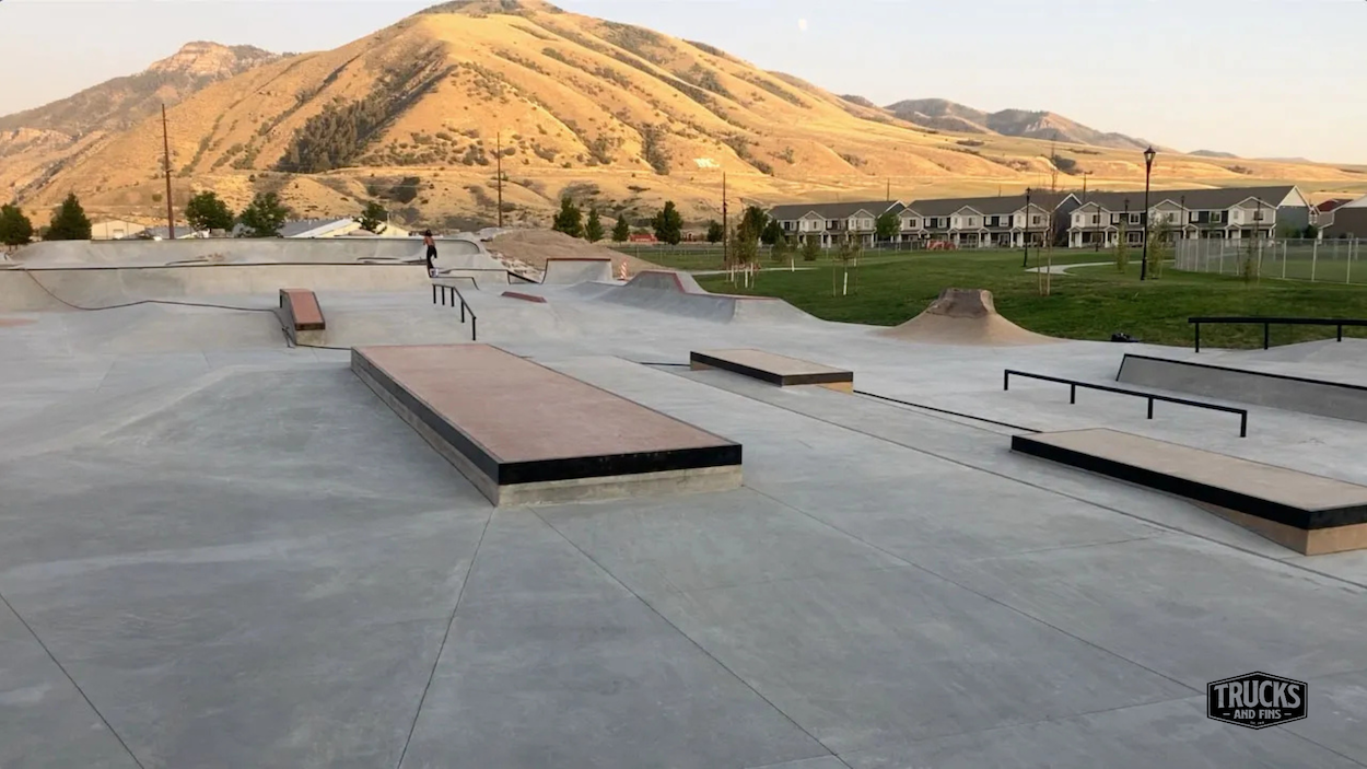 Blacksmith Fork skatepark, aka Hyrum skatepark, is a large concrete park made up of a nice mix of transition and street obstacles. he layout of this park is designed for all-around flow, while still offering plenty of tucked-away zones perfect for solo sessions. If you break it down from the Blacksmith Fork Canyon side heading toward the valley, you’ll find distinct sections: the amoeba bowl and rockscape, a hybrid flow track with a 3.5-foot mini, a high street line with a kinked rail, a main street-style plaza, a ditch zone, a Barcelona-inspired multi-feature area, and the ledge land entry.