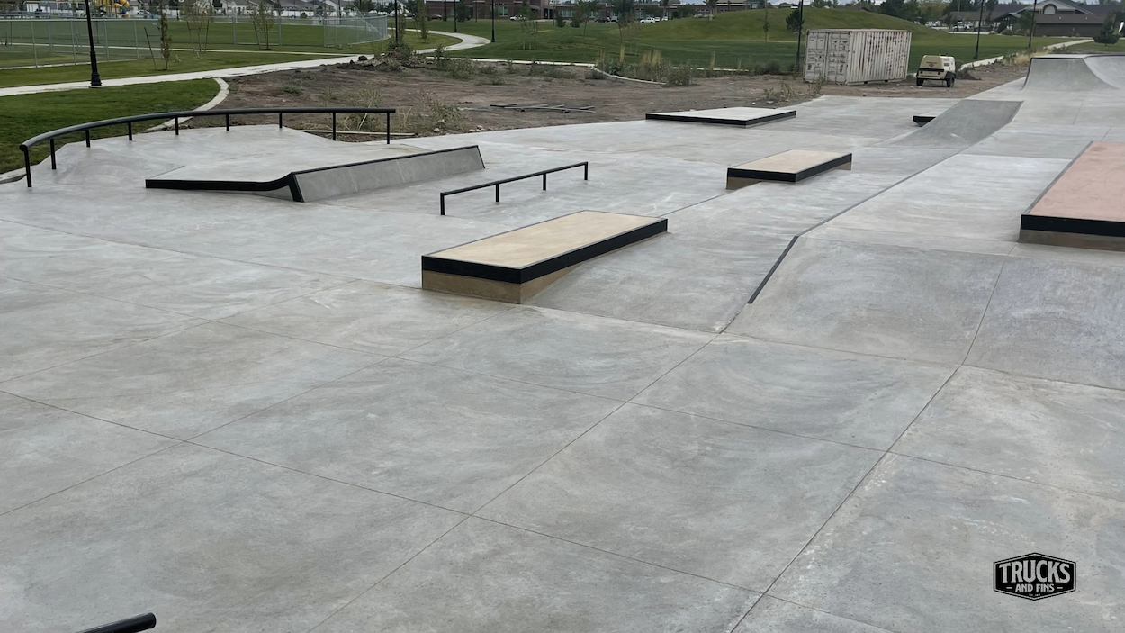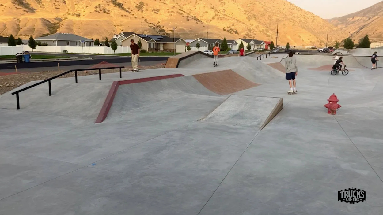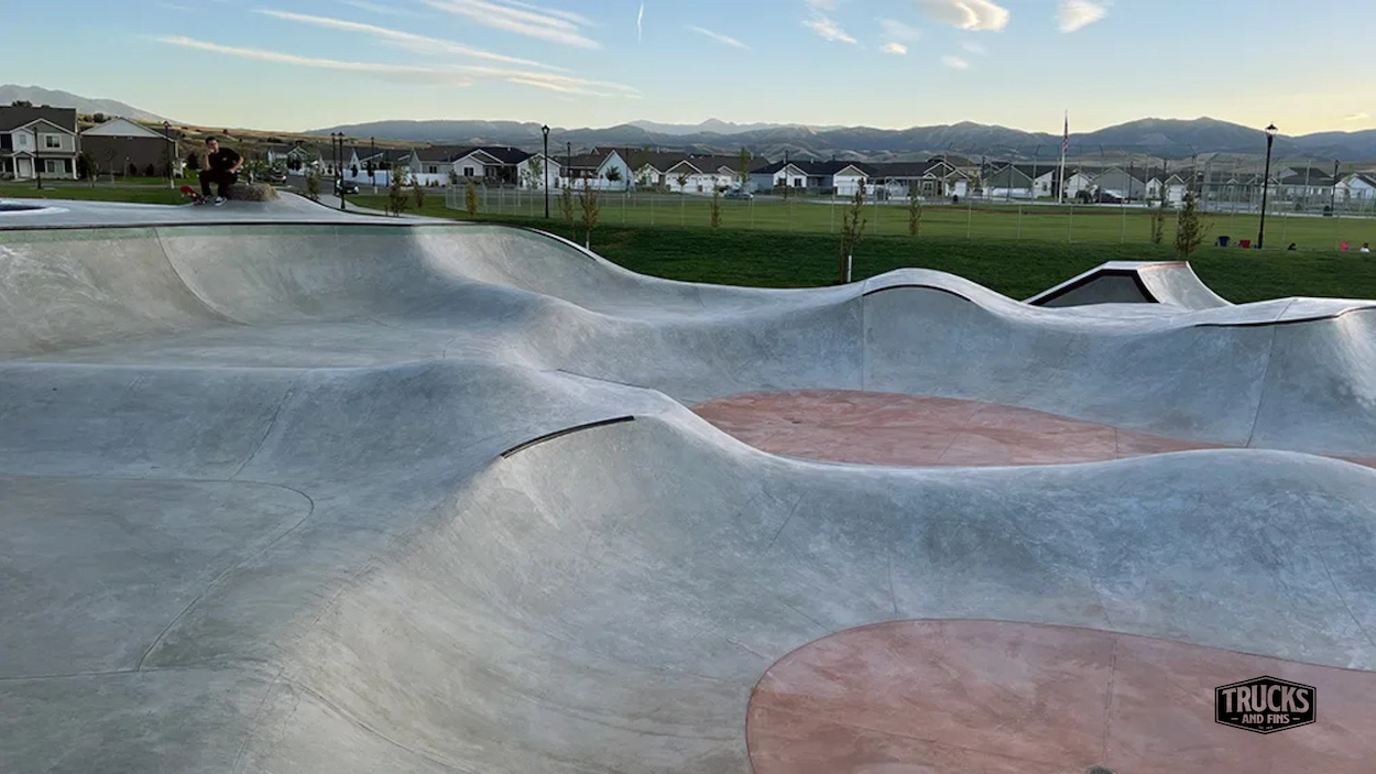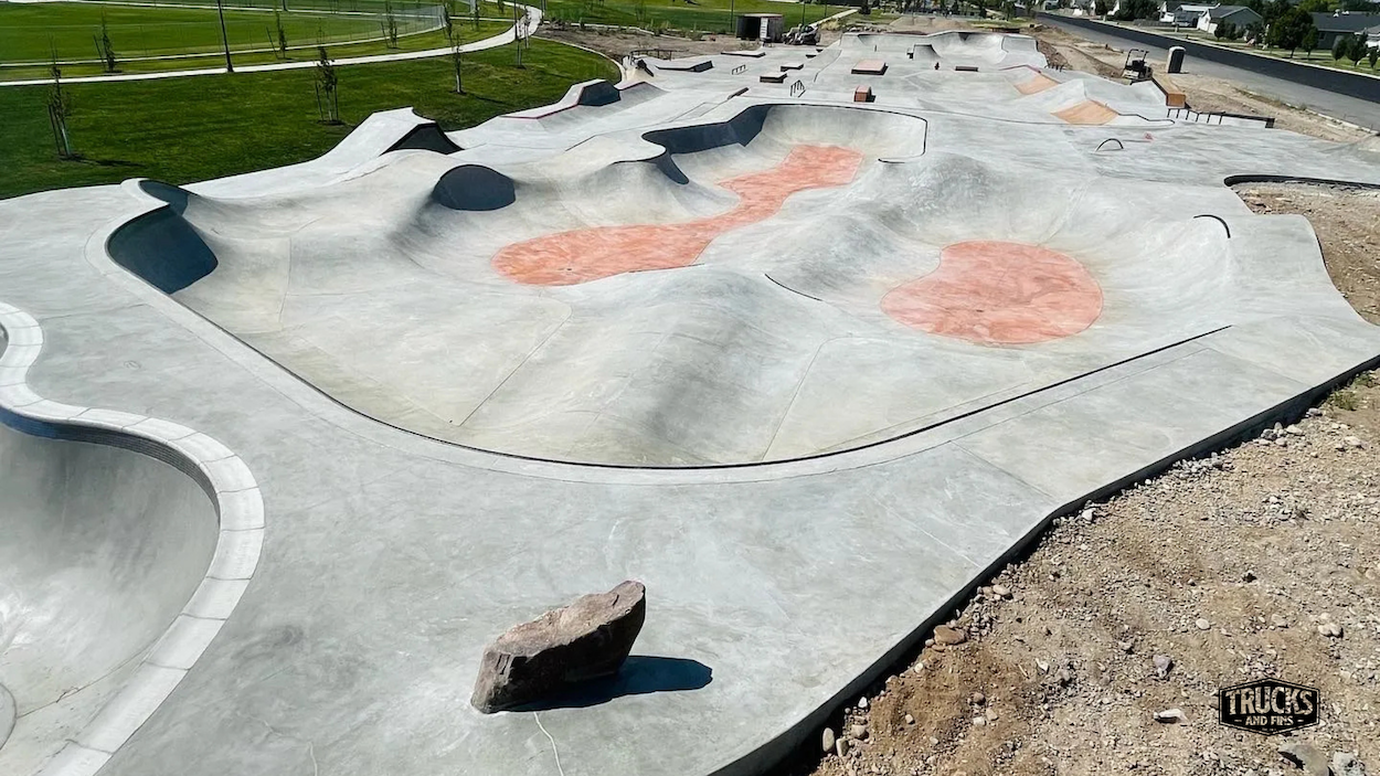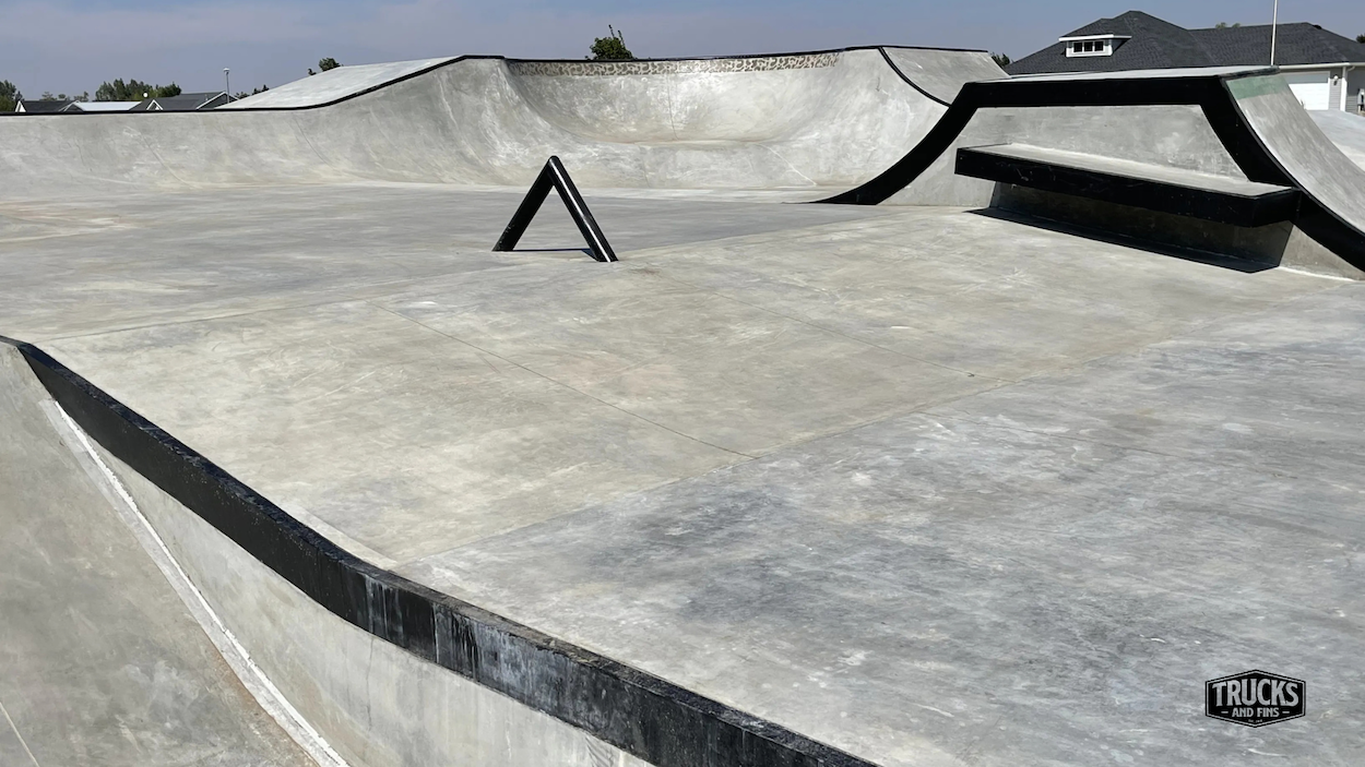 Blacksmith Fork skatepark, aka Hyrum skatepark, is a large concrete park made up of a nice mix of transition and street obstacles. he layout of this park is designed for all-around flow, while still offering plenty of tucked-away zones perfect for solo sessions. If you break it down from the Blacksmith Fork Canyon side heading toward the valley, you’ll find distinct sections: the amoeba bowl and rockscape, a hybrid flow track with a 3.5-foot mini, a high street line with a kinked rail, a main street-style plaza, a ditch zone, a Barcelona-inspired multi-feature area, and the ledge land entry.