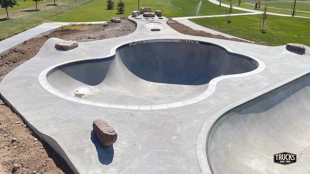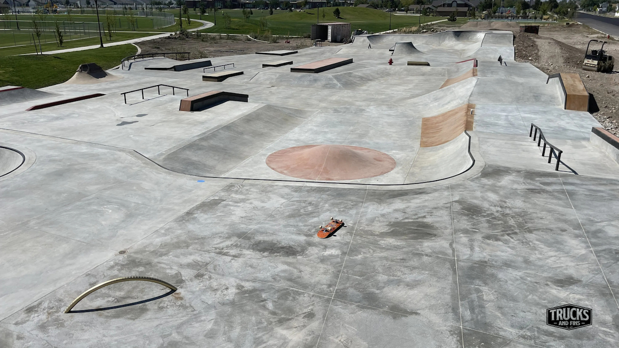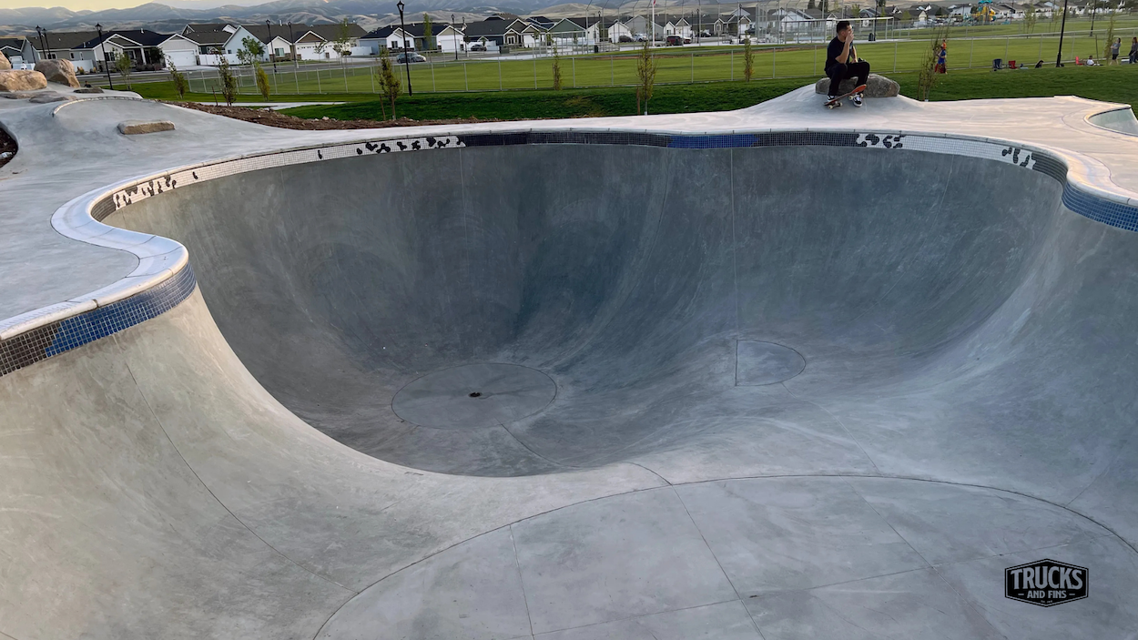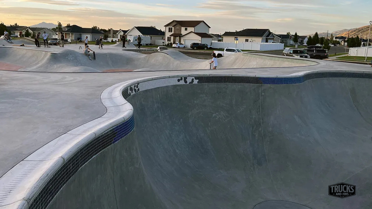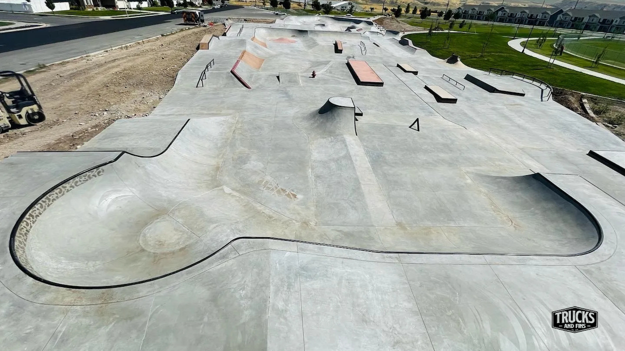 Blacksmith Fork skatepark, aka Hyrum skatepark, is a large concrete park made up of a nice mix of transition and street obstacles. he layout of this park is designed for all-around flow, while still offering plenty of tucked-away zones perfect for solo sessions. If you break it down from the Blacksmith Fork Canyon side heading toward the valley, you’ll find distinct sections: the amoeba bowl and rockscape, a hybrid flow track with a 3.5-foot mini, a high street line with a kinked rail, a main street-style plaza, a ditch zone, a Barcelona-inspired multi-feature area, and the ledge land entry.