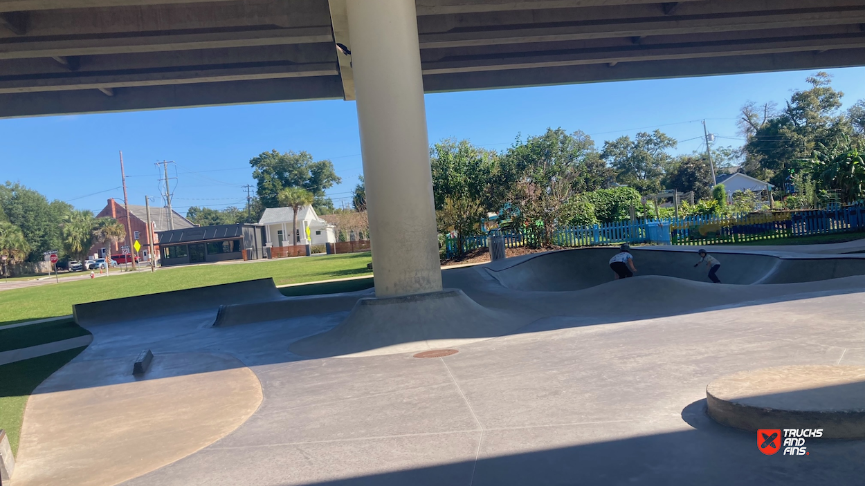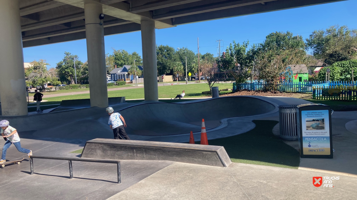 The skatepark was designed by Pivot Custom and constructed by Evergreen Skateparks. The project was initiated by Upward Intuition, a local nonprofit founded by Jon Shell, which spearheaded the campaign to bring a modern skatepark to Pensacola. Funding for the skatepark came from various sources, including the City of Pensacola’s Local Option Sales Tax, private donors, and the American Rescue Plan Act. Additionally, a significant grant from the Gannett Foundation helped fund the beginner area.
