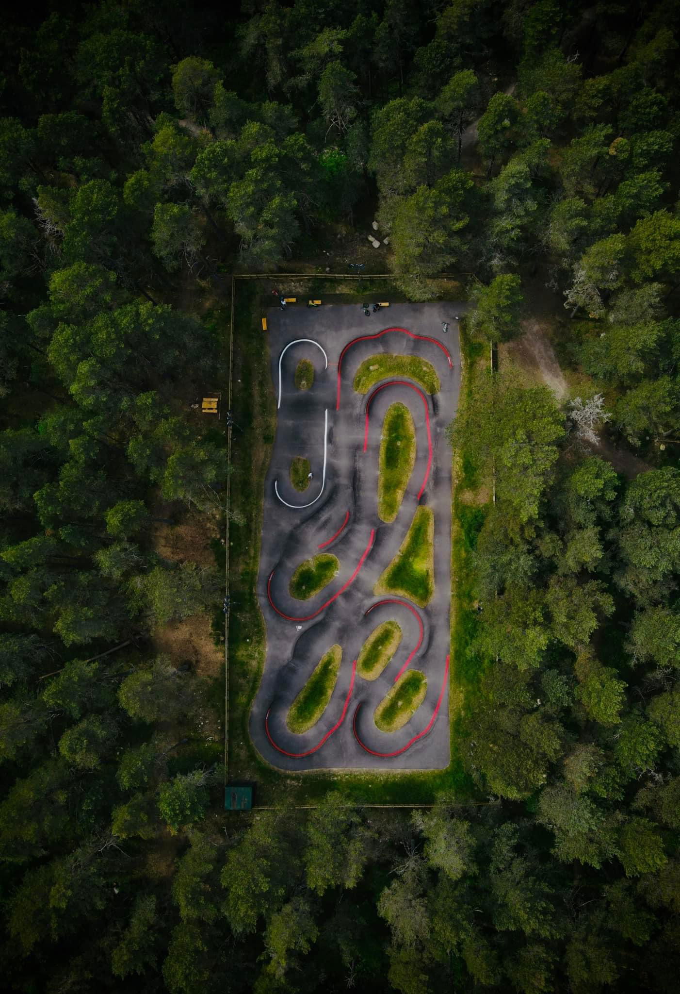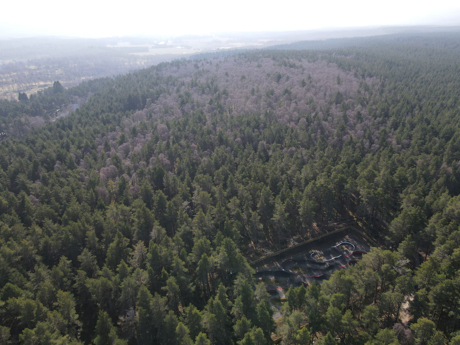Boat of Garten pumptrack is an asphalt bike and skateboarding track built by VelosolutionsUK. Boat of Garten pumptrack nestled in the trees in the Cairngorms National Park and a stones throw away from RideScotland who conceptualised this incredible project. The site was a former curling rink and the woodland setting is stunning. 226m Main Track + 46m Kids Track. Floodlights installed too!