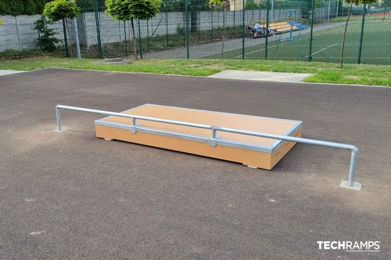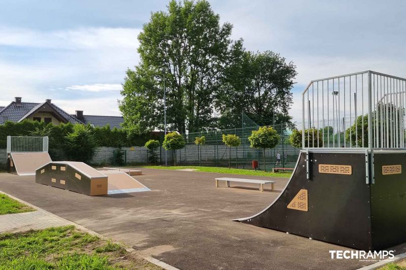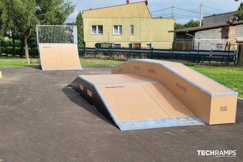 Bojszowy skatepark is a small park with several basic obstacles in a back and forth setup. The skatepark was built by Techramps.