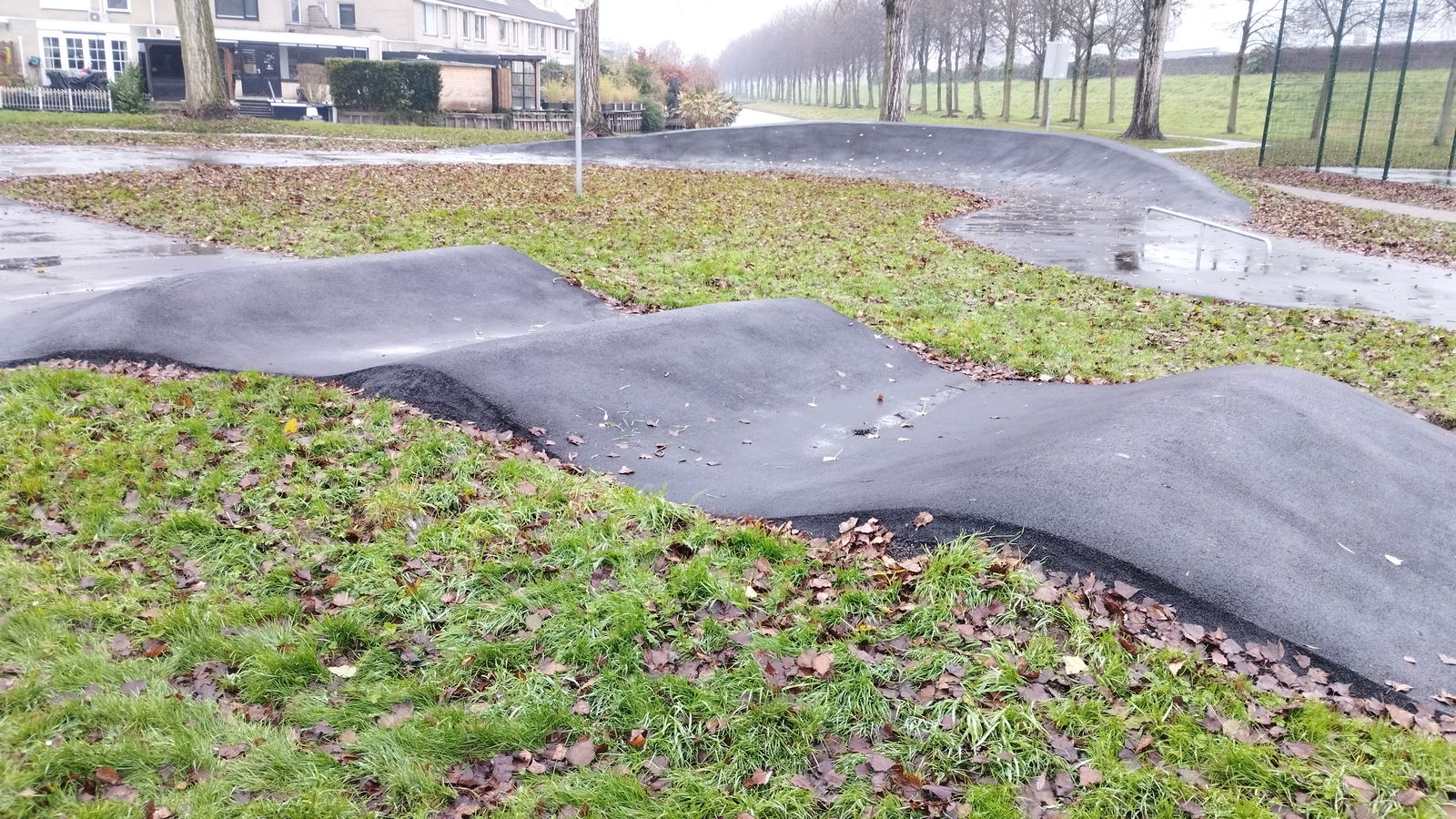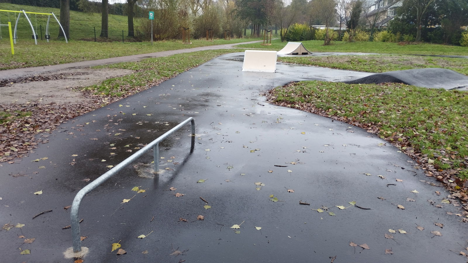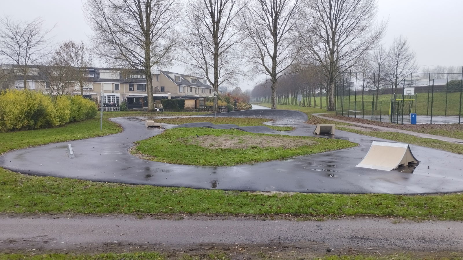 Brahmsstraat skatepark features several basic obstacles located along a path.