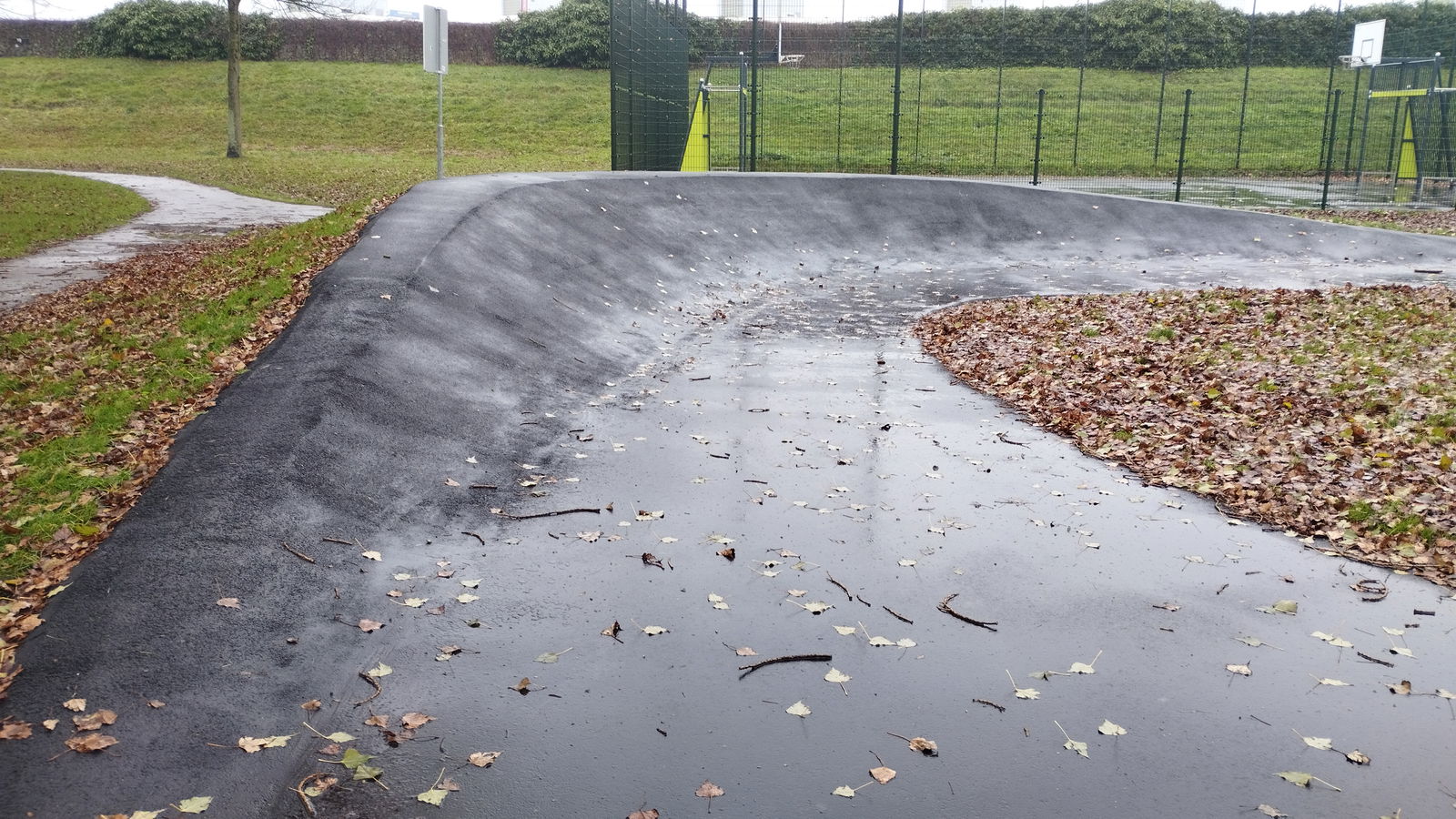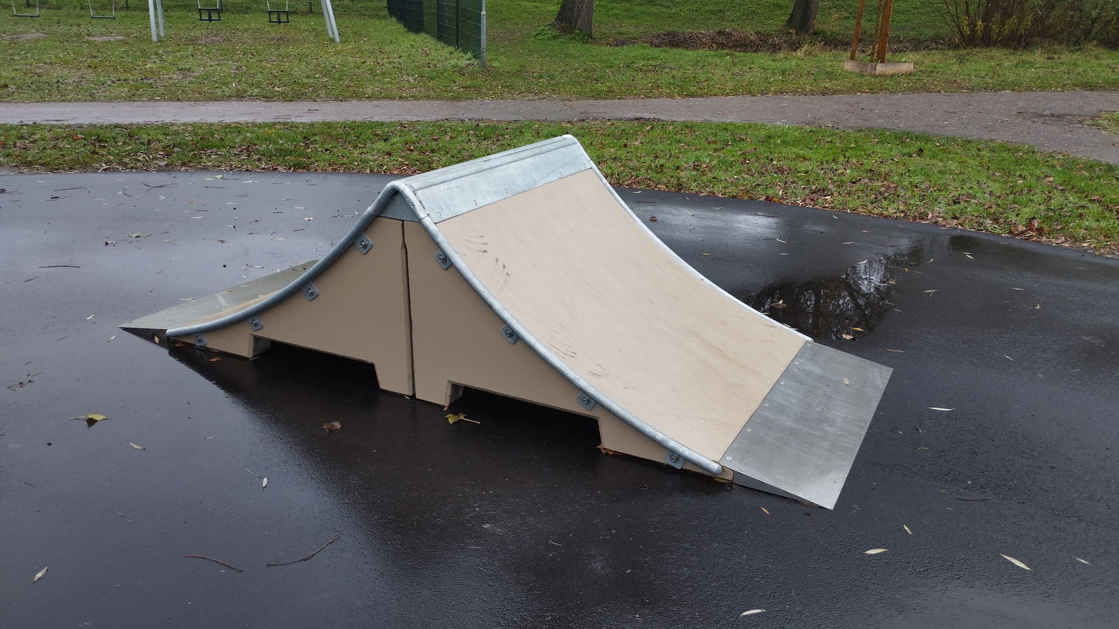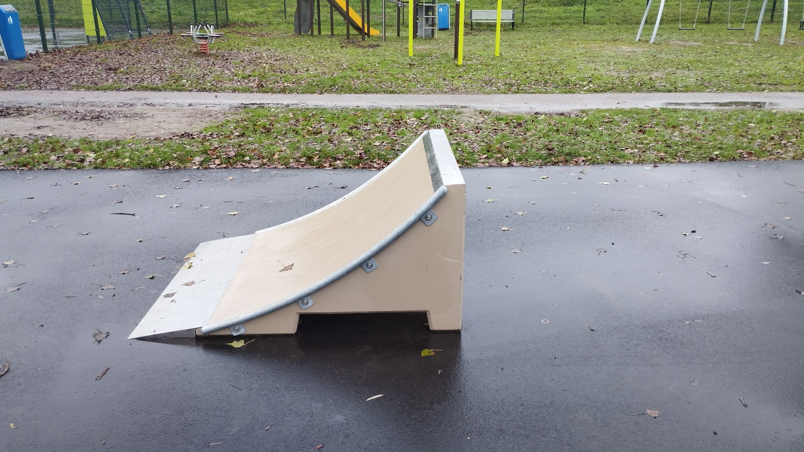 Brahmsstraat skatepark features several basic obstacles located along a path.