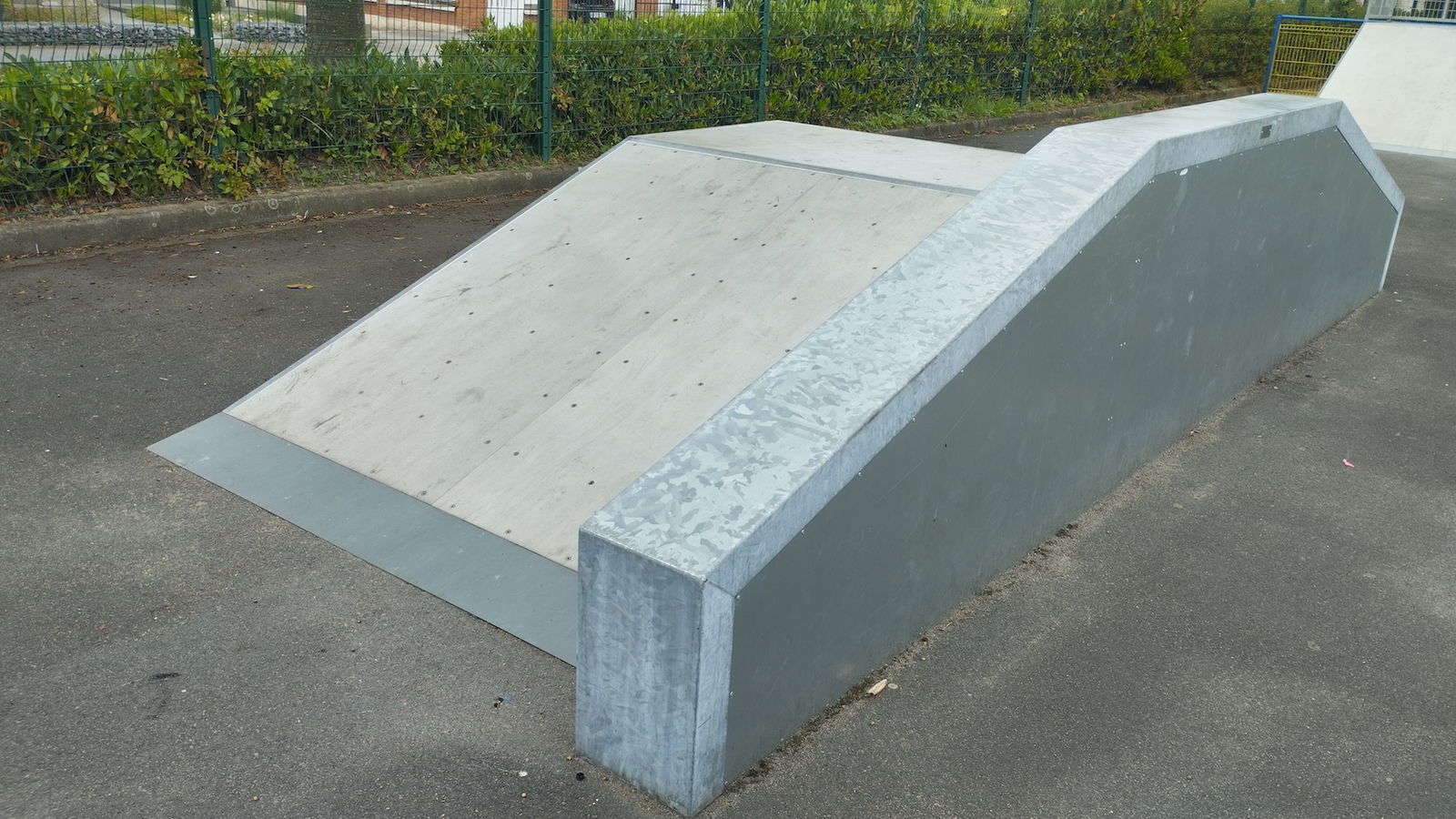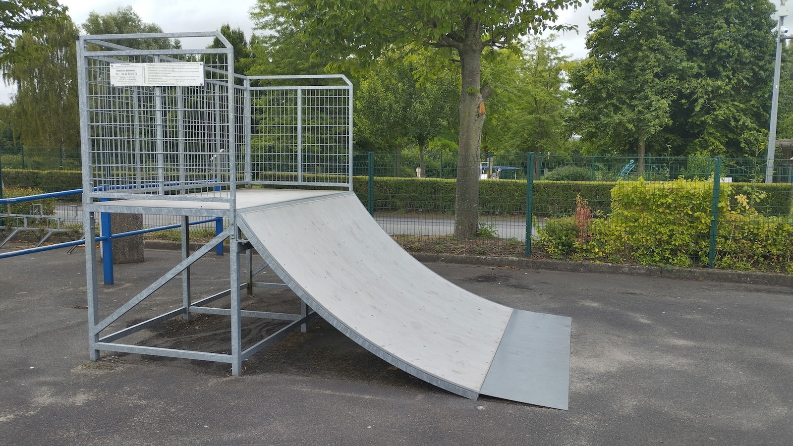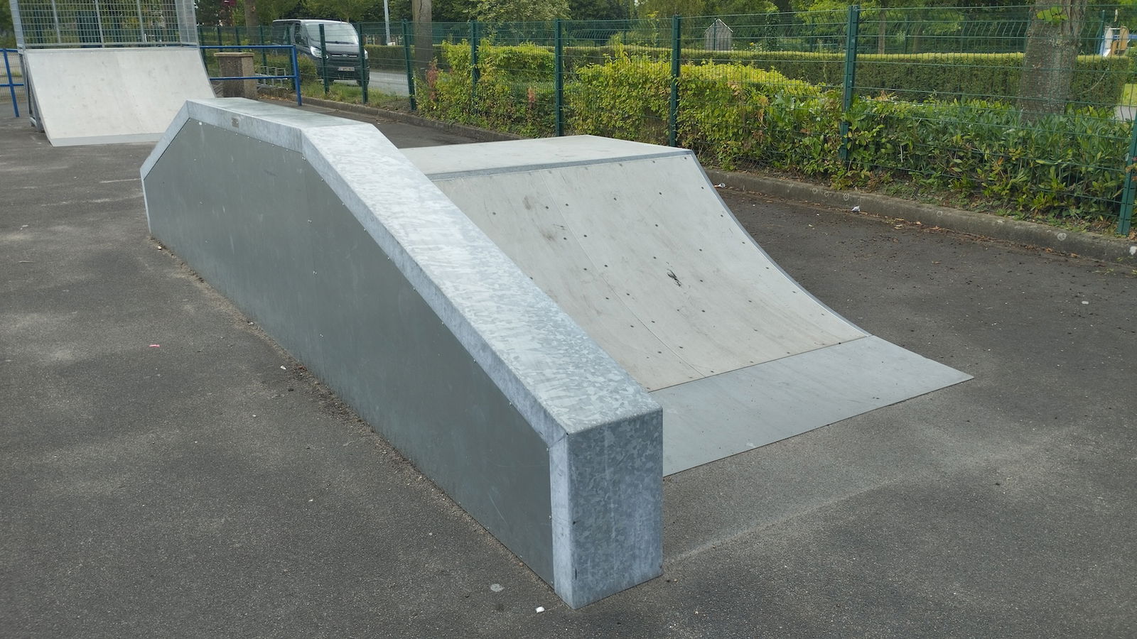 Brebières skatepark is a small park with several basic skateboarding obstacles in a back and forth setup.