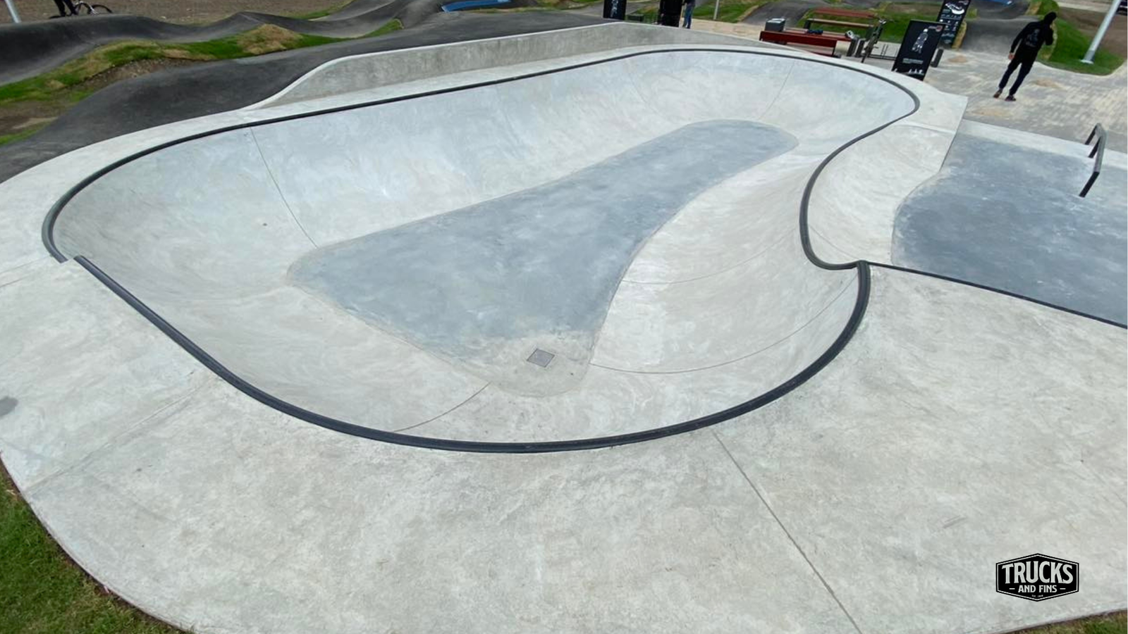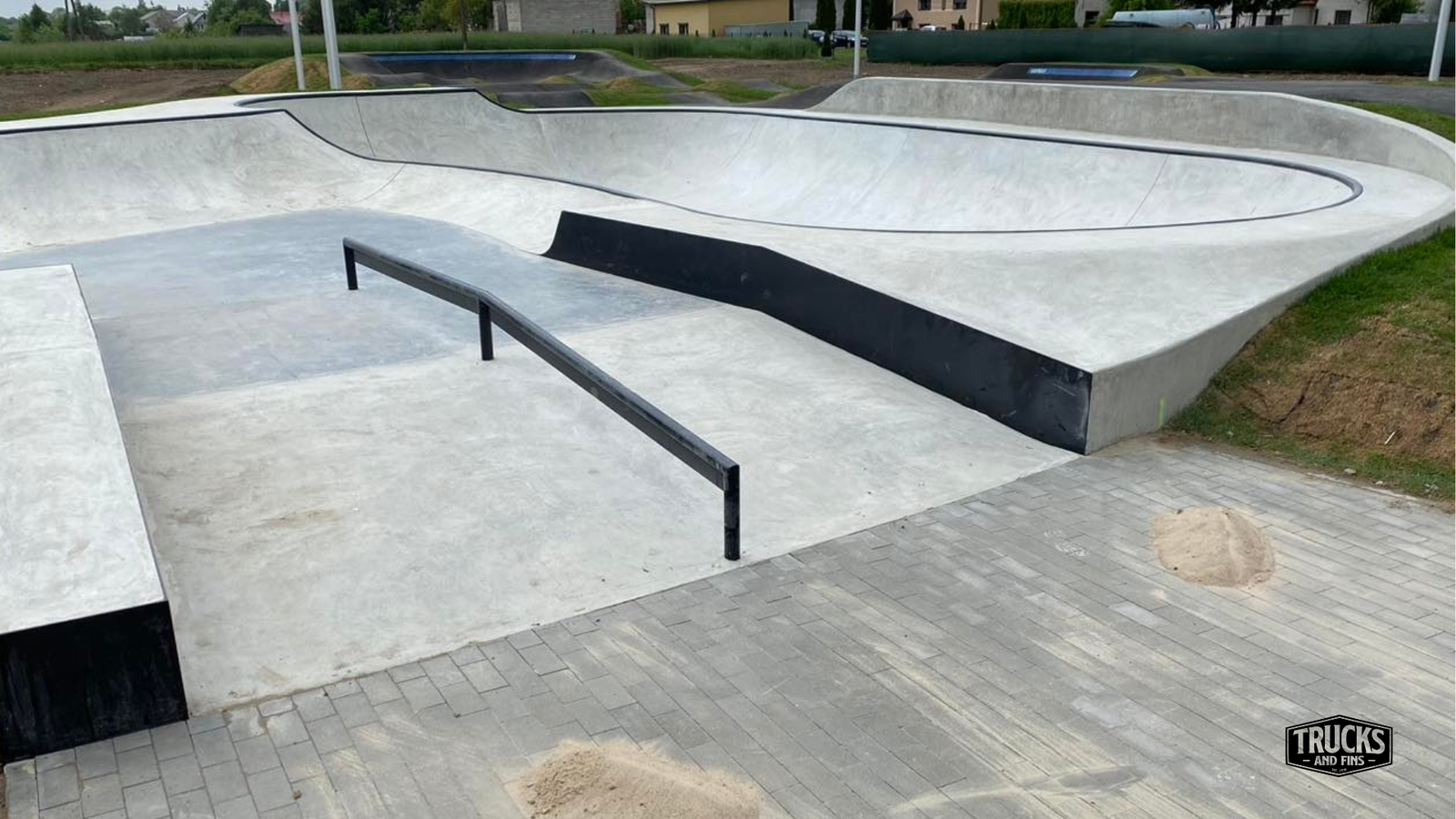 Brzozie skatepark is made up of a concrete bowl connected to an asphalt pumptrack.