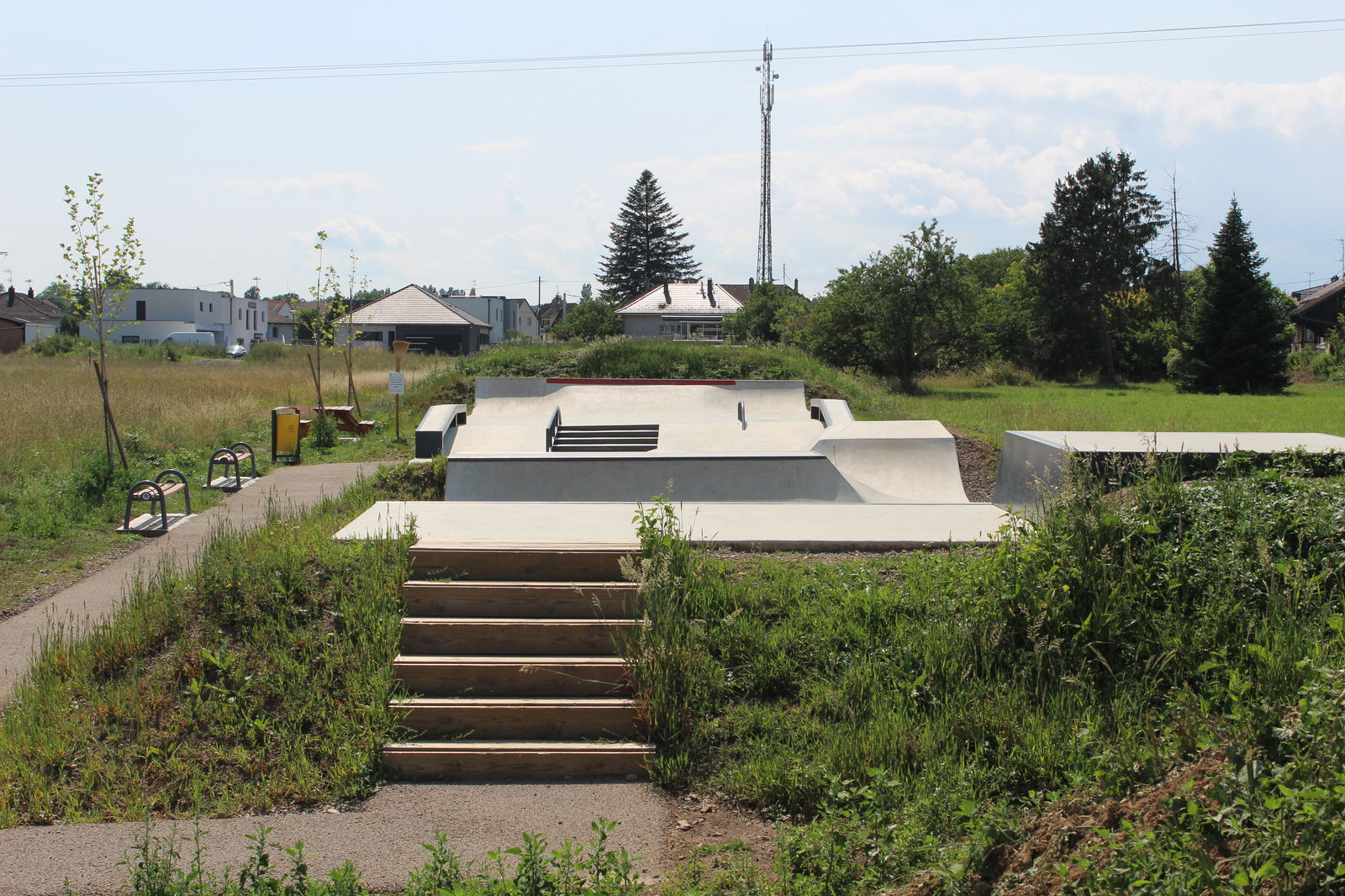 Burnhaupt-le-Haut skatepark is a concrete park made up of a miniramp and street section. Located in the commune of Burnhaupt-le-Haut (68520), this ~330 m² concrete skatepark features a street module area and a miniramp. Built by IOSkateparks, the install was completed in late 2024 and opened prior to its formal inauguration in 2025. Ideal for skaters and content-crews exploring Alsace region terrain that offers both street and transition elements in a compact setup.