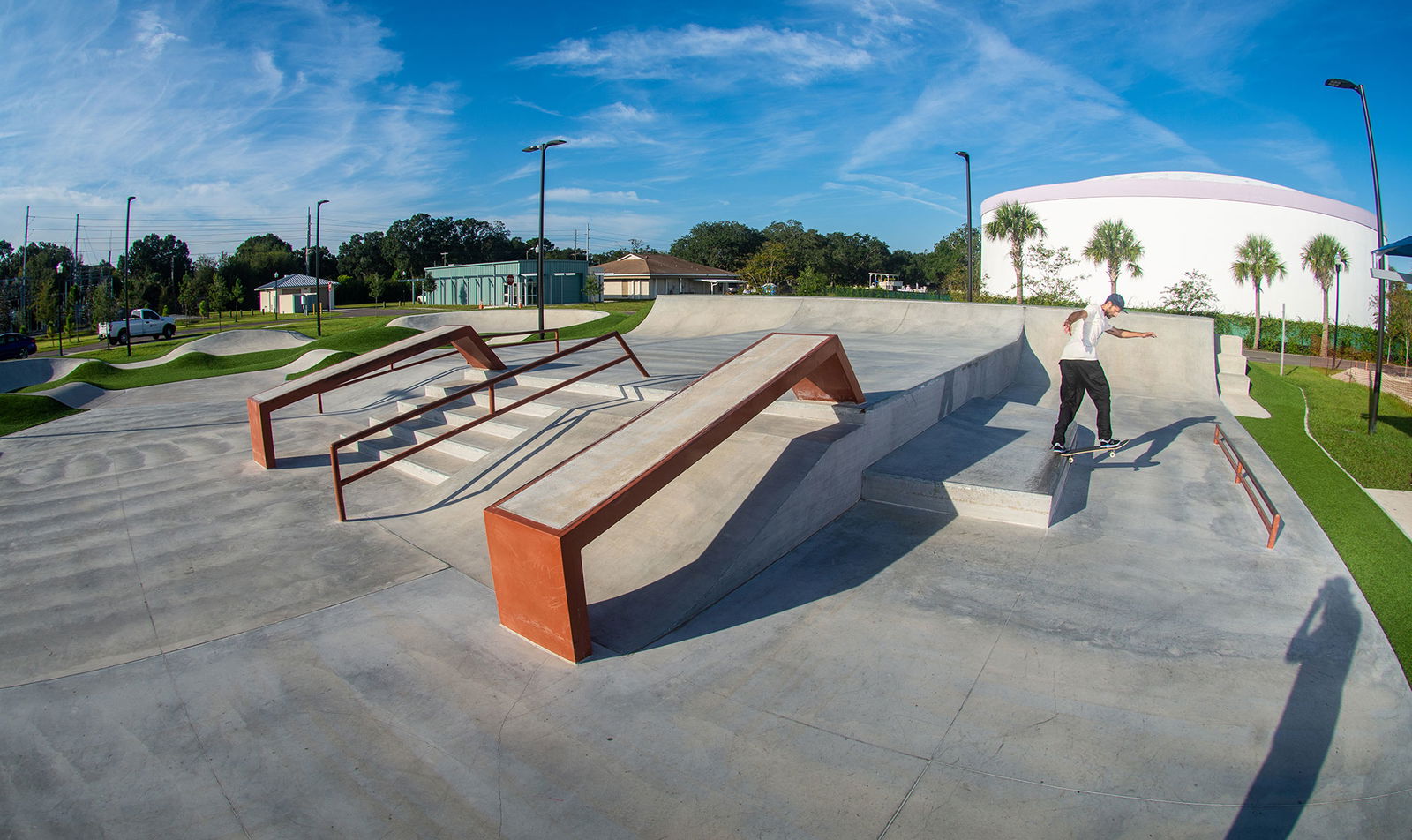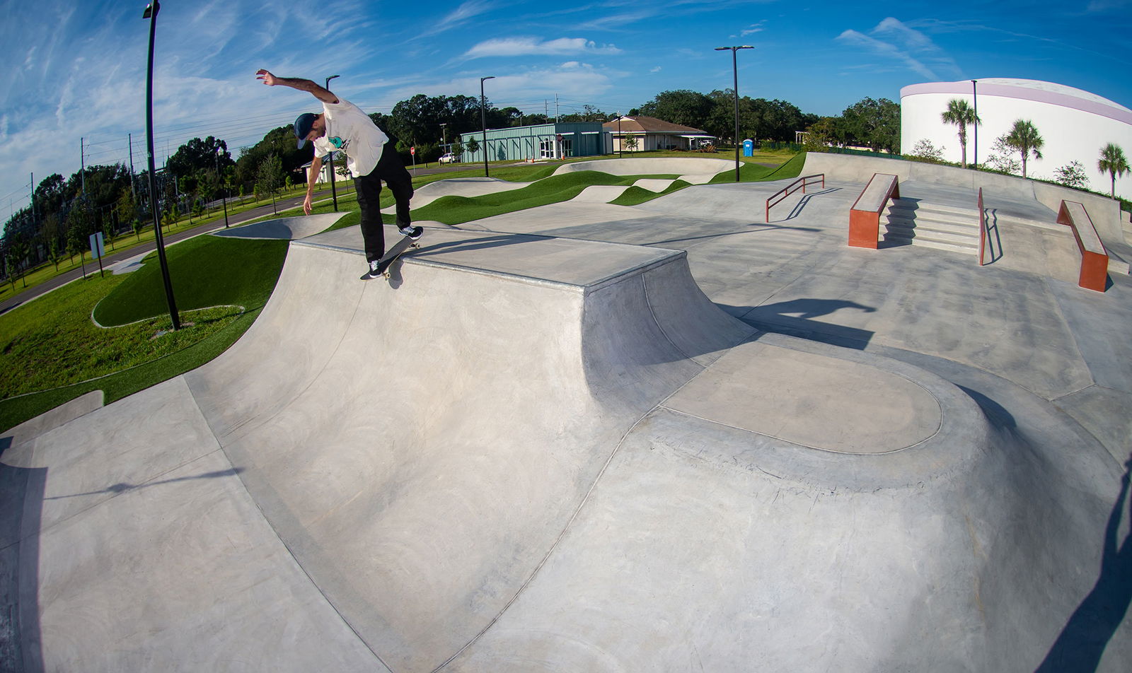 Carrollwood Village park skatepark is a 7000 square meter concrete park built by SpohnRanch in 2020. The skatepark features a miniramp, pumptrack and street section with a nice variety of obstacles.