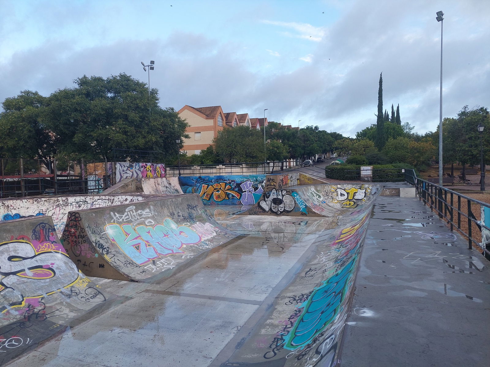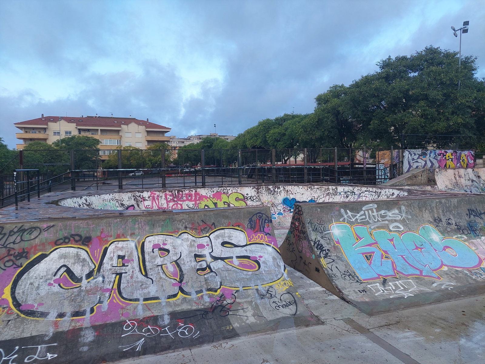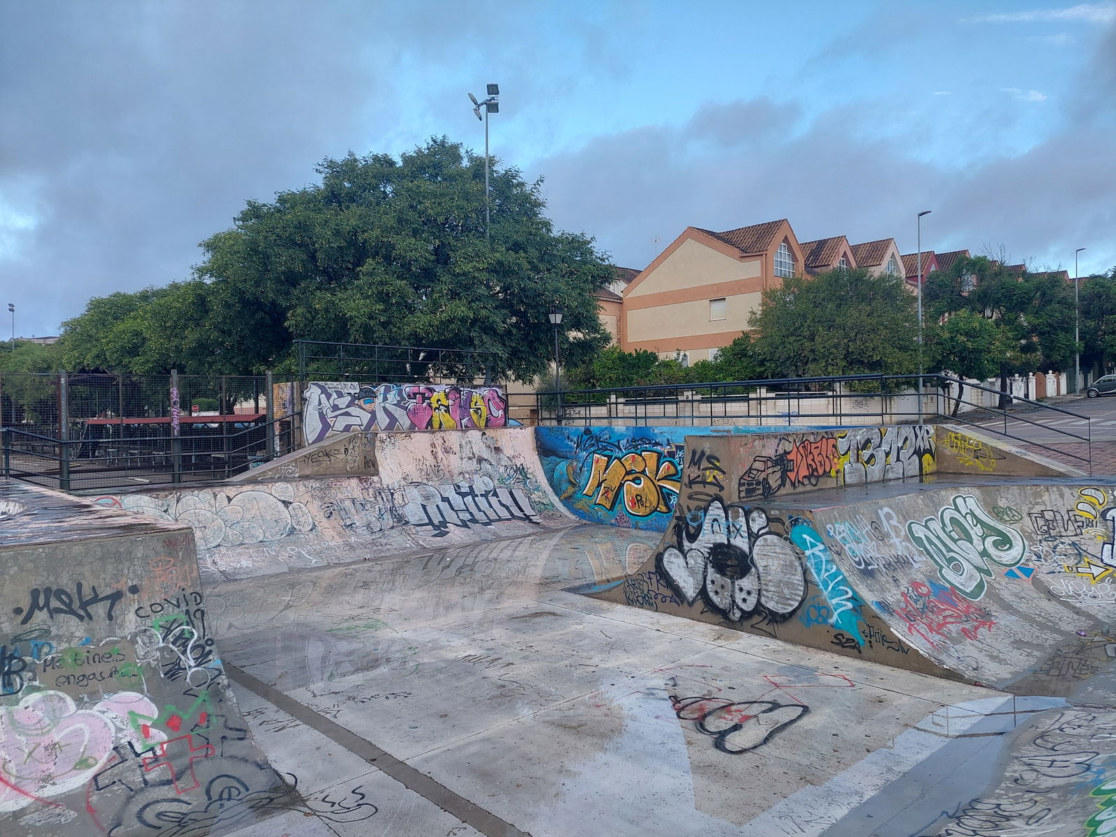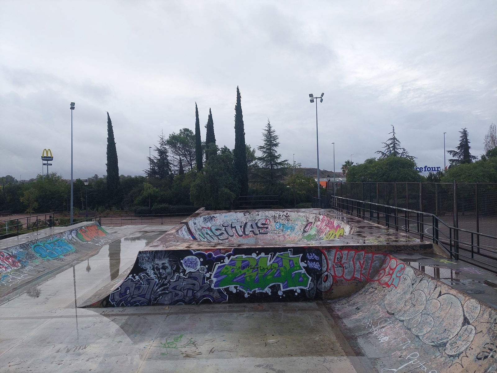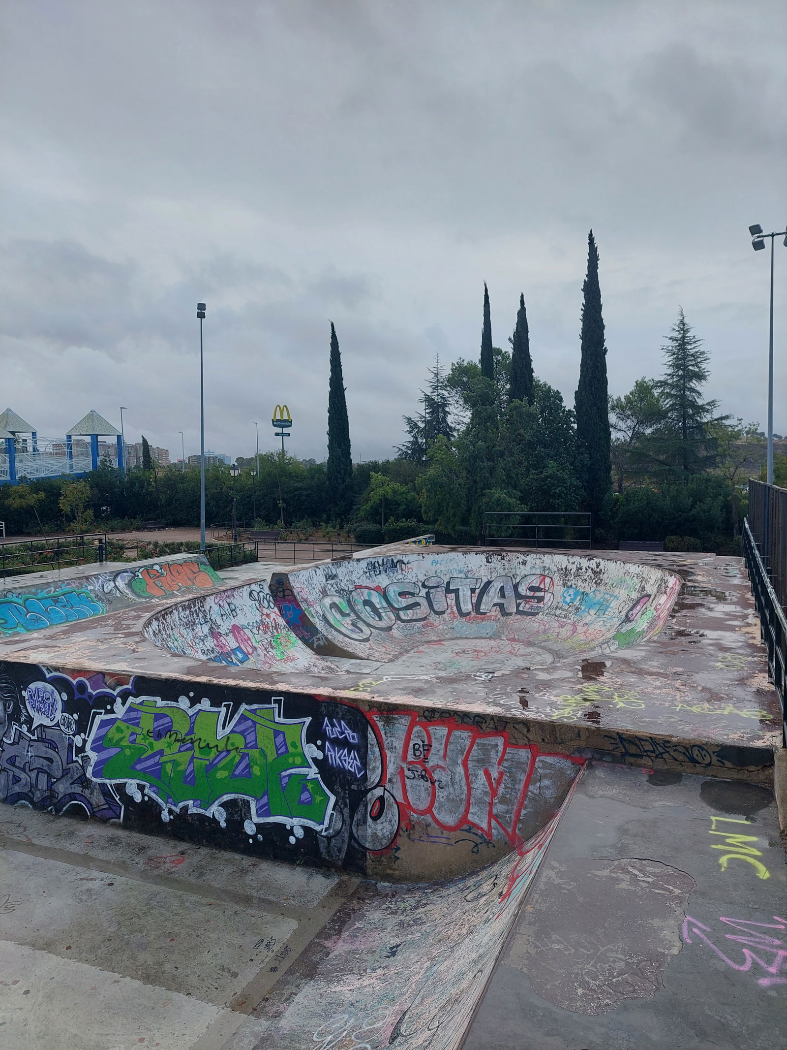 Castellanos skatepark is a concrete park with a bowl, miniramp and transition area.