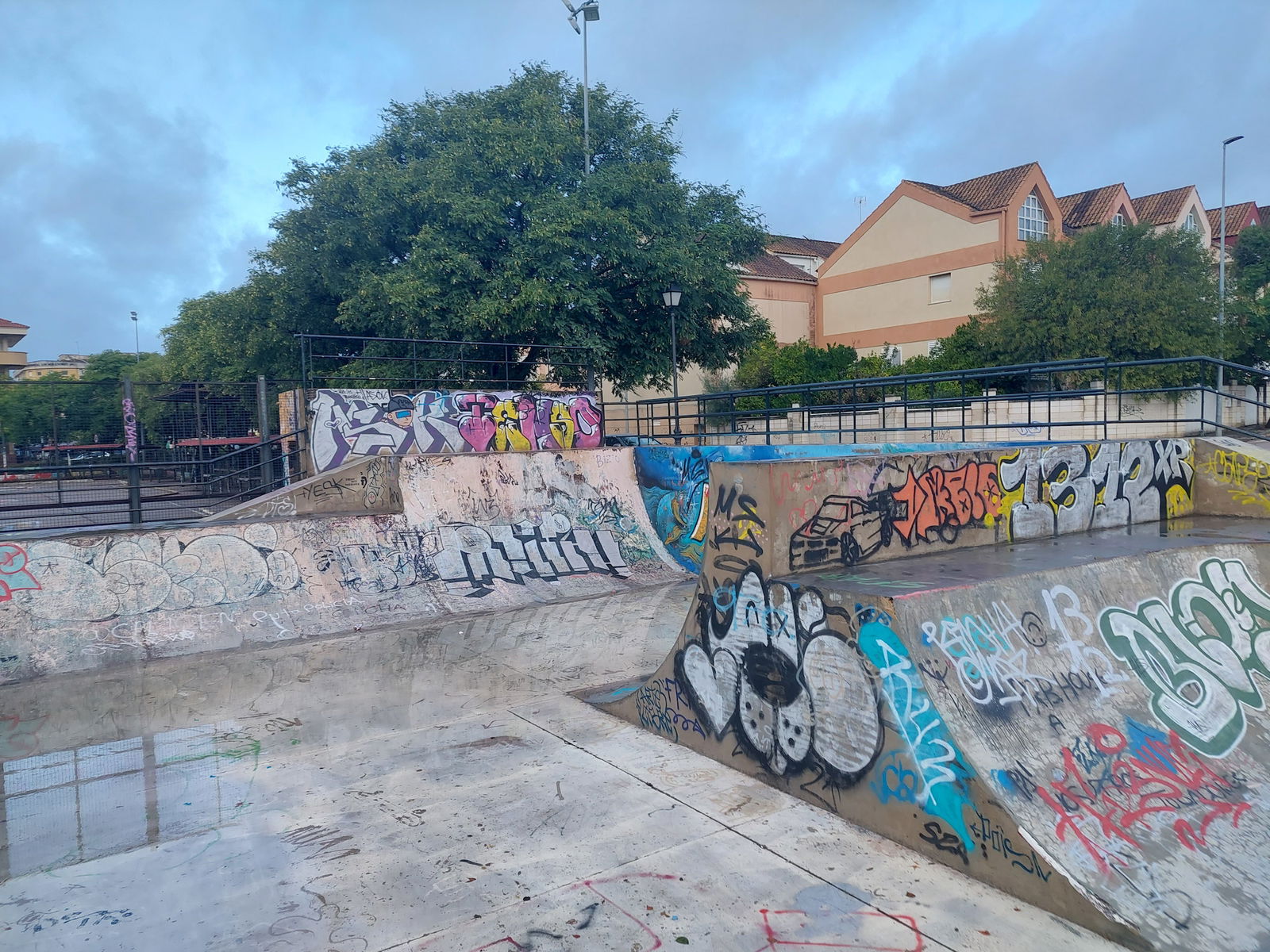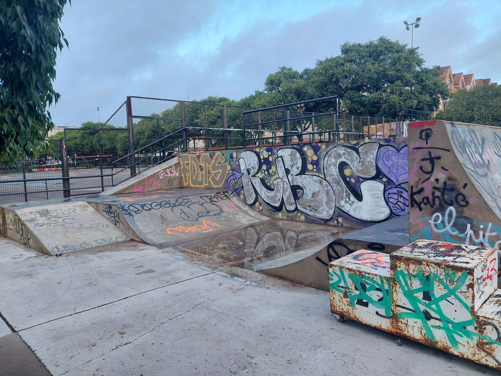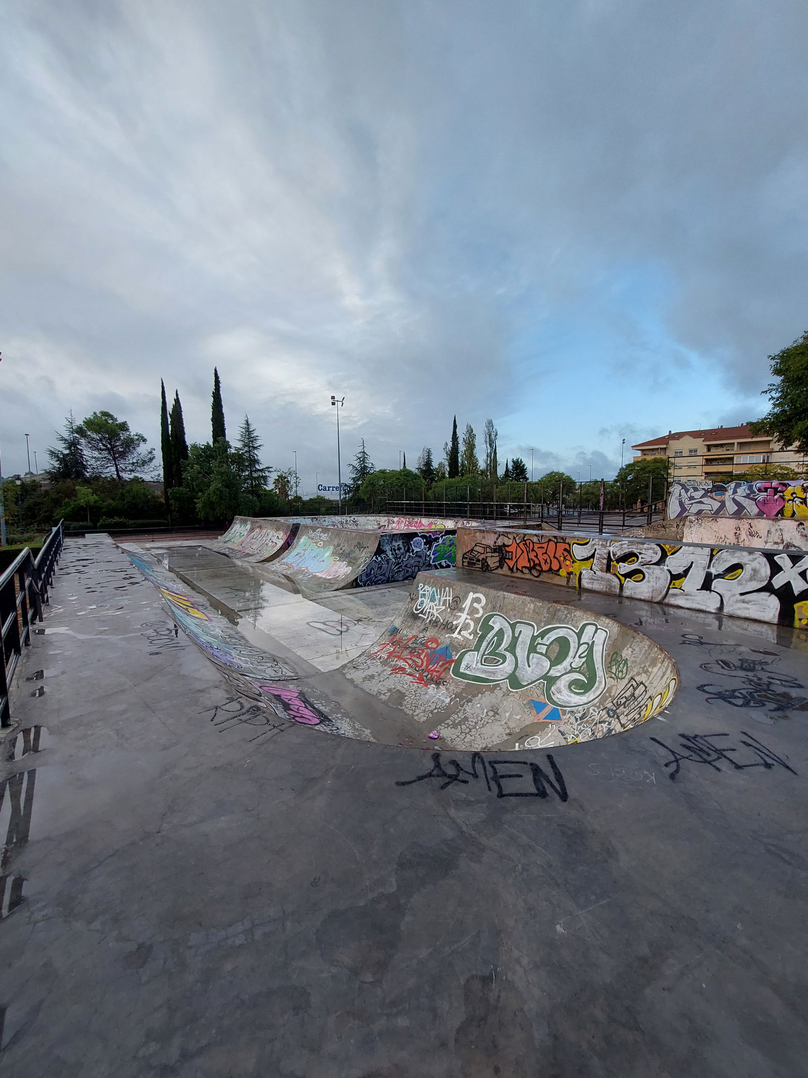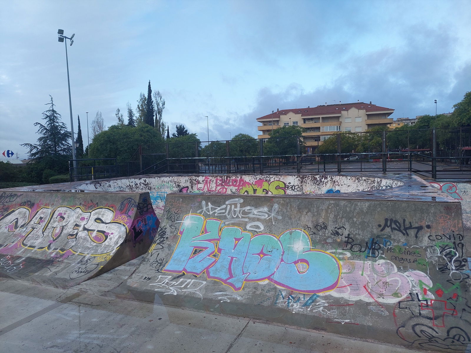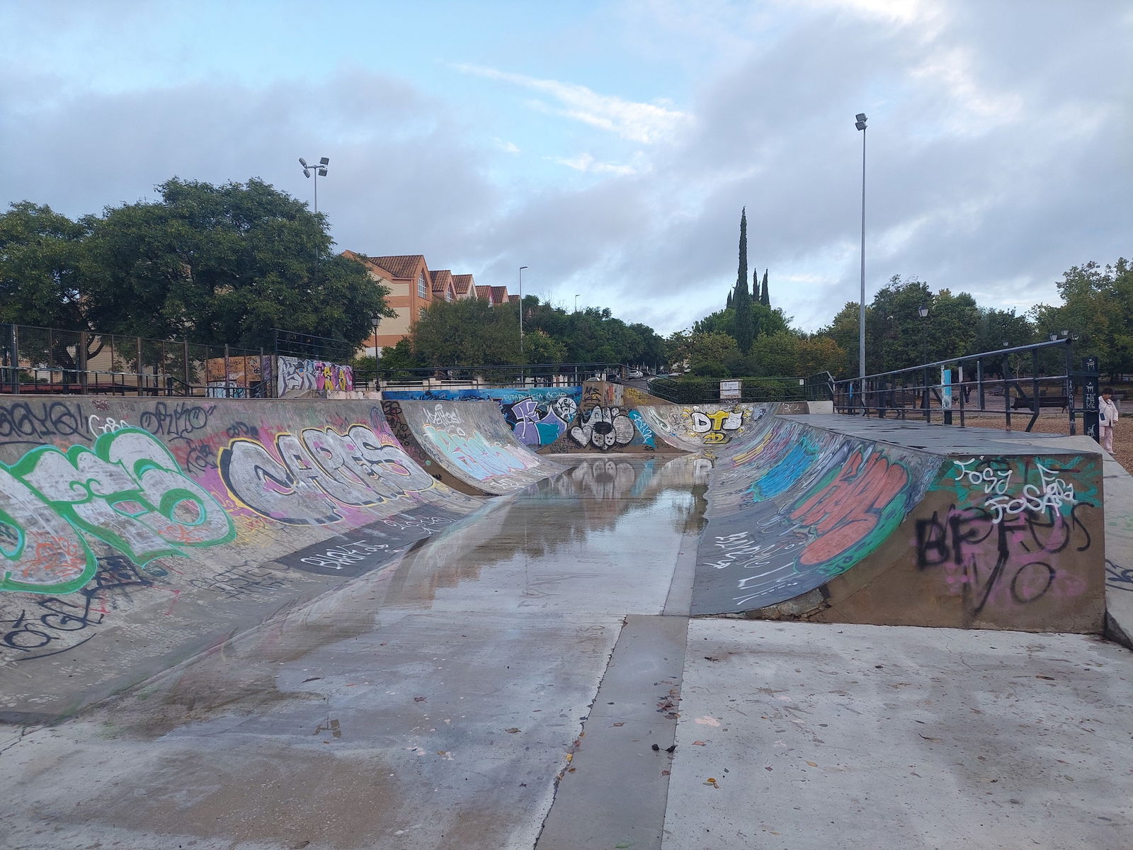 Castellanos skatepark is a concrete park with a bowl, miniramp and transition area.
