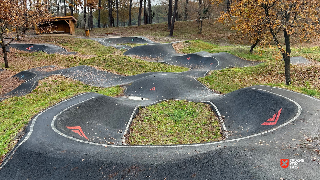 The Pumptrack in Castets, located on Route de Taller in the Landes department of France, is a closed-loop circuit featuring a series of consecutive bumps and banked turns. This design accommodates various sports equipment, including scooters, skateboards, BMX bikes, and mountain bikes. The pumptrack was constructed in 2022 by PGConcept, a company specializing in the design and construction of such facilities.