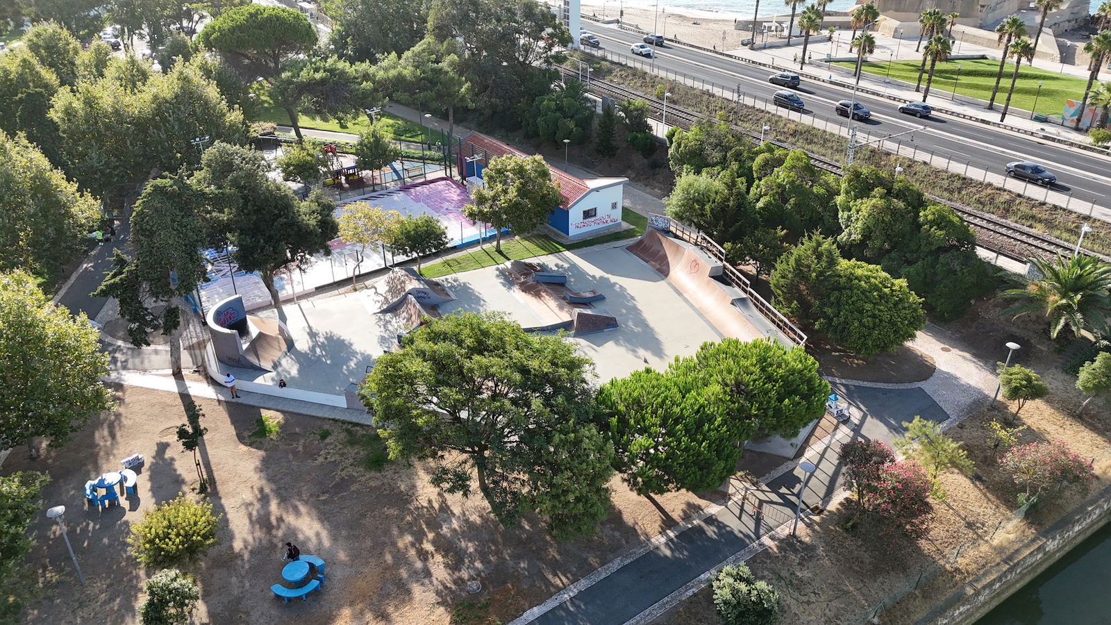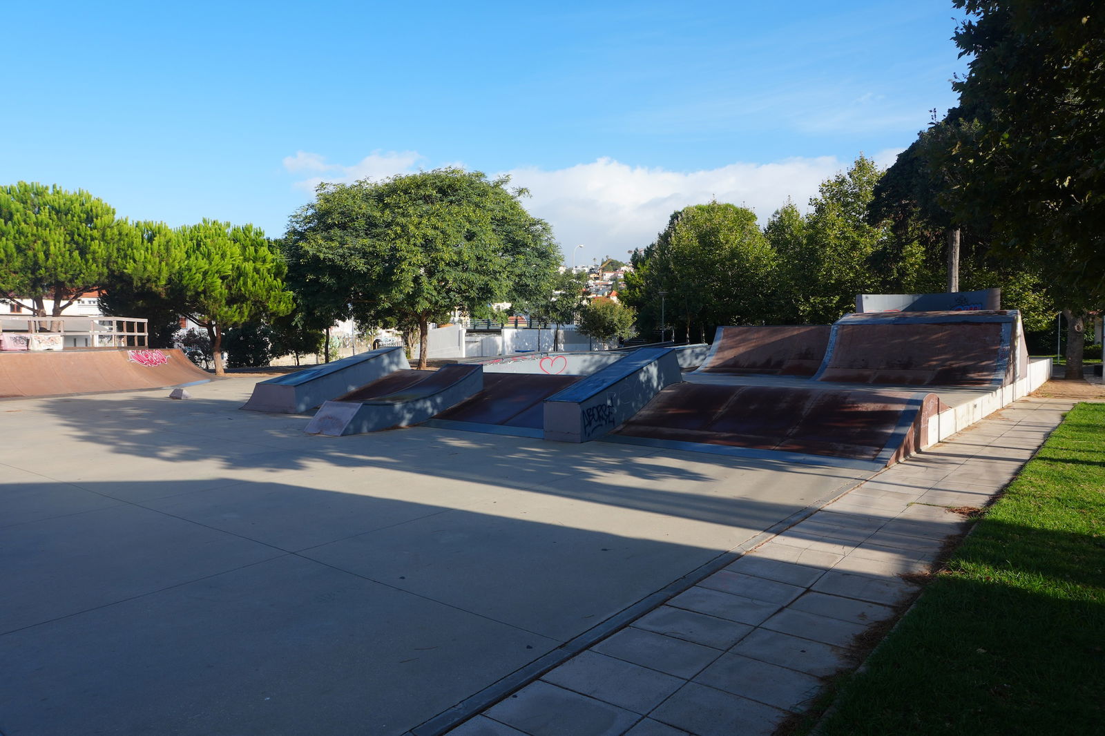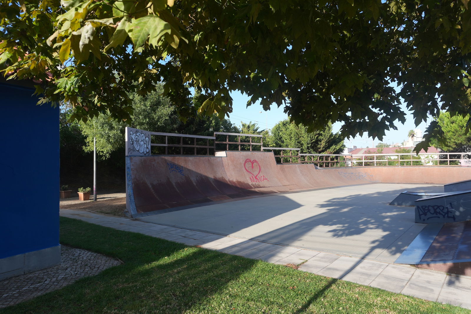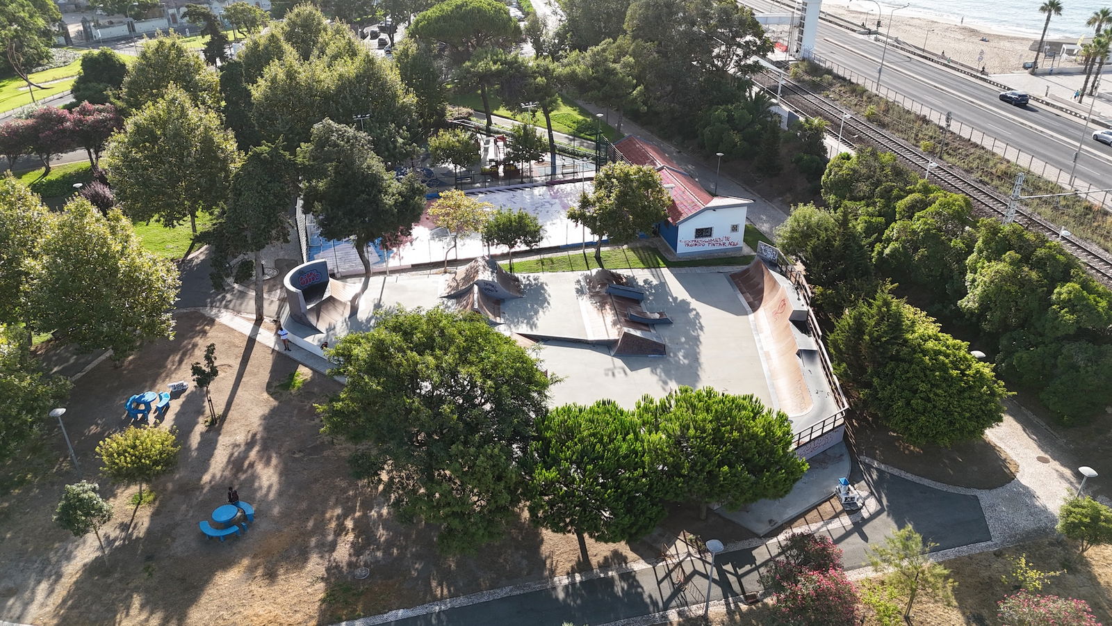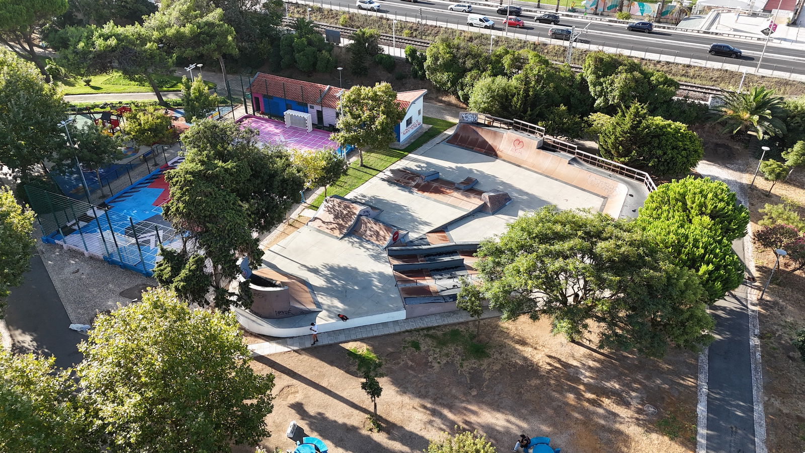 The skatepark in Caxias is a skatelite park, built by the former Academia dos Patins, back in 2018. Definitely a fun park in the district of Lisbon, located next to CP’s Caxias station, in a municipal garden, with tables and benches, a playground, a pastry shop and public bathrooms. It has obstacles and lines out of the ordinary, such as a kink handrail, a jump box with step-up and a curved wallride.