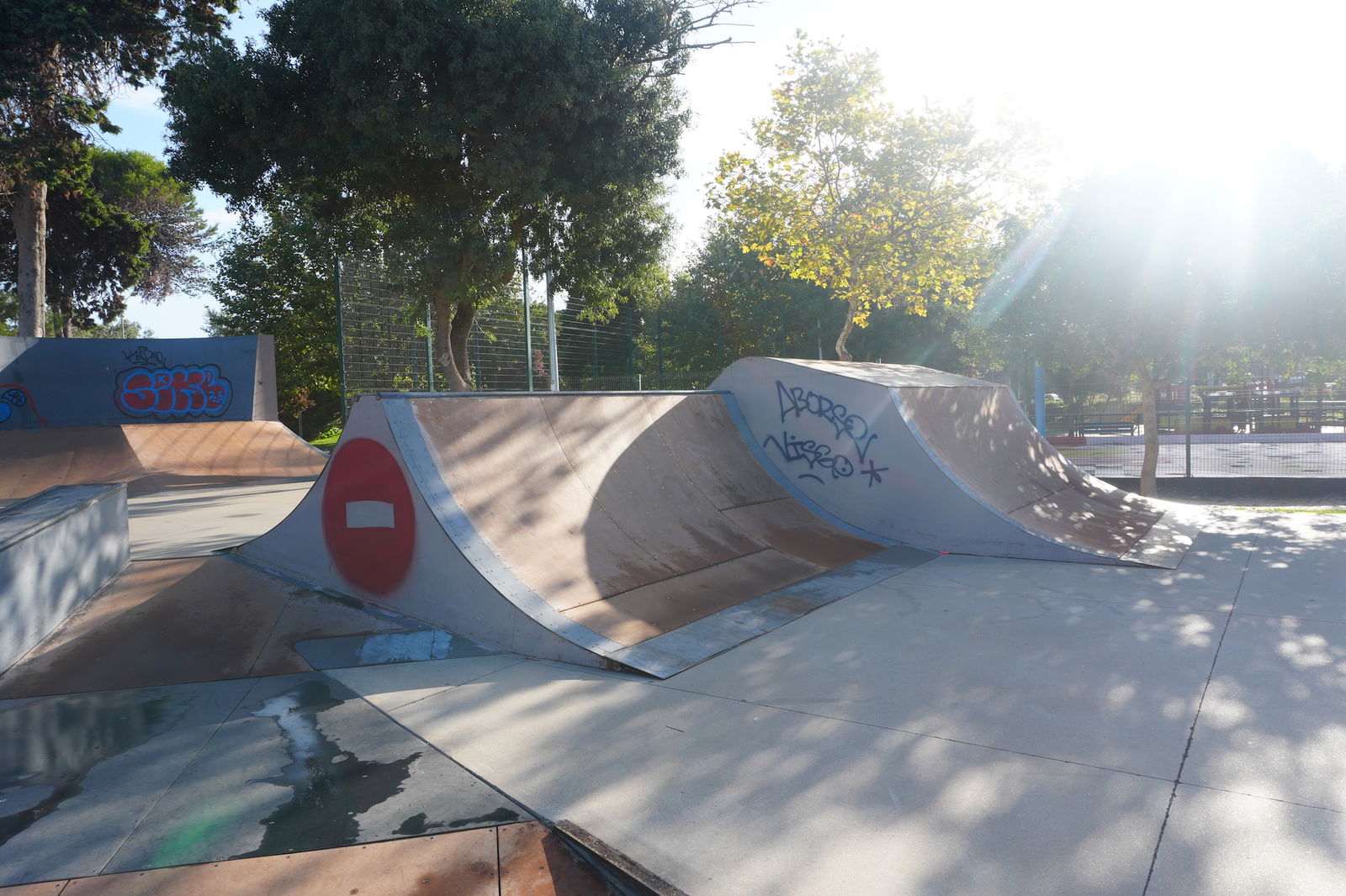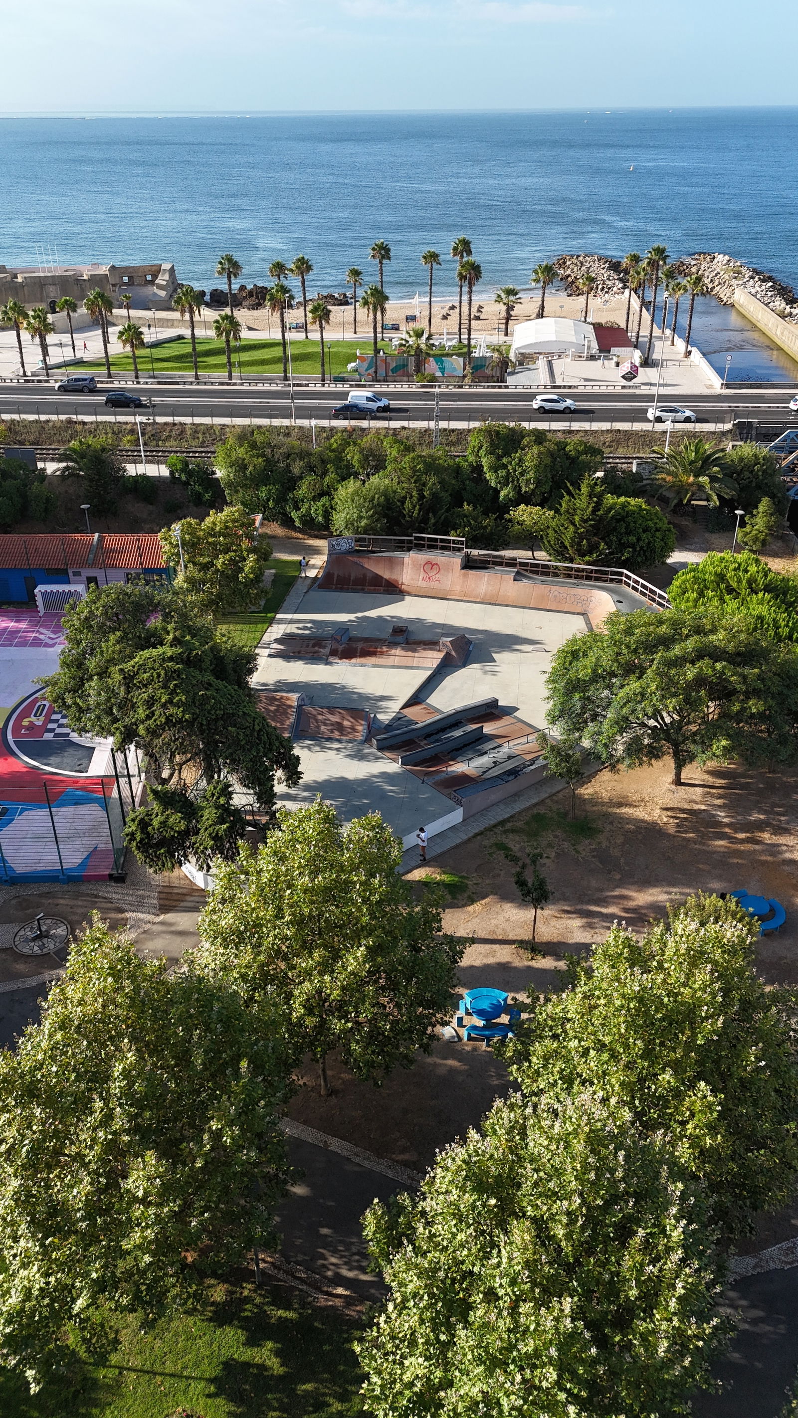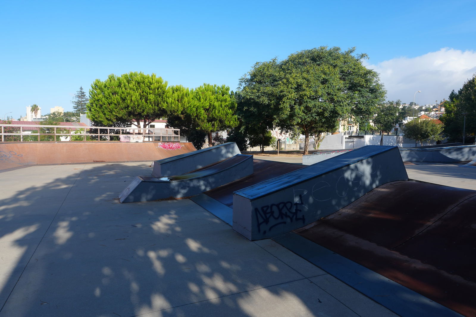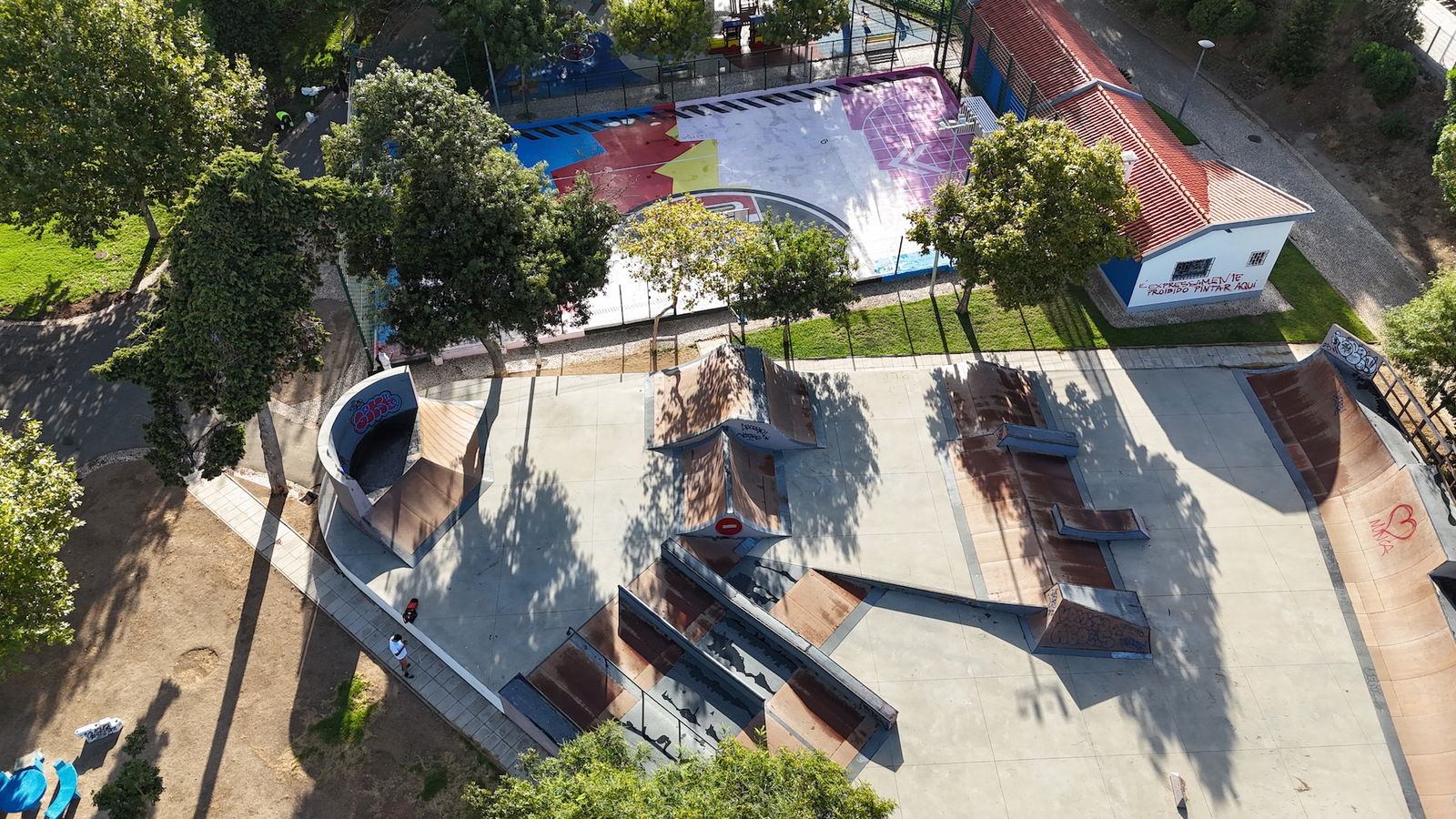 The skatepark in Caxias is a skatelite park, built by the former Academia dos Patins, back in 2018. Definitely a fun park in the district of Lisbon, located next to CP’s Caxias station, in a municipal garden, with tables and benches, a playground, a pastry shop and public bathrooms. It has obstacles and lines out of the ordinary, such as a kink handrail, a jump box with step-up and a curved wallride.