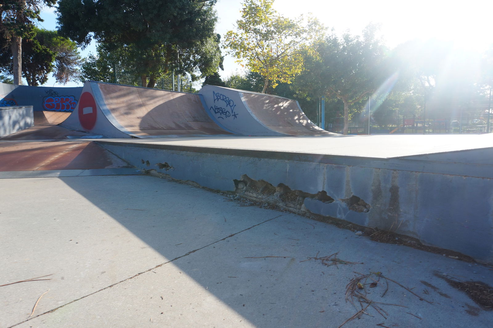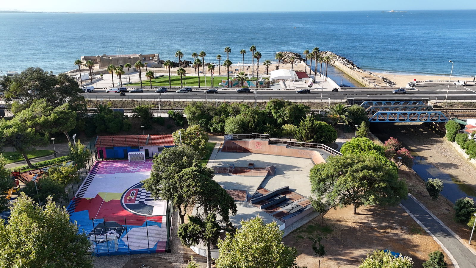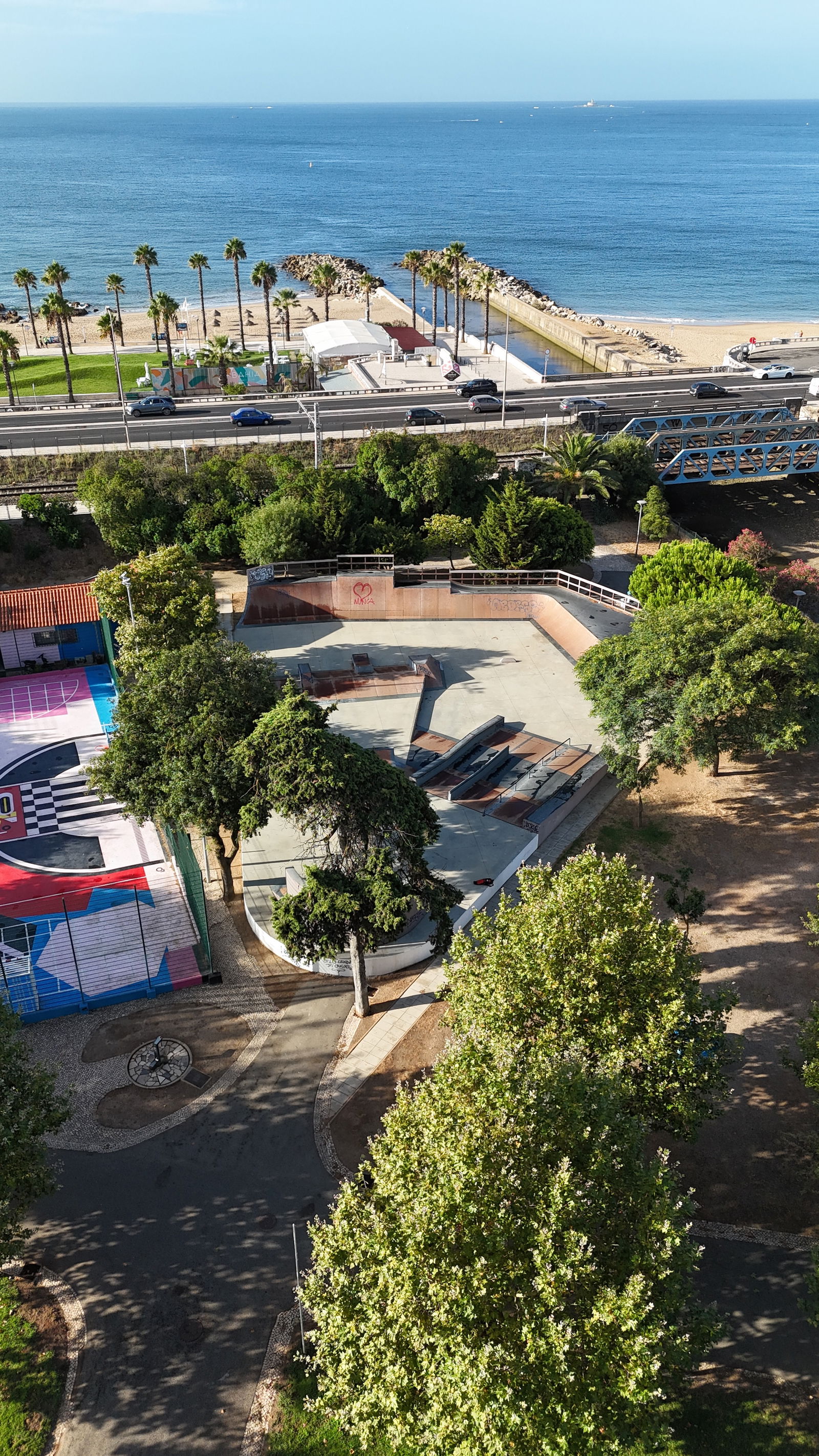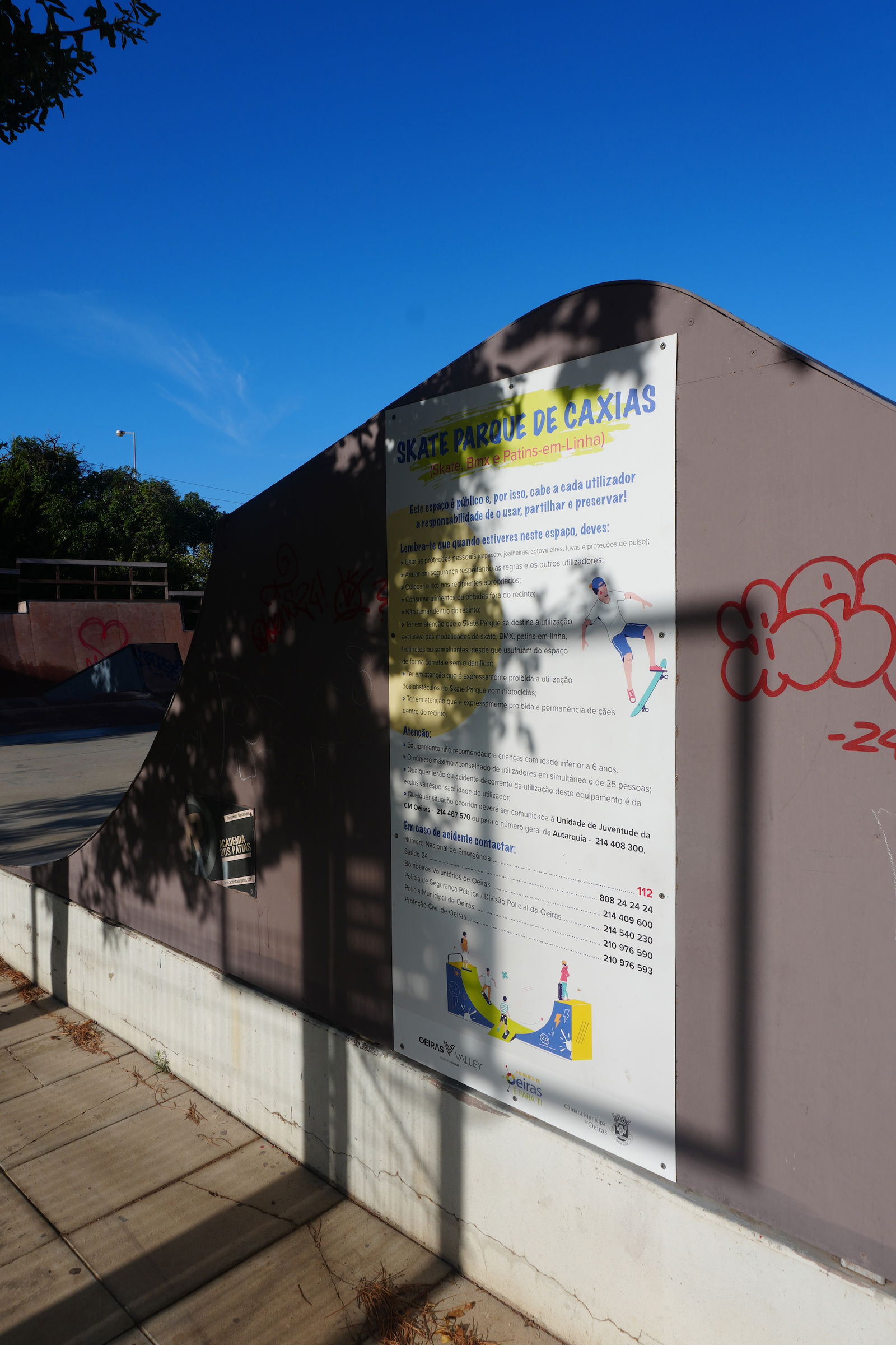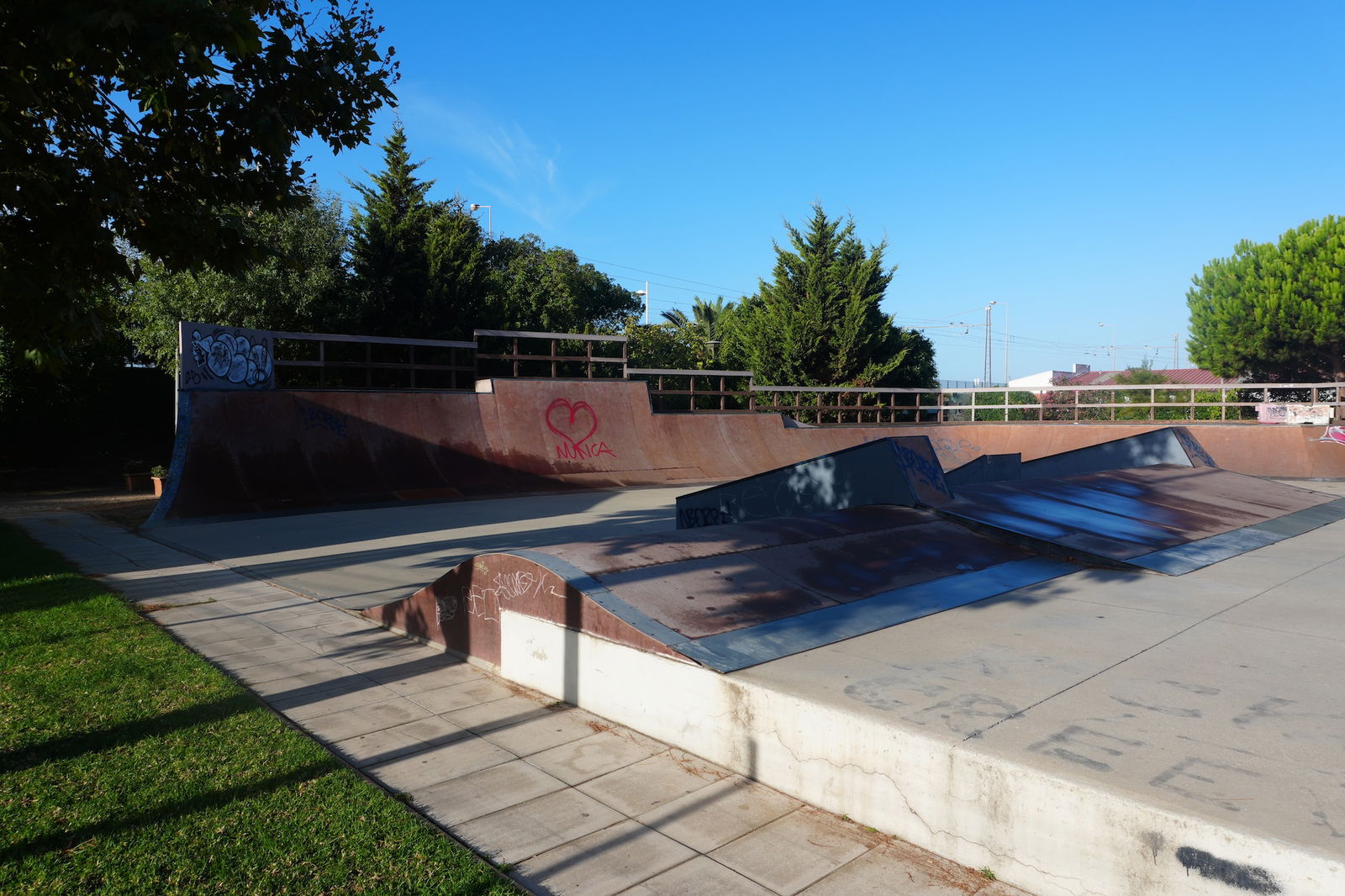 The skatepark in Caxias is a skatelite park, built by the former Academia dos Patins, back in 2018. Definitely a fun park in the district of Lisbon, located next to CP’s Caxias station, in a municipal garden, with tables and benches, a playground, a pastry shop and public bathrooms. It has obstacles and lines out of the ordinary, such as a kink handrail, a jump box with step-up and a curved wallride.