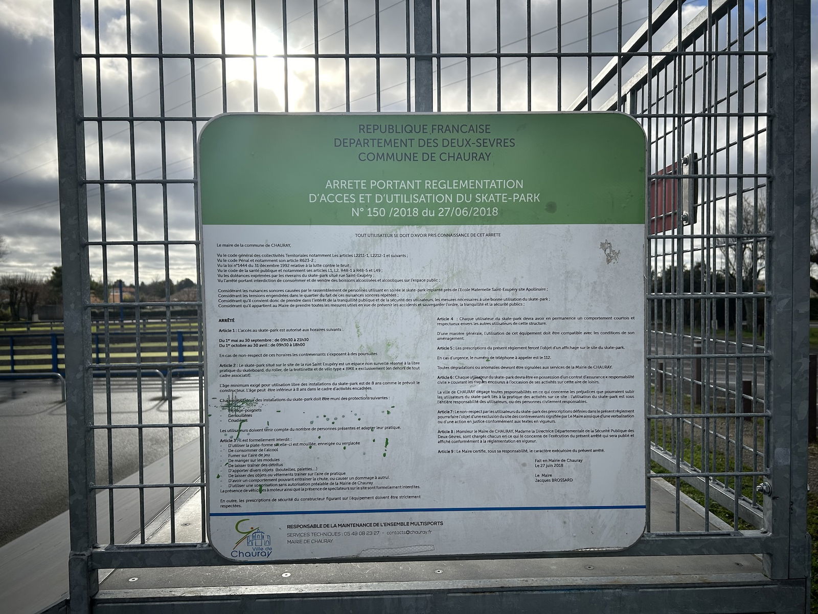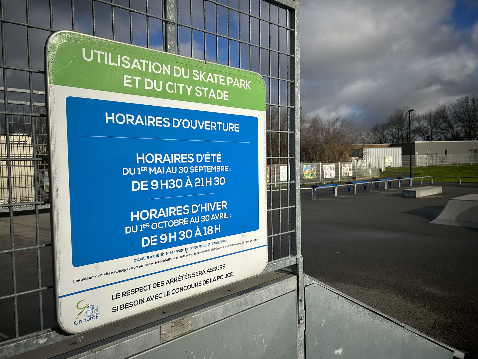 Chauray skatepark is a small park with several basic skateboarding obstacles in a back and forth setup.