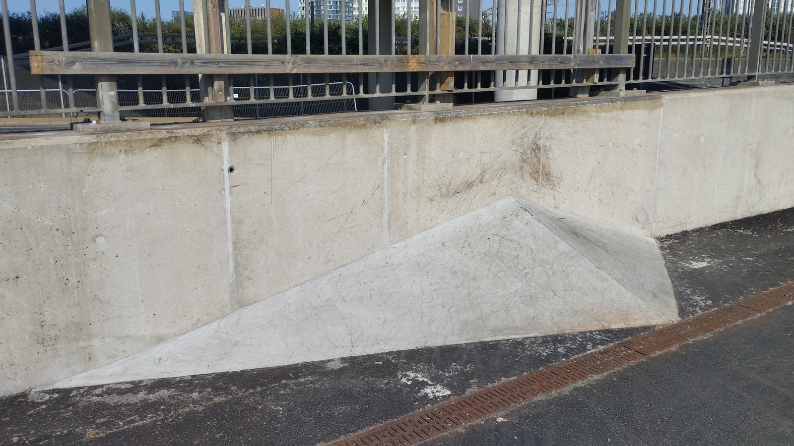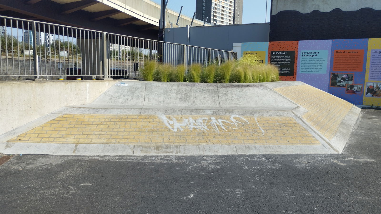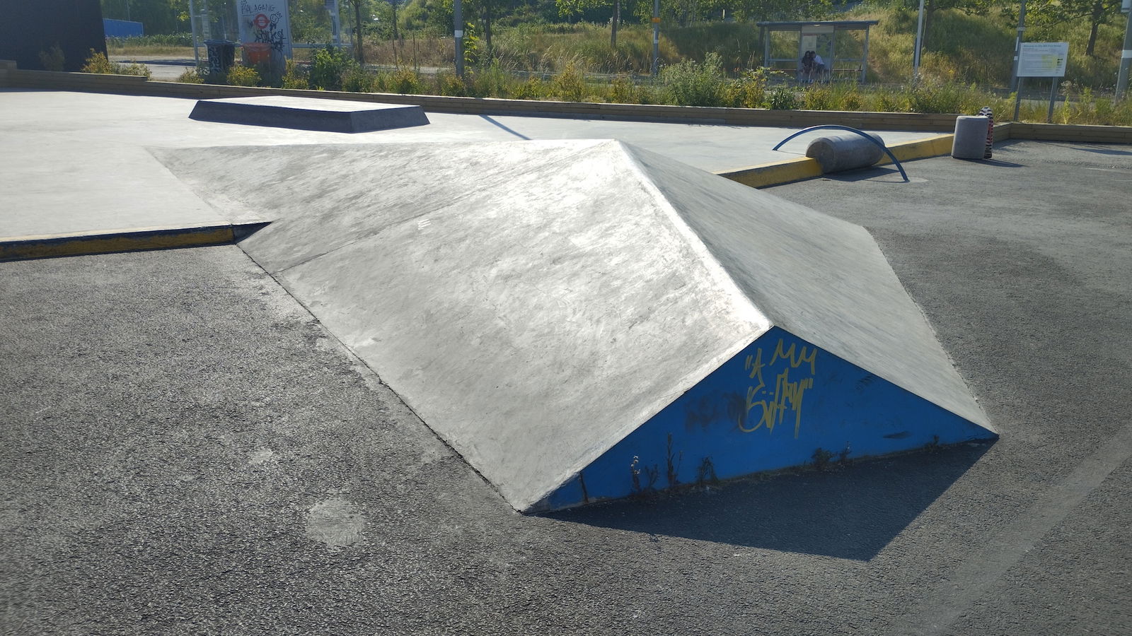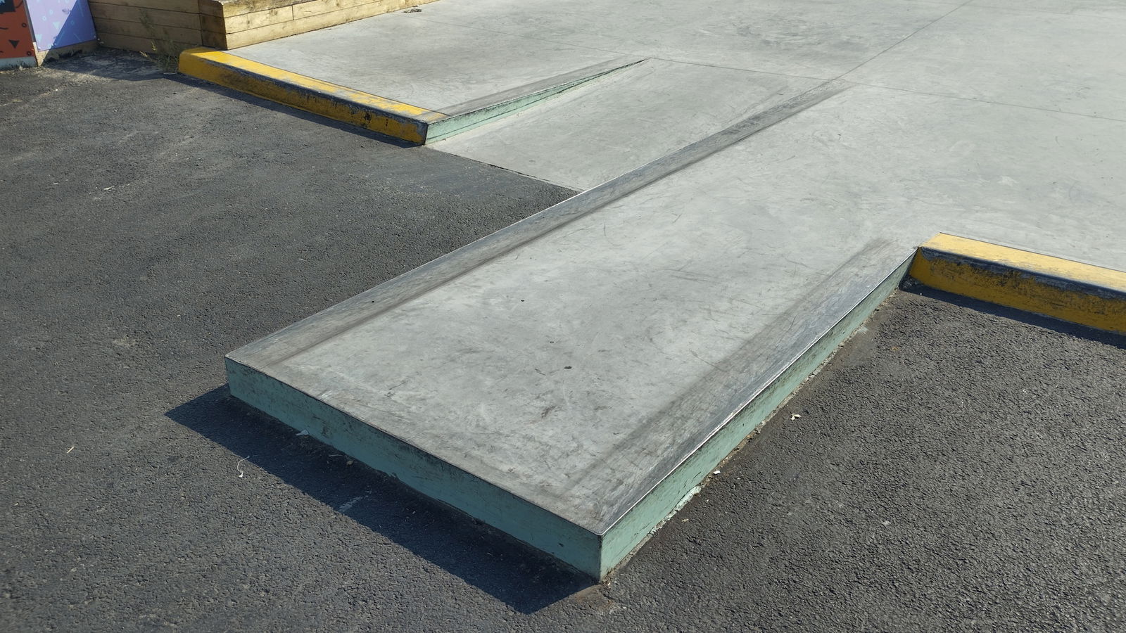 Street based skatepark with different obstacles. Smooth and rough surface. Ideal for learning tricks.