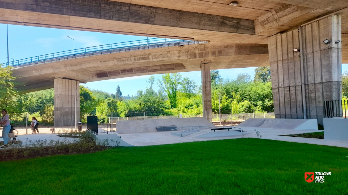 The Parque Municipal de Skate de Coimbra, inaugurated on May 9, 2022, is situated beneath the viaduct of the Ponte Rainha Santa Isabel on the right bank of the Mondego River, this skatepark spans approximately 1,500 square meters. It was developed by the Câmara Municipal de Coimbra with an investment of over €452,137.21.