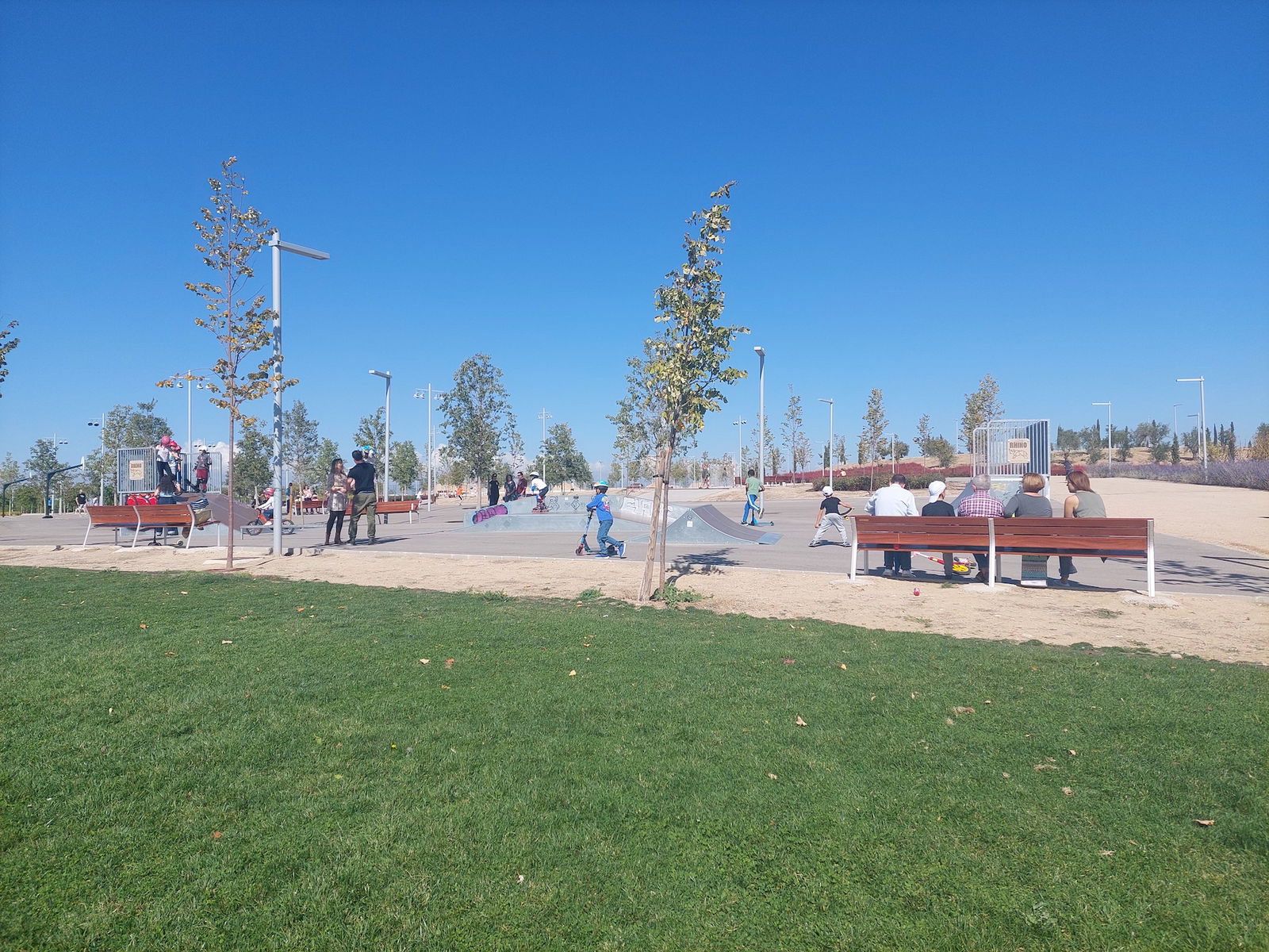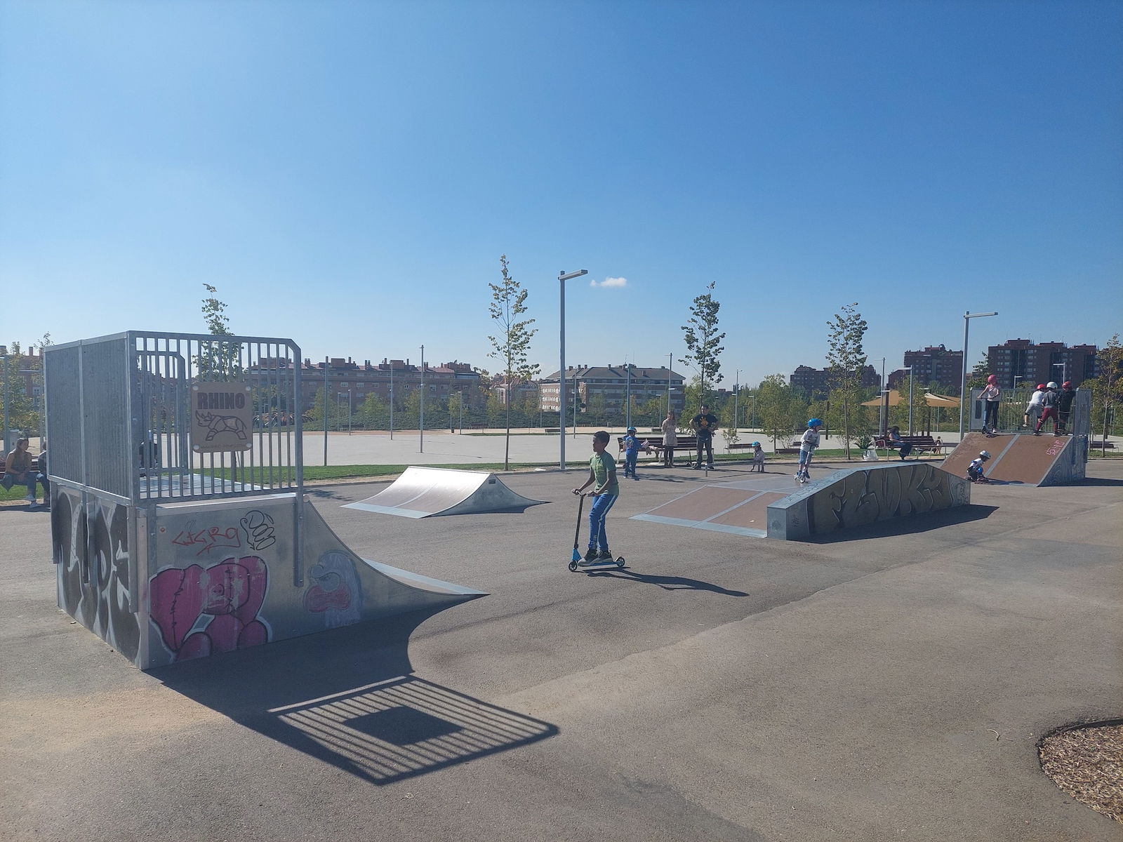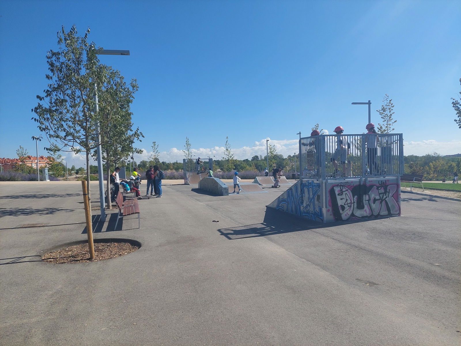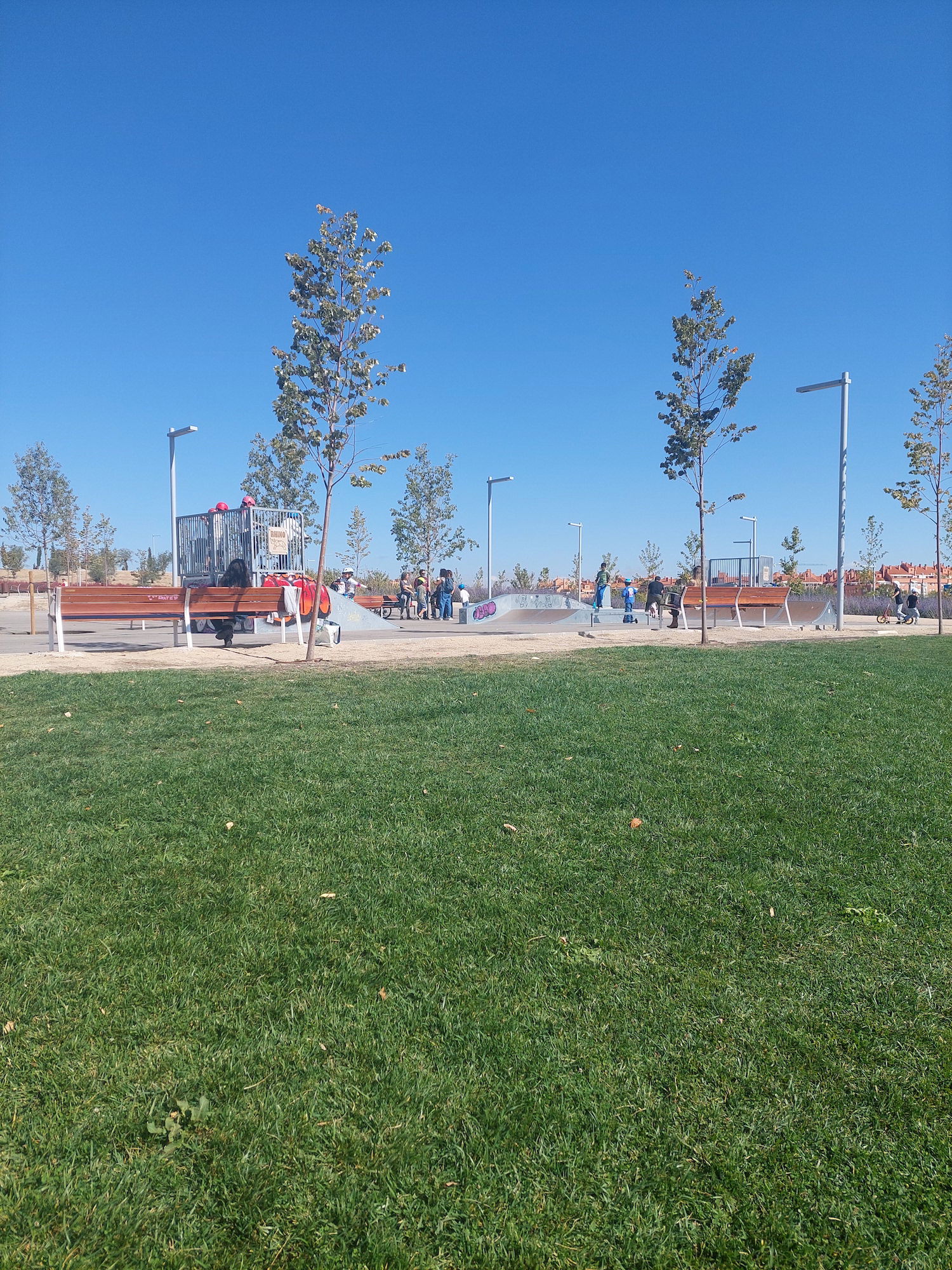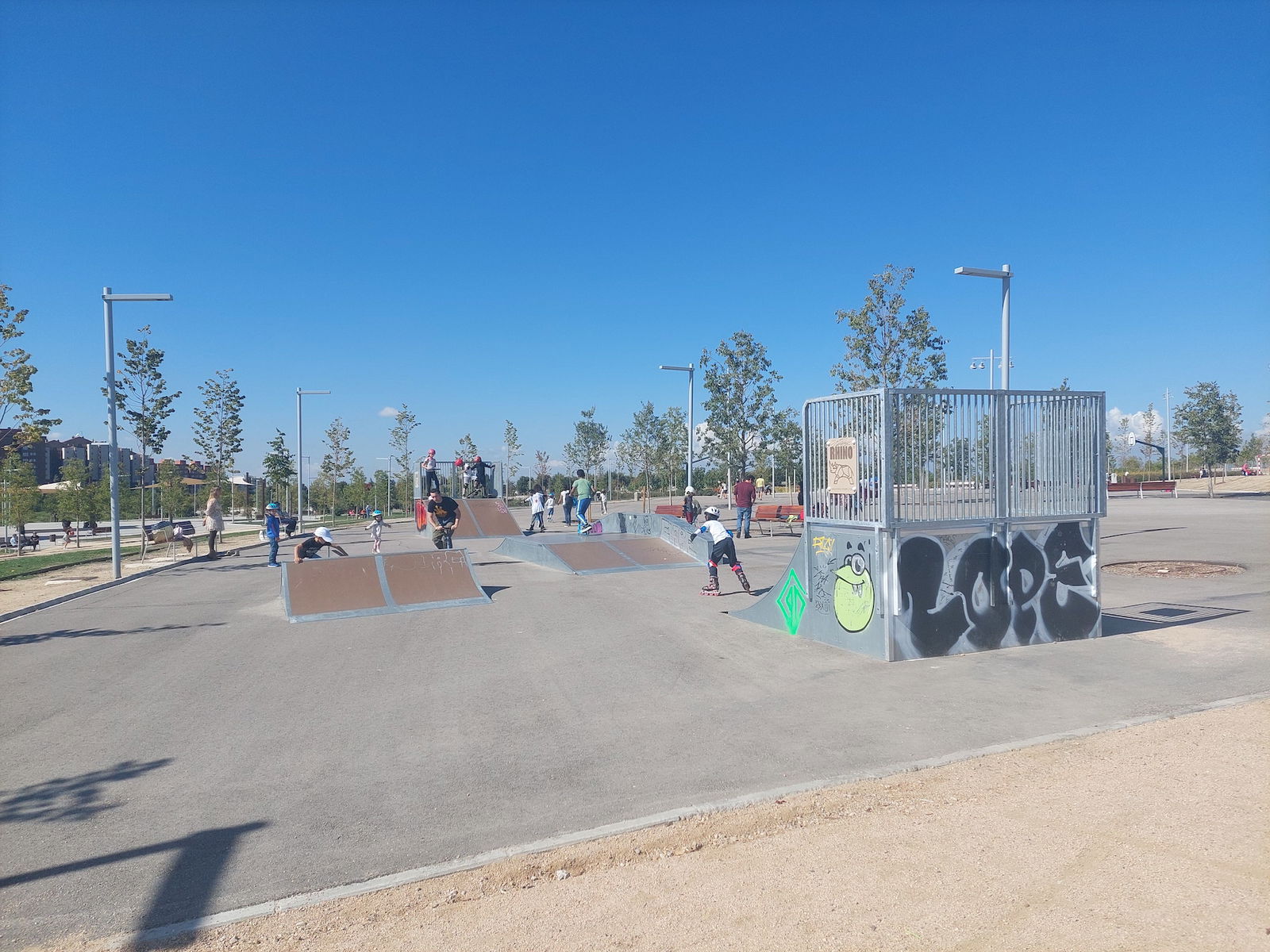 Cuña Verde skatepark is a small park with several basic skateboarding obstacles in a back and forth setup.