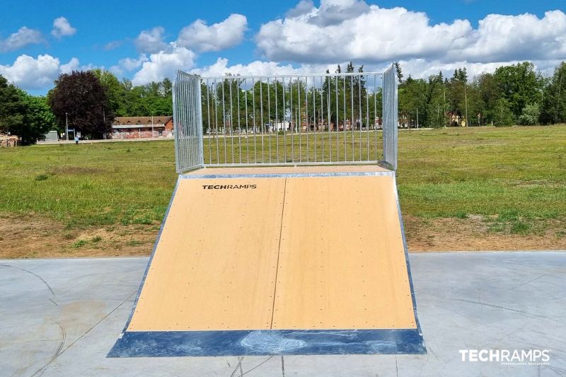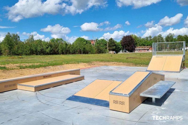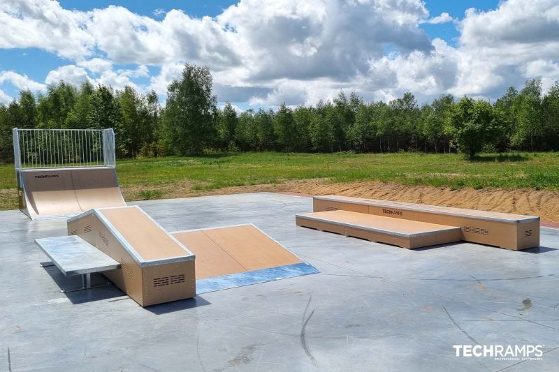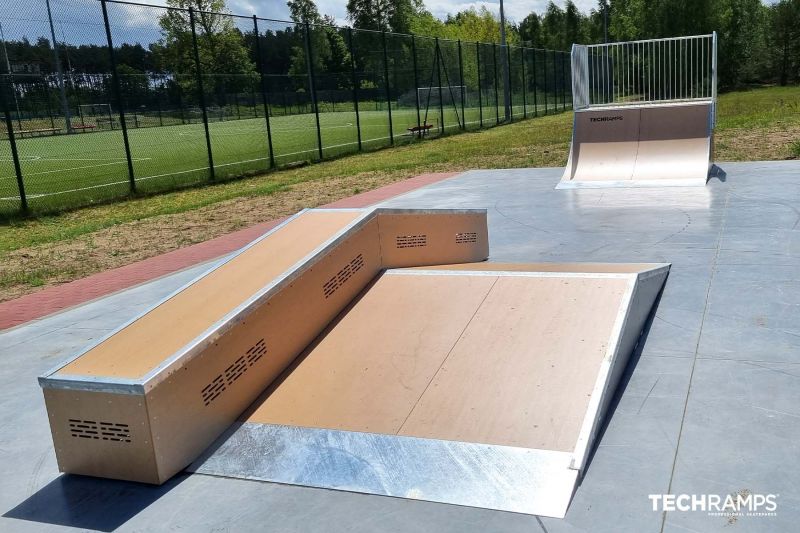 Czarne skatepark is a small park with several basic obstacles in a back and forth setup. The skatepark was built by Techramps.