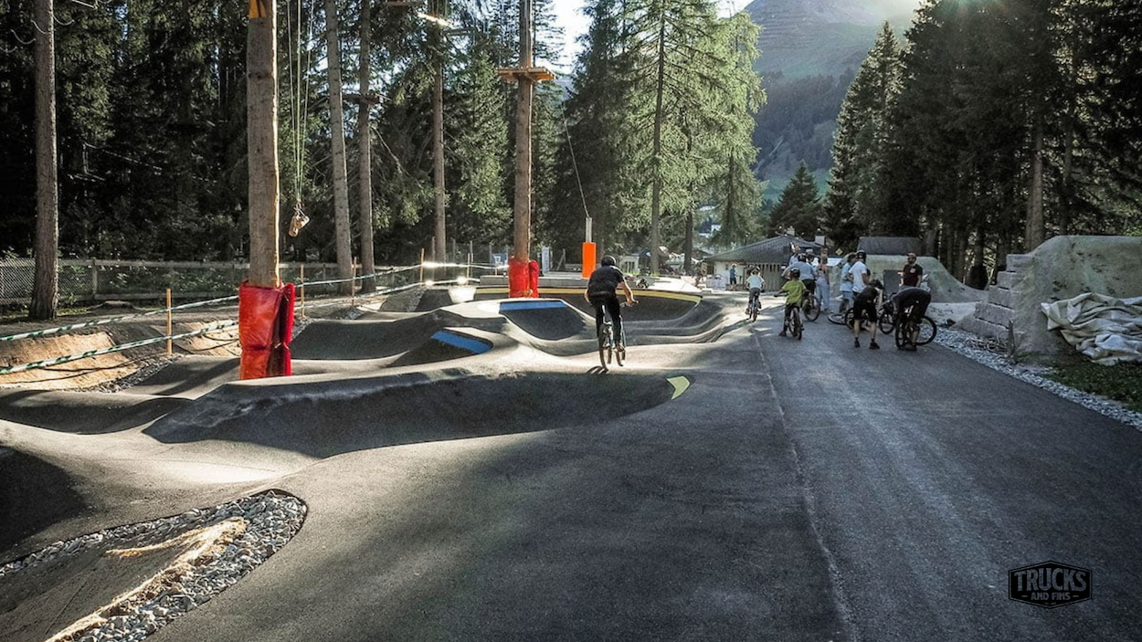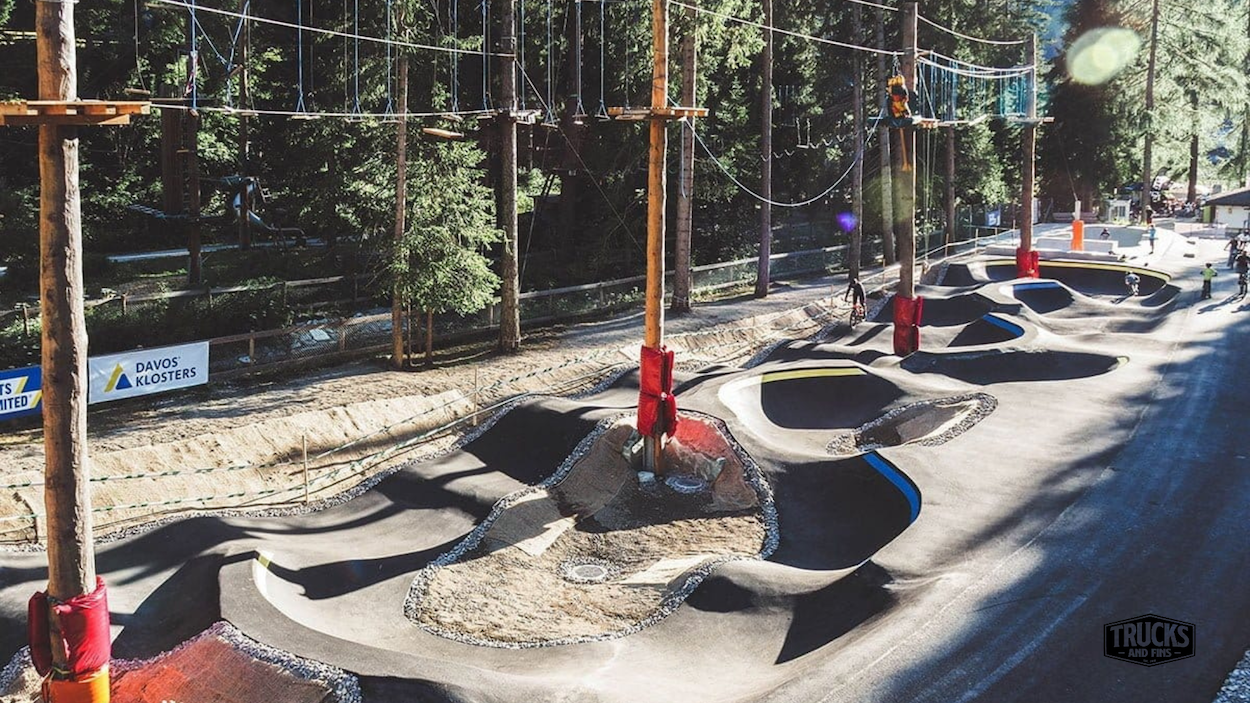 It is tough to find a place not to like in Switzerland, and here you have another reason to like it even more – the pumptrack in Davos, built by Alliance ASE. The 650 m² track (Paved Area: 350 m²) was placed right next to the already existing skatepark and at the end of the amazing trail, at the Aerial Adventure Park.