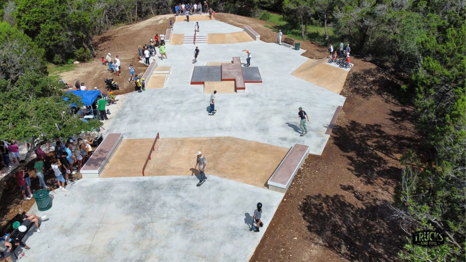 The Dorian Zev Kweller Memorial Skatepark, located in Founders Park, stands as the result of a decade-long effort led by Dripping Springs Skatepark Inc. The journey began in 2014, when local skateboarders envisioned building a dedicated skatepark to serve Dripping Springs' growing skate community. To help foster that community, a weekly skate night was launched at Dripping Springs Ranch Park—an experimental event that quickly became one of the city's most anticipated and well-attended youth gatherings. Now, ten years later, Ranch Park Skate Night remains a vibrant part of local culture. It has played a pivotal role in creating friendships, developing talent, and generating positive impact for countless young people. It was during these community skate nights in 2019 that SPA Skateparks facilitated the first of two public design input sessions. These collaborative meetings produced concept boards that helped spark a multi-year fundraising campaign. Thanks to numerous local events and private contributions, Dripping Springs Skatepark Inc. successfully raised over $100,000. By partnering with the Dripping Springs Community Foundation—a 501(c)(3) organization—the group gained the ability to formally manage and distribute funds for the skatepark. A major turning point came in 2022, with the passing of the Hays County Parks Bond, which provided the majority of the funding. The City of Dripping Springs also contributed, allocating additional resources for park amenities such as benches, trash receptacles, signage, and tables. The skatepark was designed and built by SPA Skateparks, who served as both the design-build contractor and Project Manager. Their scope included land clearing, subgrade preparation, and the full construction of the park's concrete skate terrain.