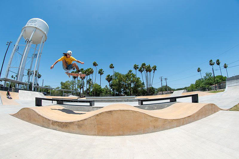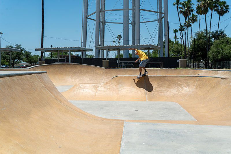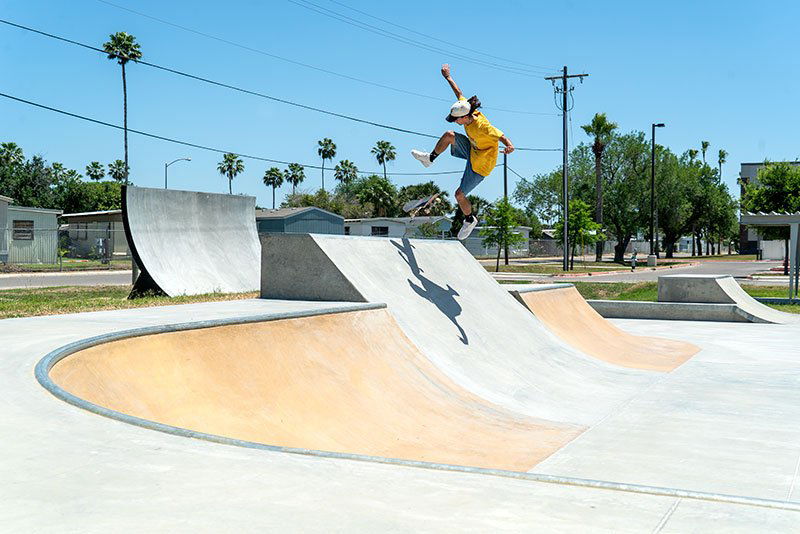 Edinburg skatepark is a concrete park built by SpohnRanch Skateparks in 2022. The skatepark is made up of a bowl and street section.