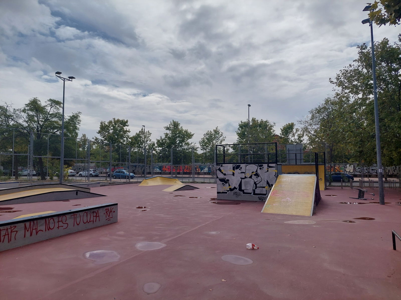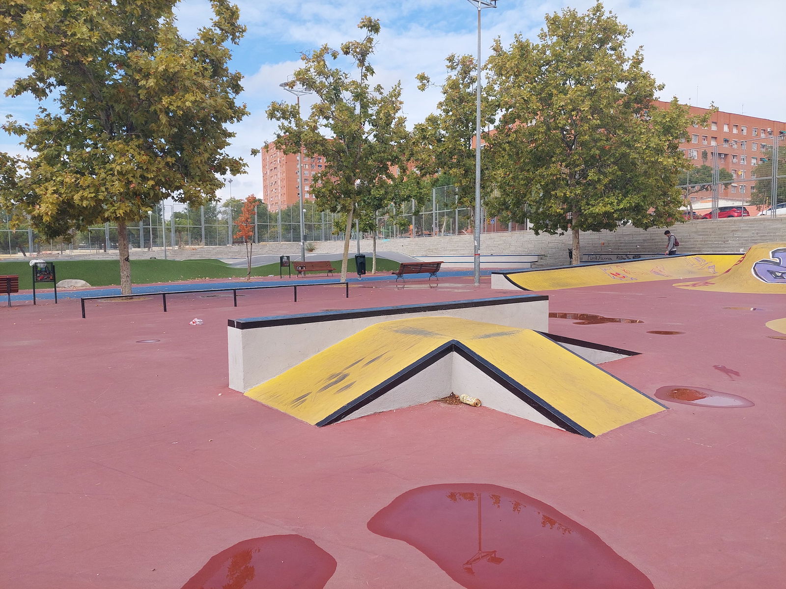 El Pozo Skatepark, located in Vallecas, Madrid, is a concrete skatepark situated near the El Pozo train station. Known for its somewhat rugged layout, it includes several unusual modules, which, while offering variety, have been criticized for their rough surface and suboptimal design. Despite these drawbacks, the park remains a go-to spot for local skaters seeking a challenge. It's not a polished, high-end facility, but it holds its own in the Madrid skate scene, particularly for those looking for a DIY-style skate experience.