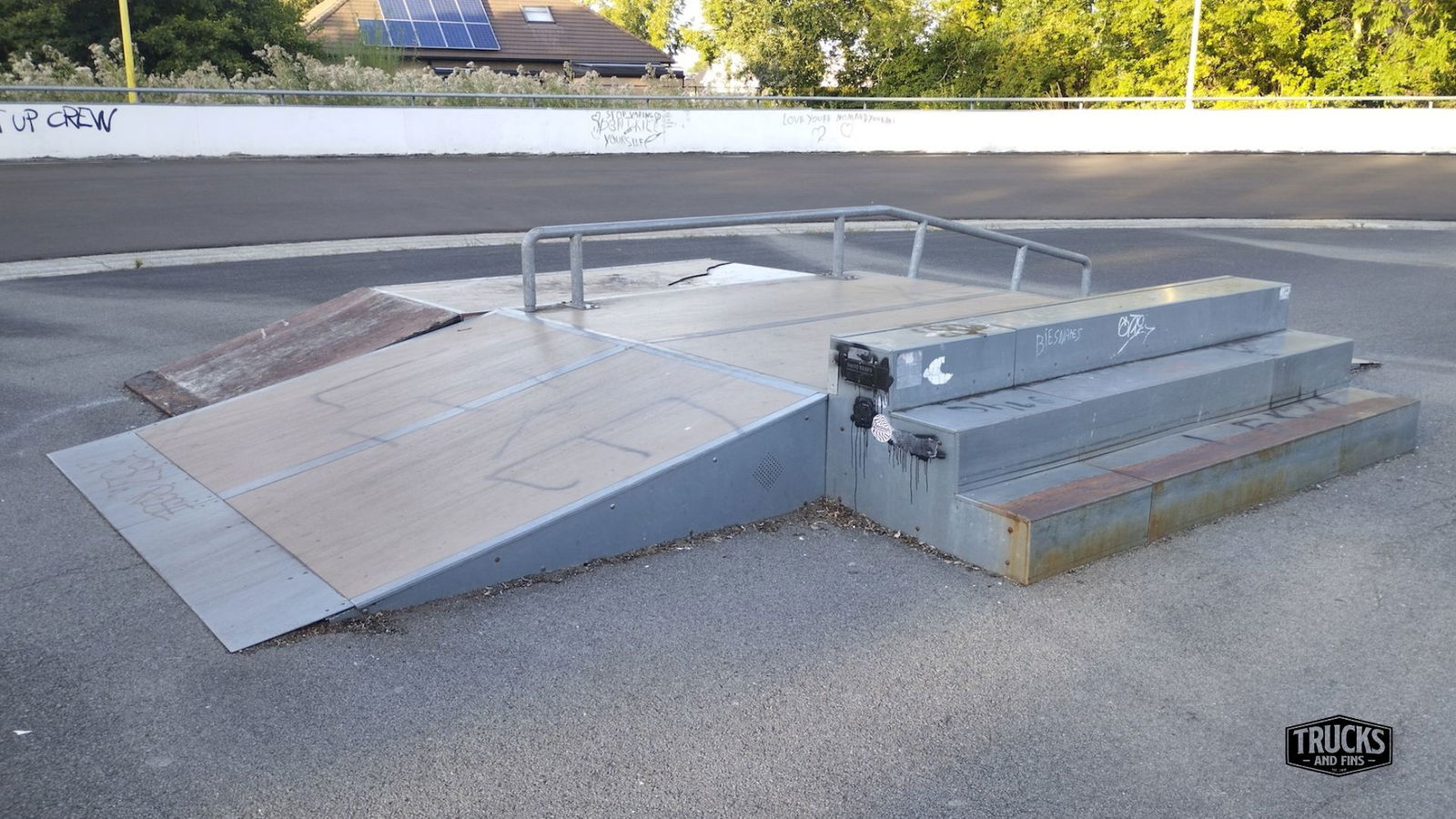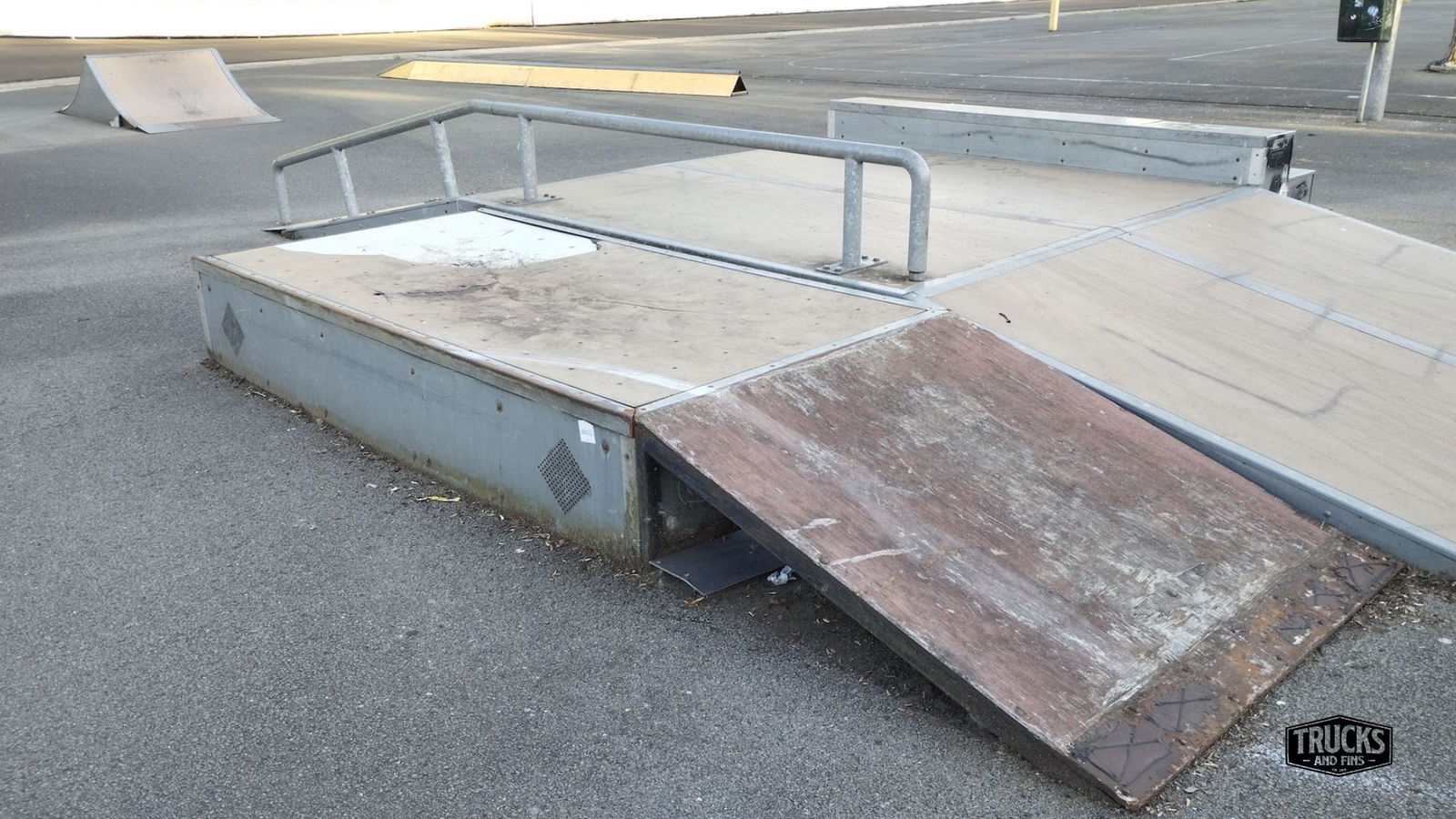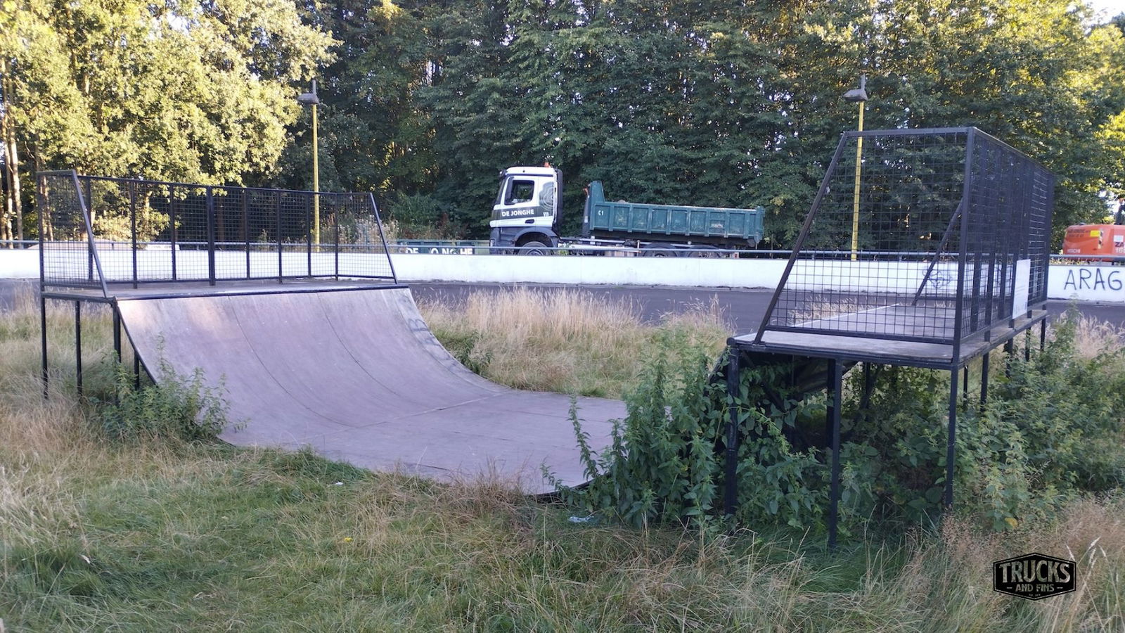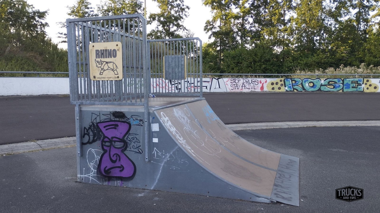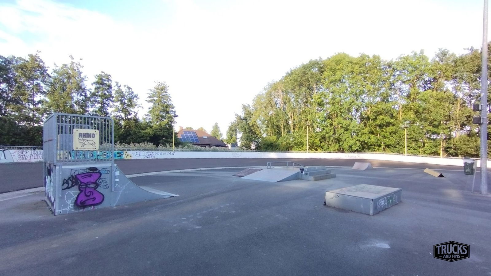 Ertvelde skatepark features a miniramp and a a nice variety of obstacles in a back and forth setup. The skatepark was built by Rhino Ramps.