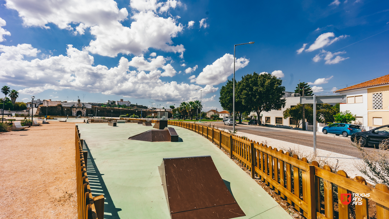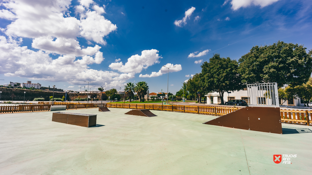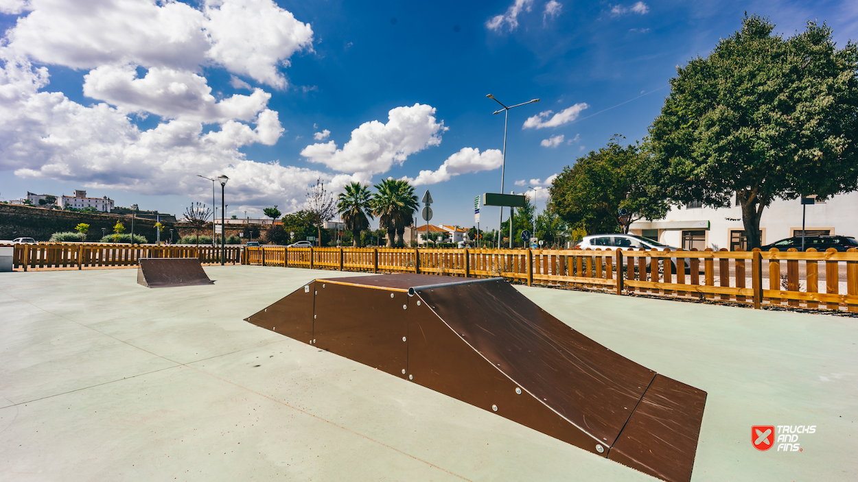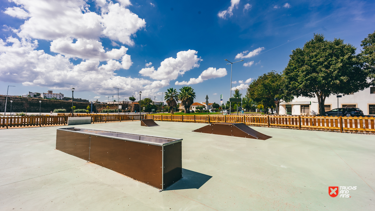 Estremoz skatepark is a small park with several basic skateboarding obstacles in a back and forth setup.