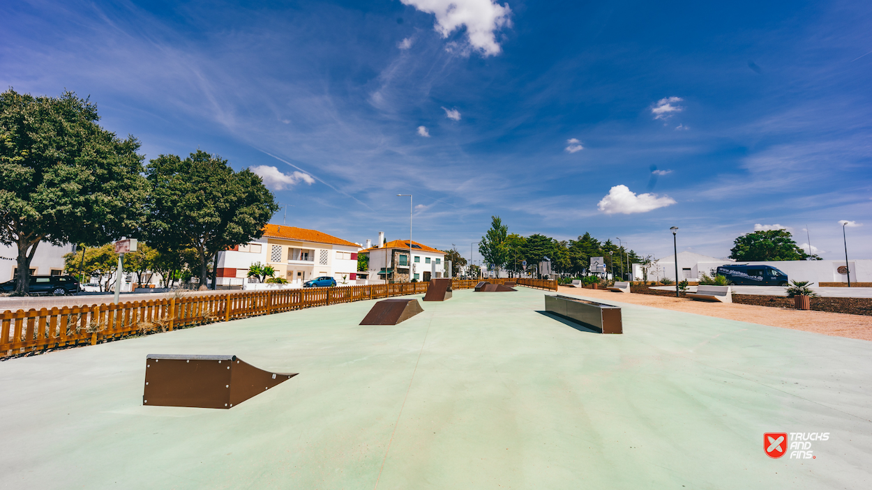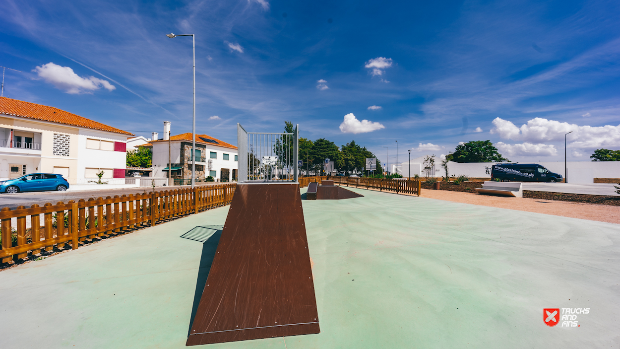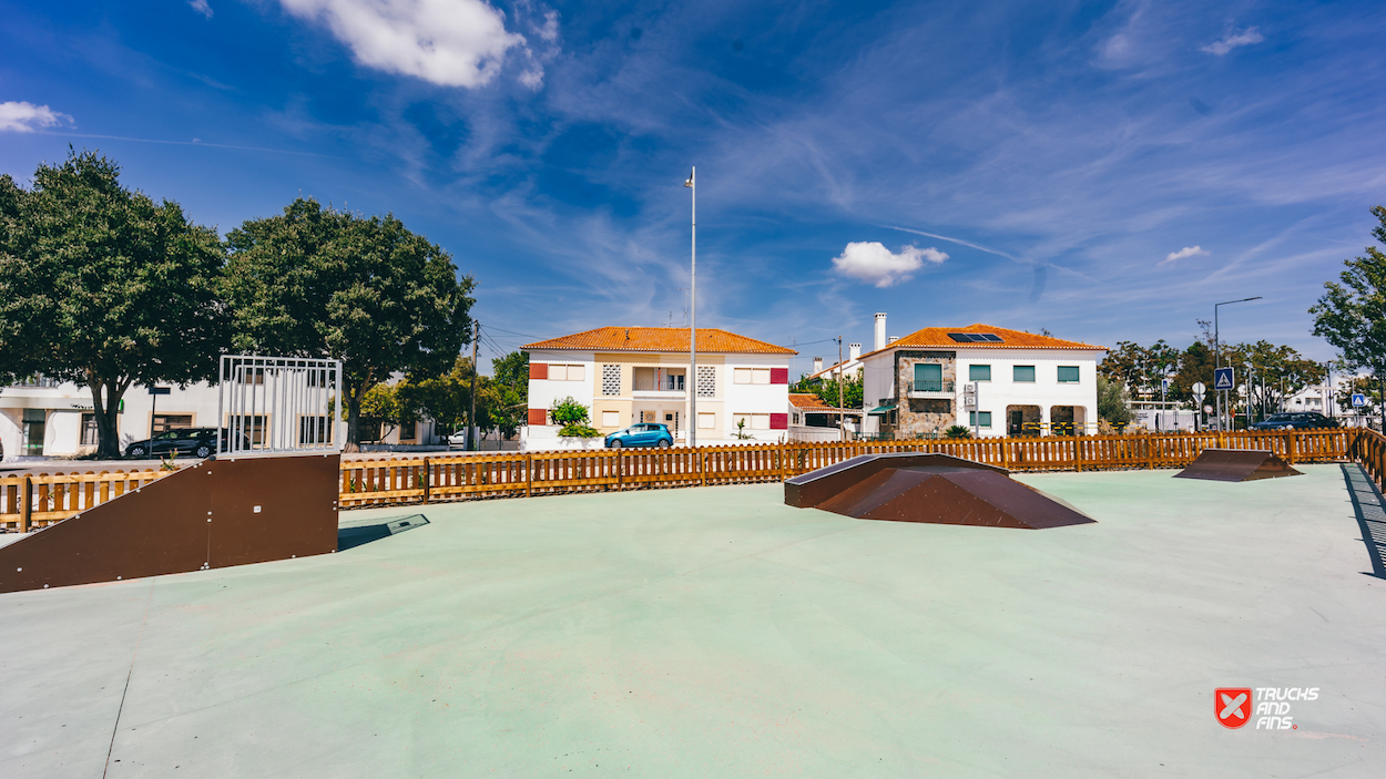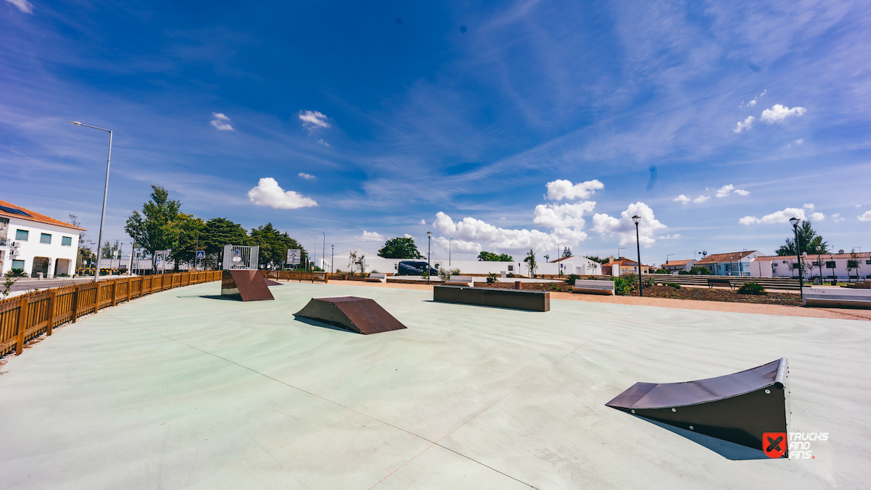 Estremoz skatepark is a small park with several basic skateboarding obstacles in a back and forth setup.
