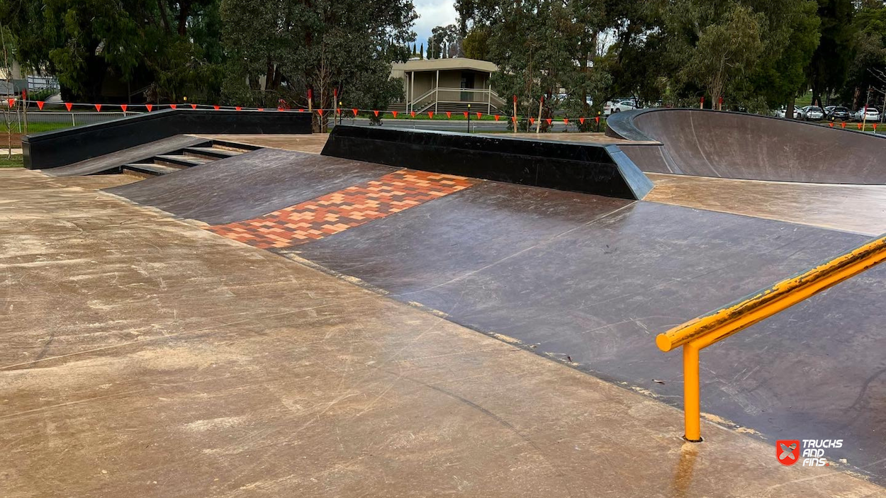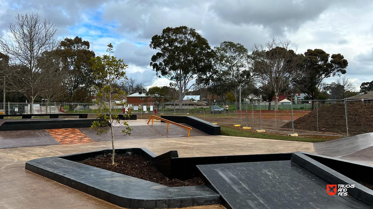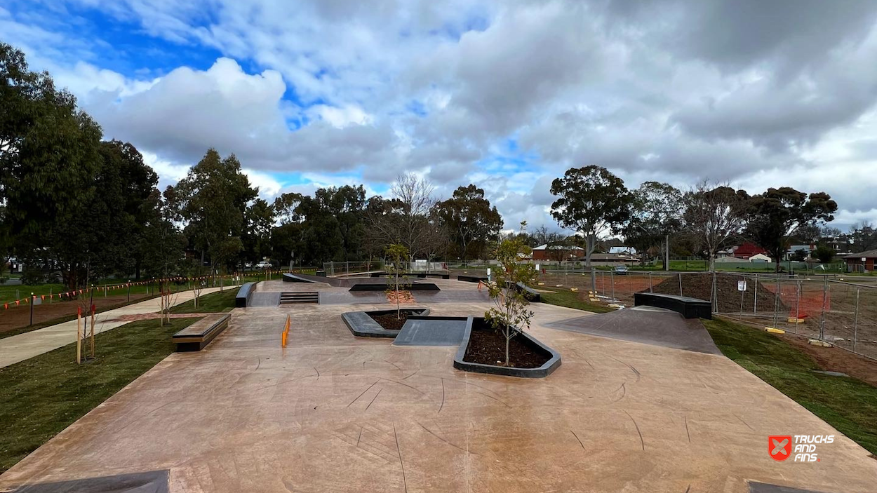 Ewing Park Skate Park, located at 36 Havlin Street West, Bendigo, Victoria, is a district-level facility designed to cater to skaters of all skill levels. The park features a mini bowl with a taco, ledges, a quarter pipe, flat bars, a euro gap, down rails, hubbas, and stairs. Amenities include shaded seating and a drinking fountain, providing a comfortable environment for users.