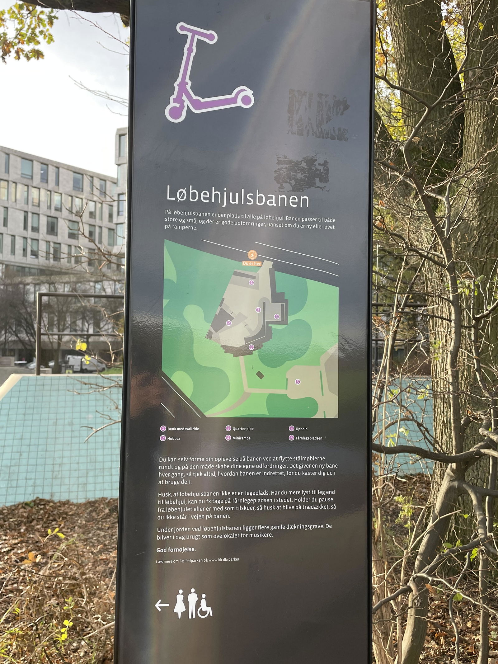 Fælledparkens scooter park is a concrete park designed for scooters.