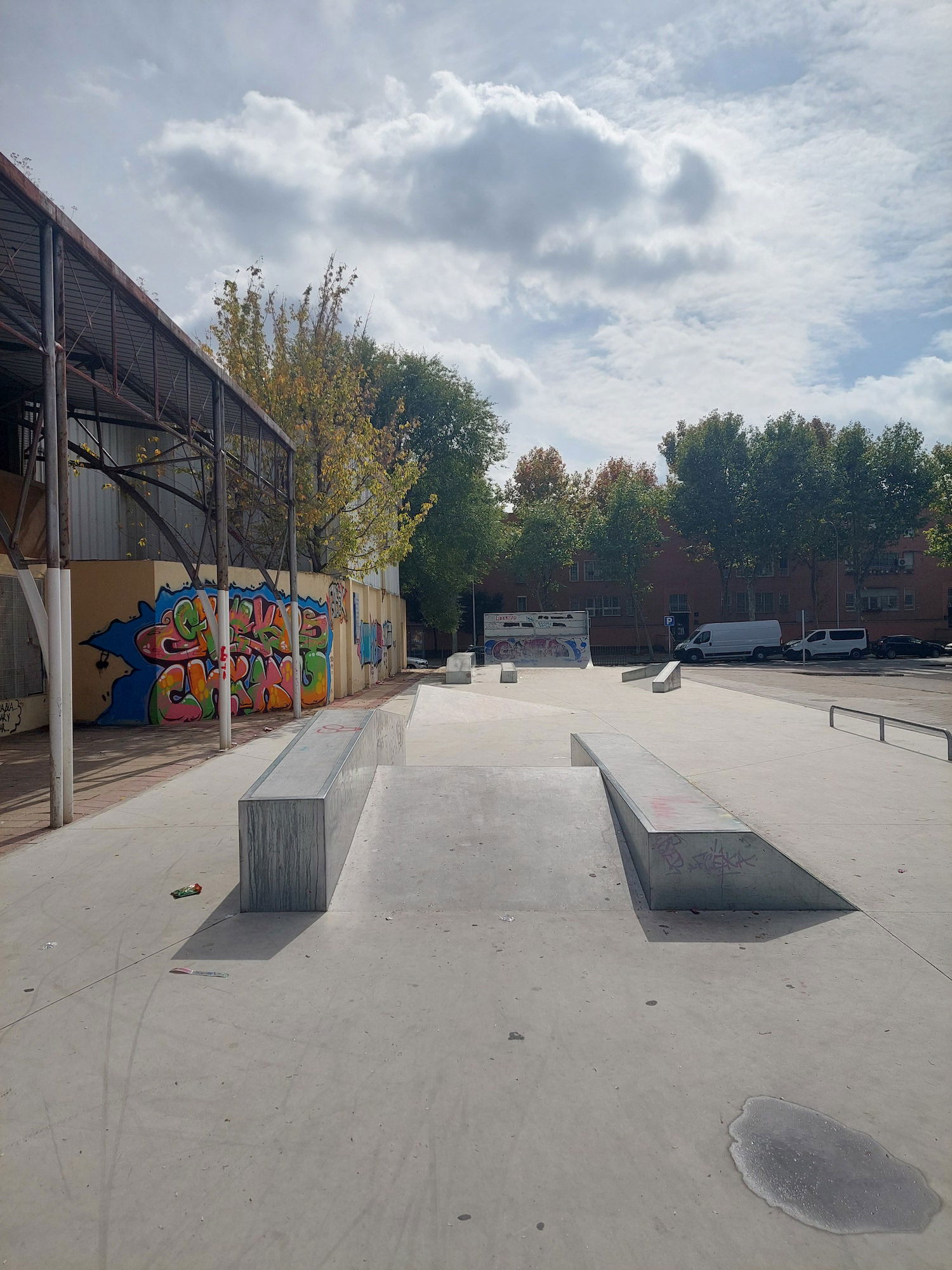 Fernando Ortizm skatepark is a small park with several basic skateboarding obstacles in a back and forth setup.