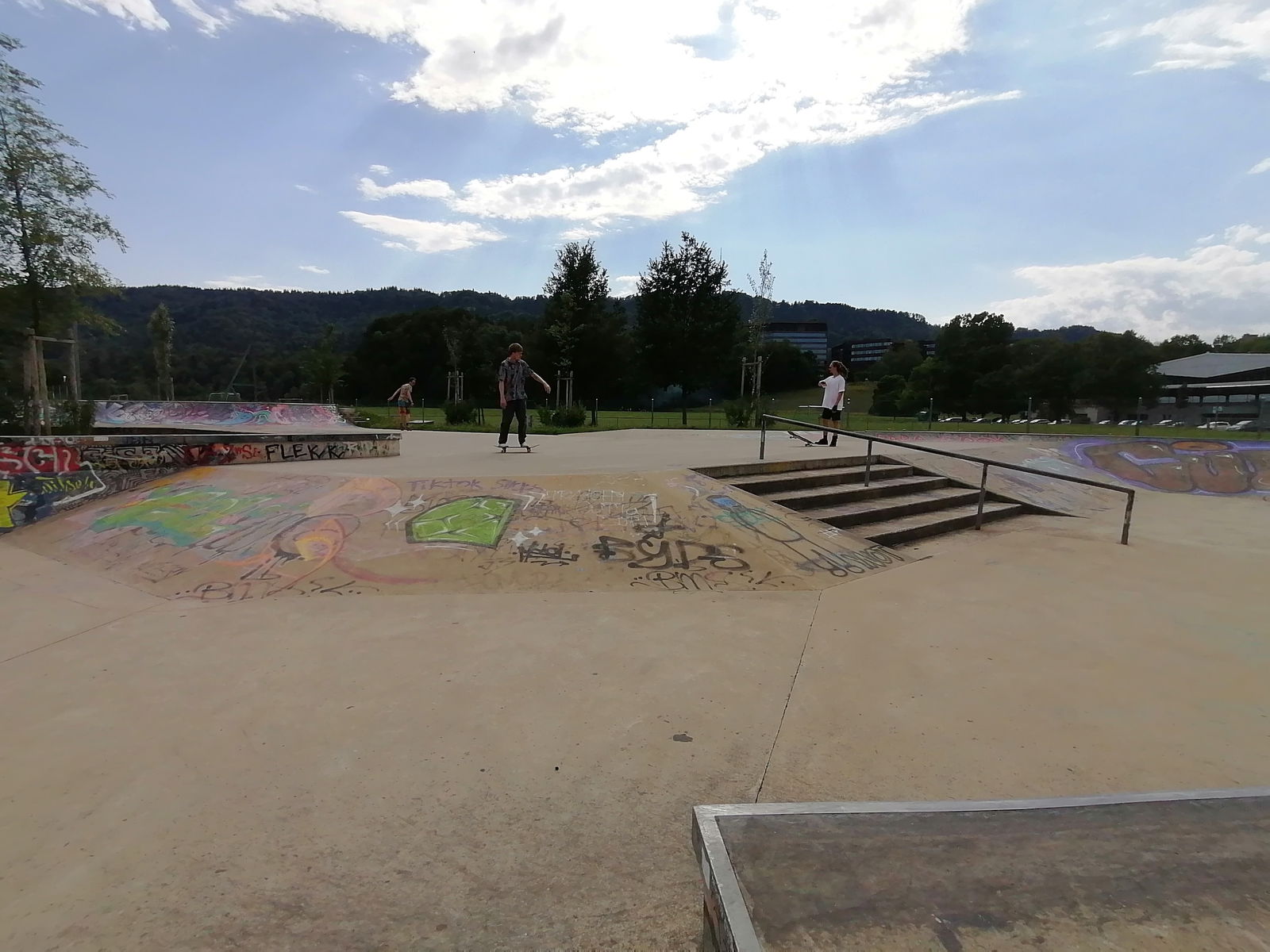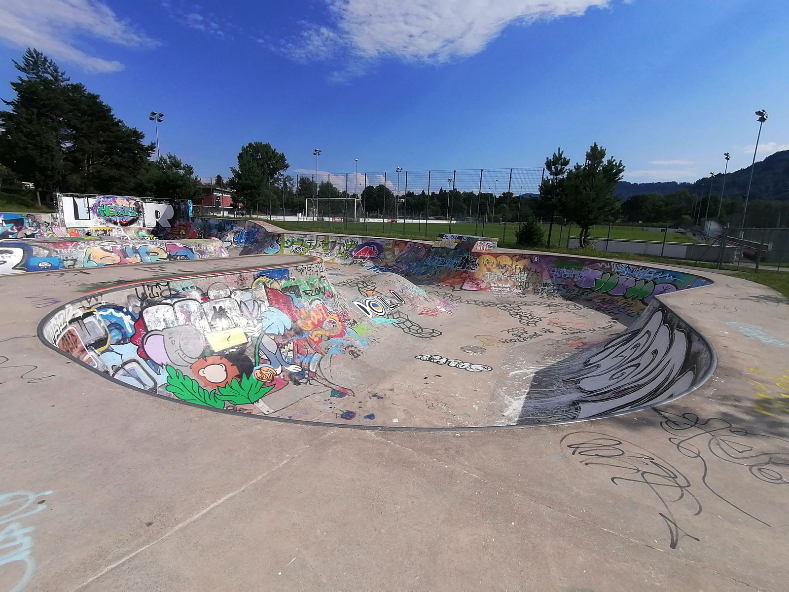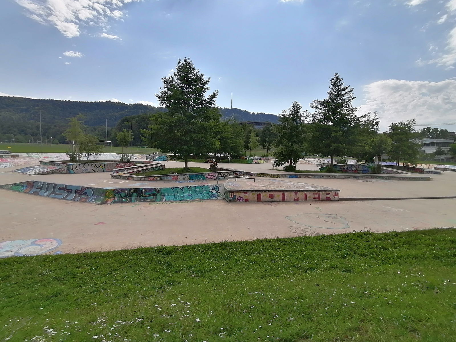 Freestyle-Park Allmend Zürich skatepark is a nice concrete skatepark that has something for everyone whether you're a rookie or a more experienced skater. The skatepark is made up of several bowls and one enourmous street area with a nice variety fo obstacles.
