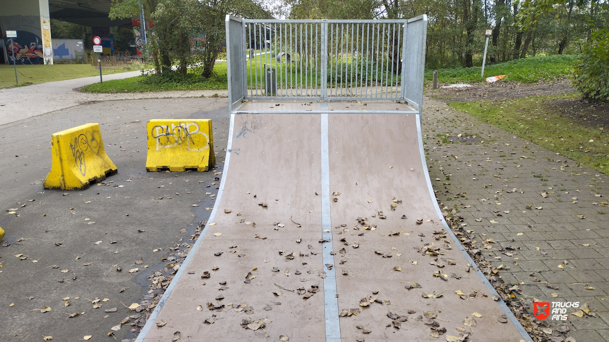 Gentbrugge skatepark, located next to Driebeek sports complex, features a miniramp. The miniramp was built by Rhino Ramps.