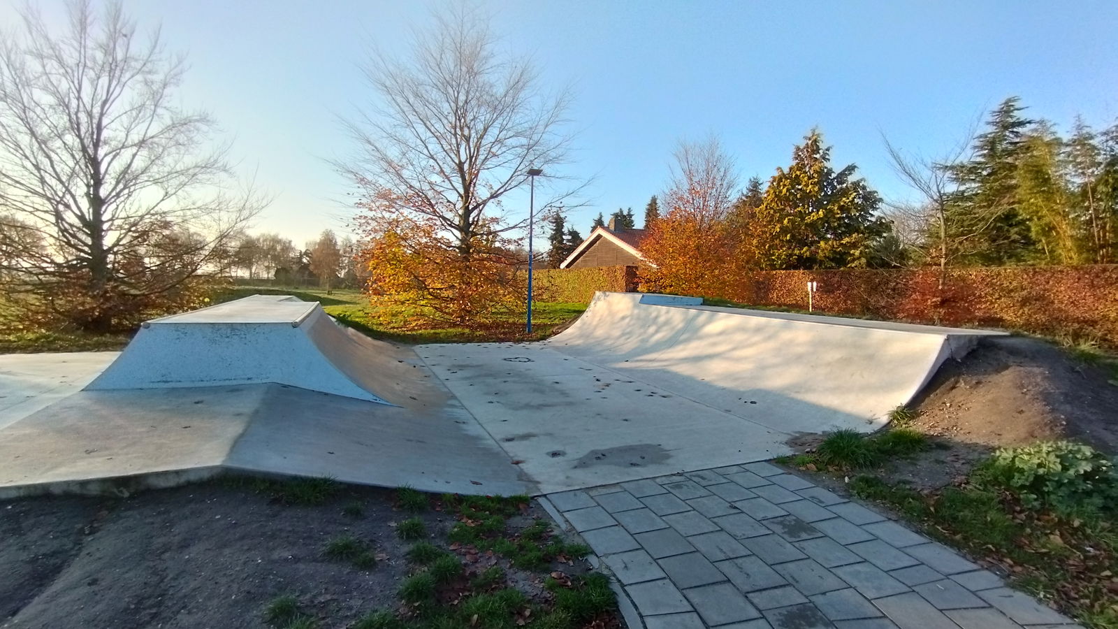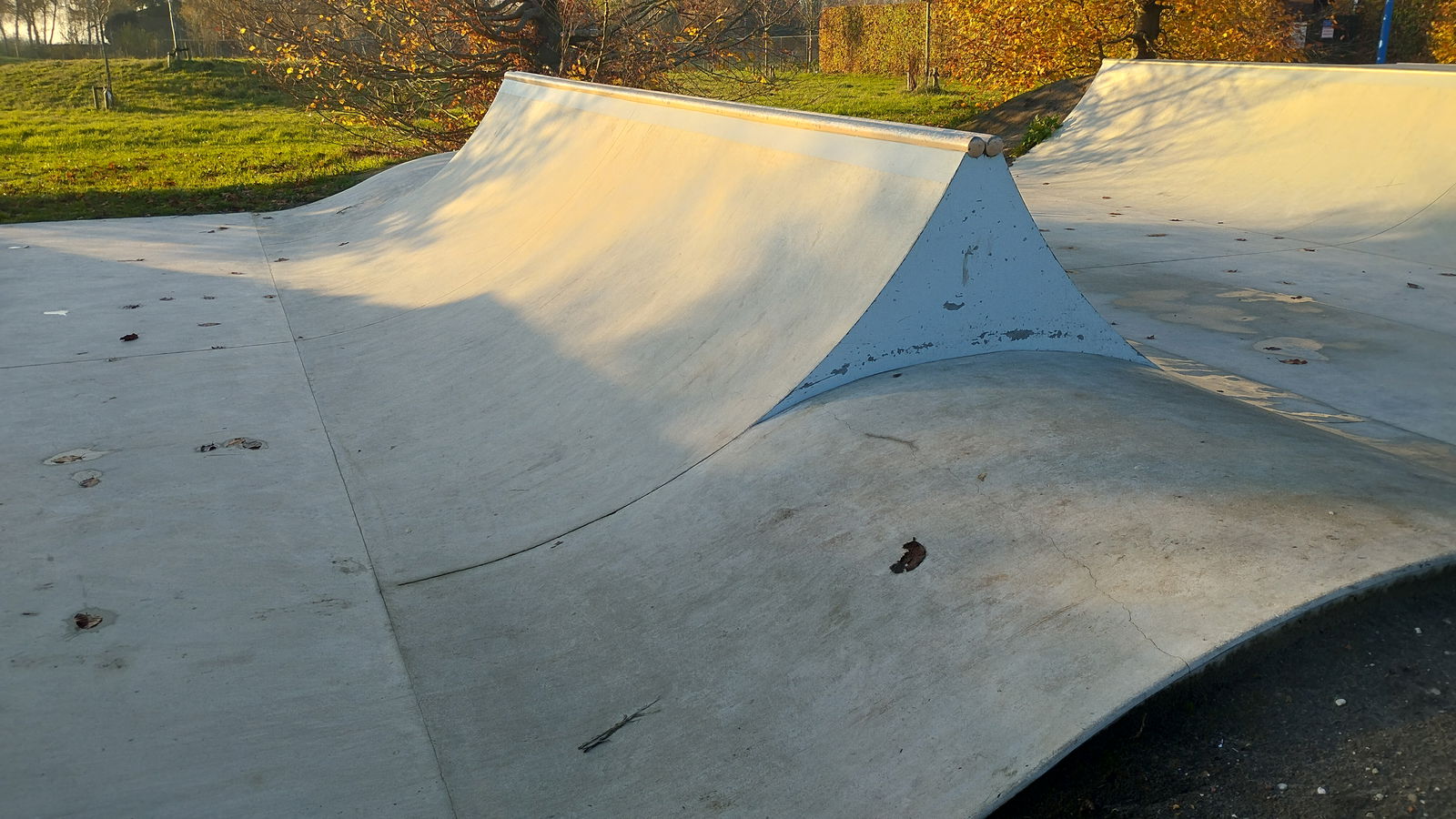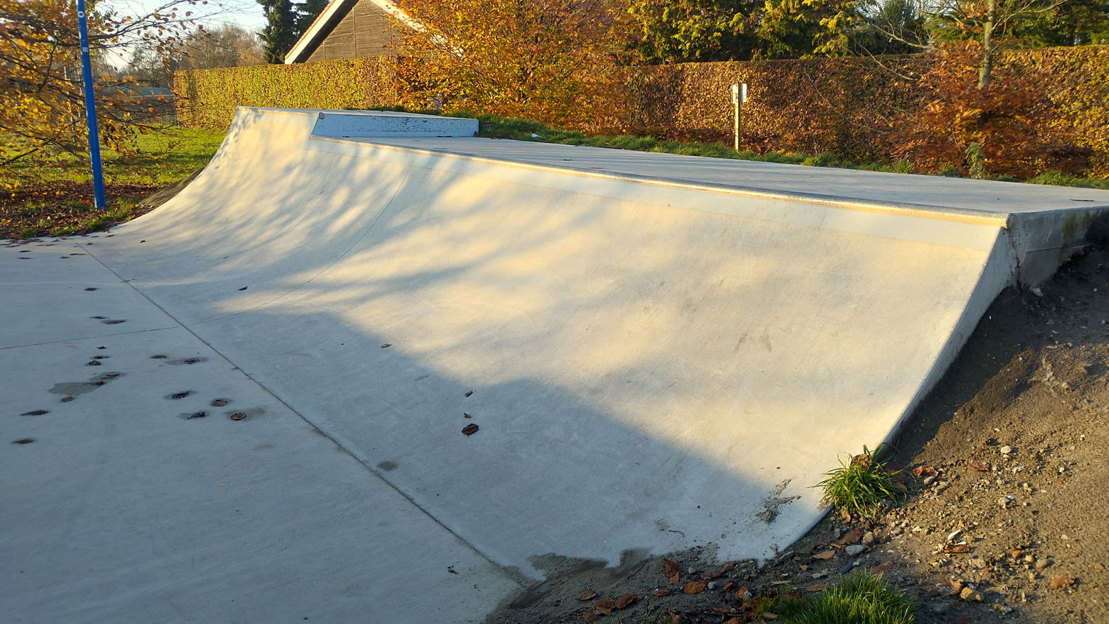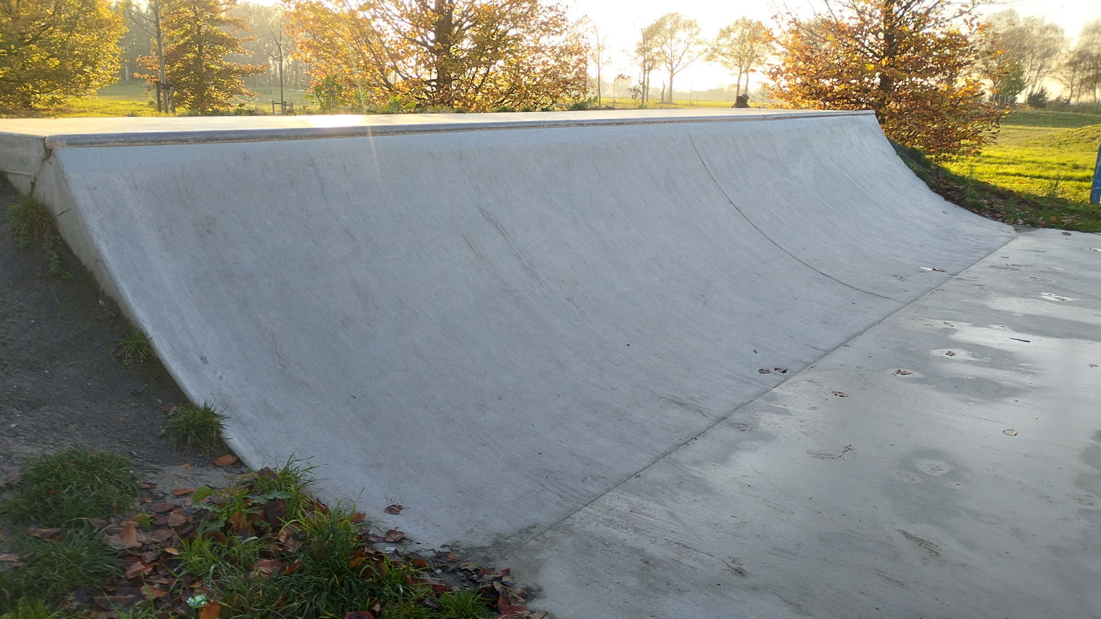 Gilze skatepark features a concrete miniramp with spine and jumpbox.