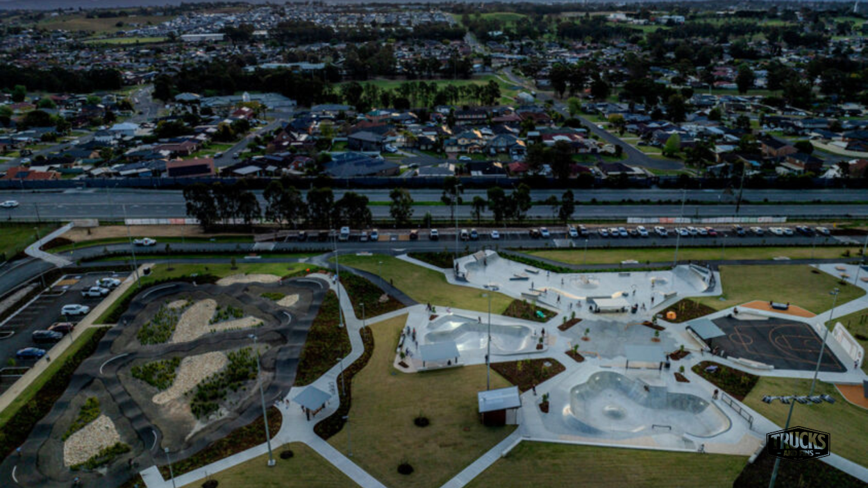 The youth space is part of a larger recreational precinct in Penrith, designed to meet the current and future needs of young people in one of Greater Sydney’s fastest-growing regions. Expansive green lawns, landscaped garden beds, and a central paved boulevard help define the youth and skate areas into distinct zones, forming a central pedestrian plaza surrounded by active recreation spaces. The looped plaza and two elevated bowls offer a varied and dynamic skate experience that appeals to a wide range of users. By incorporating separate skate zones, a half court, parkour area, and additional youth-focused amenities, the space supports high capacity and allows multiple user groups to enjoy the facility simultaneously, even during peak periods. The skatepark was designed and built by Convic skateparks.