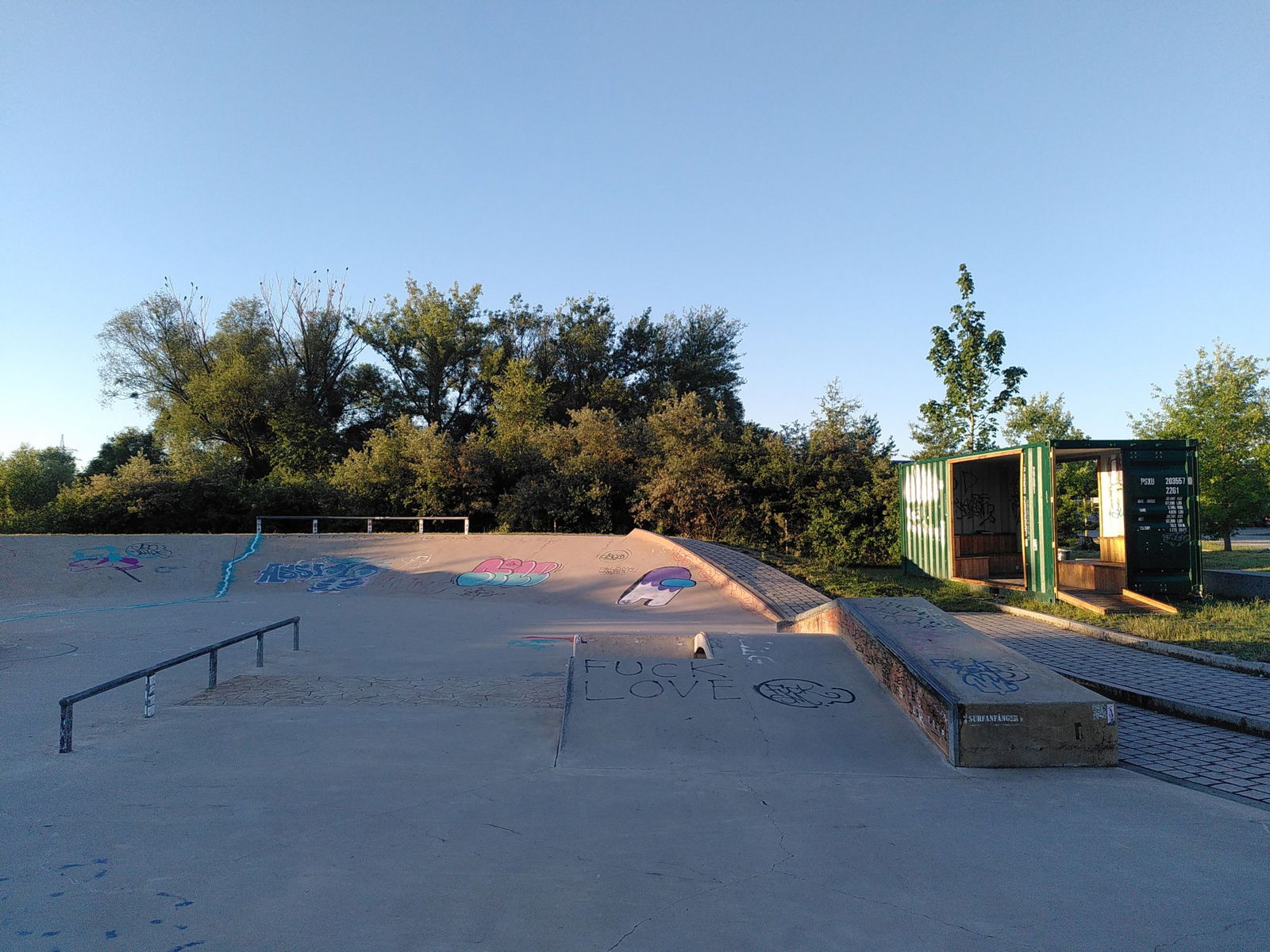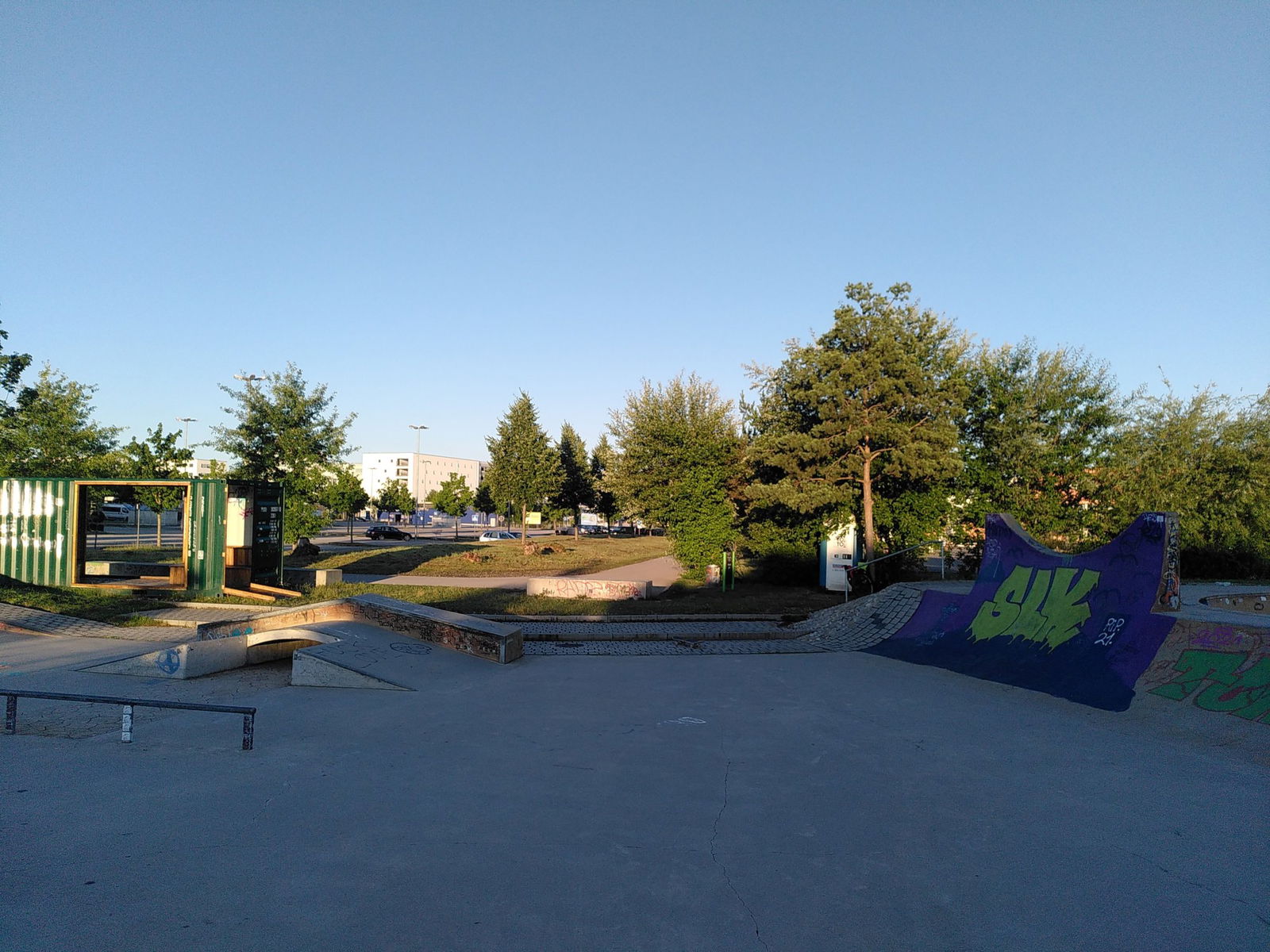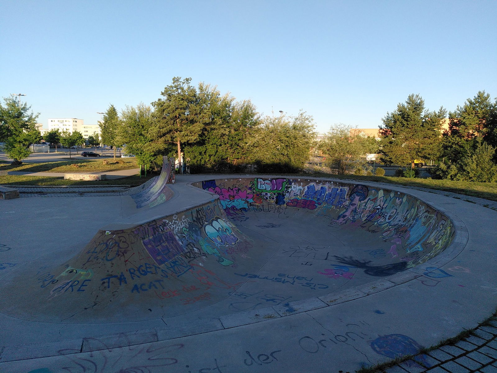 Gleisdreieck skatepark is a concrete park featuring an open bowl connected to a street section.