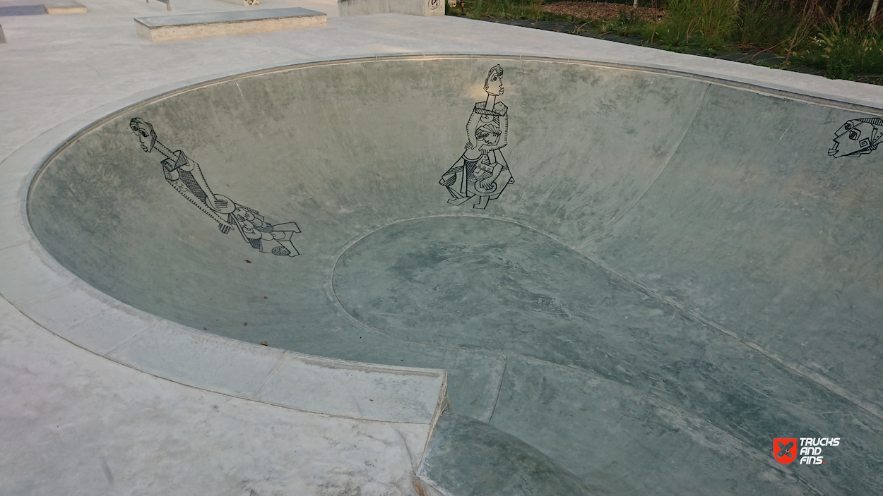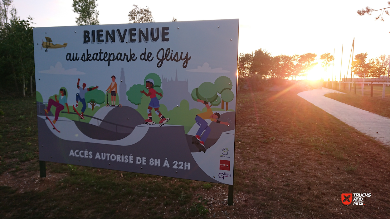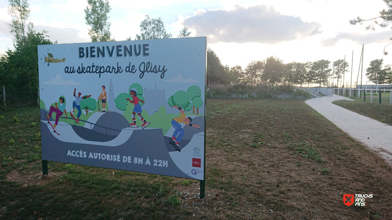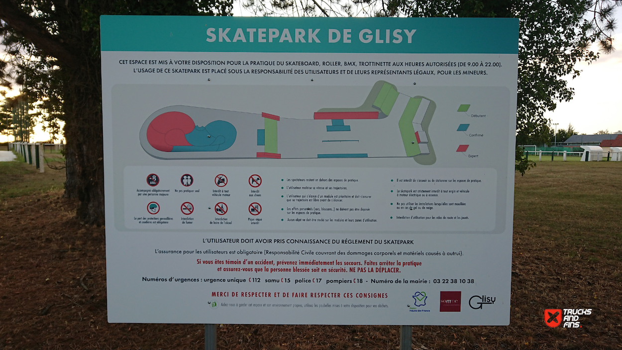 Glisy skatepark is a concrete park made up of a bowl and street area with a nice variety of obstacles.