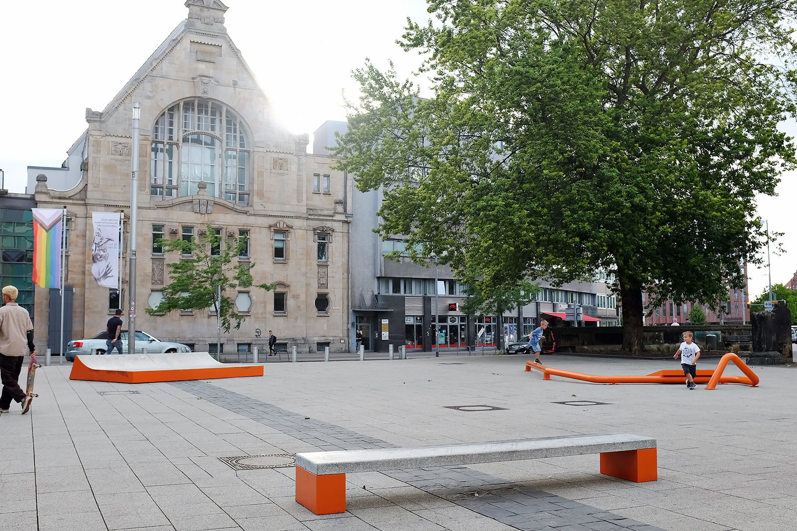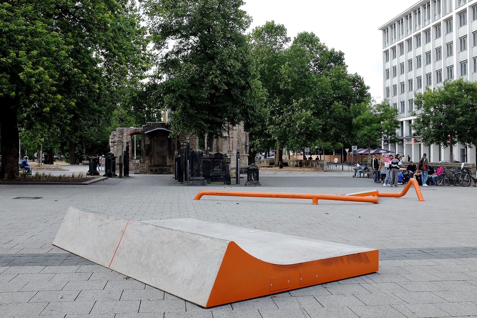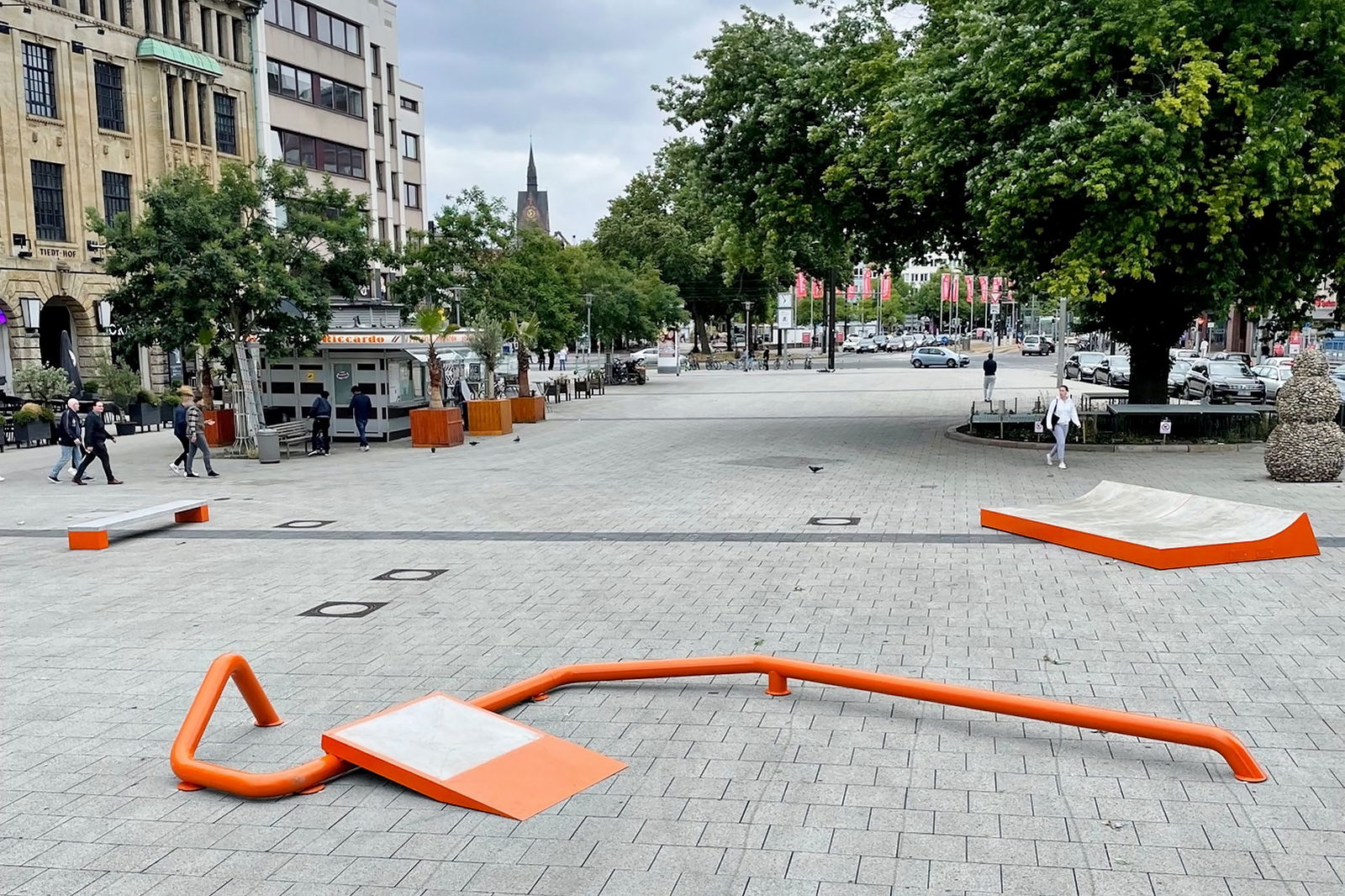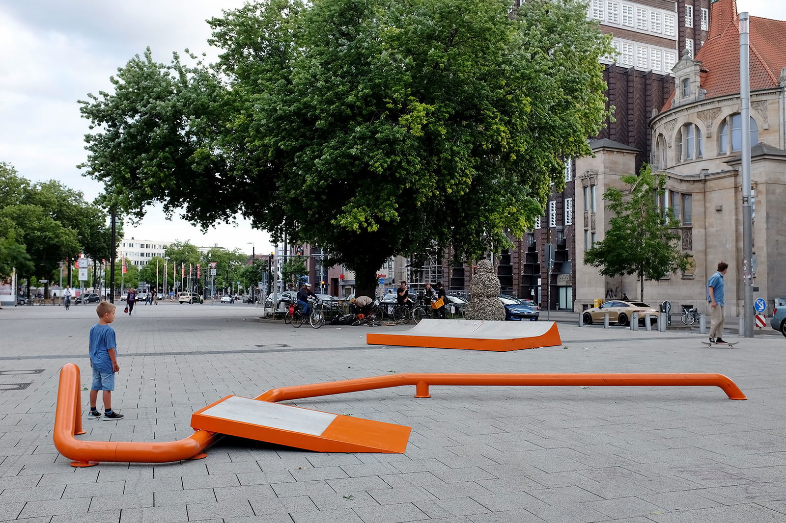 Yamato Living Ramps is back with an new mini spot in Hannover: Goseriedeplatz Pop-up spot. The obstacles were placed at the downtown square in July 2022. So skate it whilst you can! The sports and culture department of the city of Hannover approached Yamato to develop a temporary, movable, yet robust obstacles. This is what we came up Yamato came up with. The ground might be a bit rough but after all, it’s street skating, right?! This will stay there until November 2022, and will then be moved to a new location.