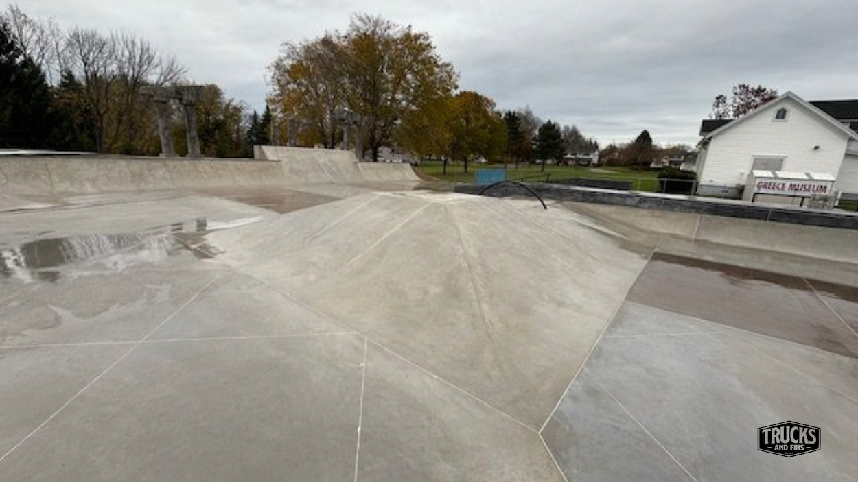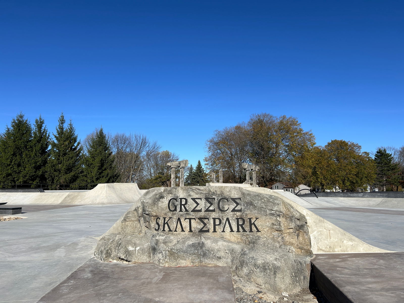 The skatepark features a unique Greek ruins theme, incorporating elements that pay homage to the town's name. As of October 2024, the skatepark was completed, with the official opening scheduled for spring 2025. The Greece Skatepark stands as a testament to community collaboration and dedication, providing a modern space for skaters of all levels to enjoy.
