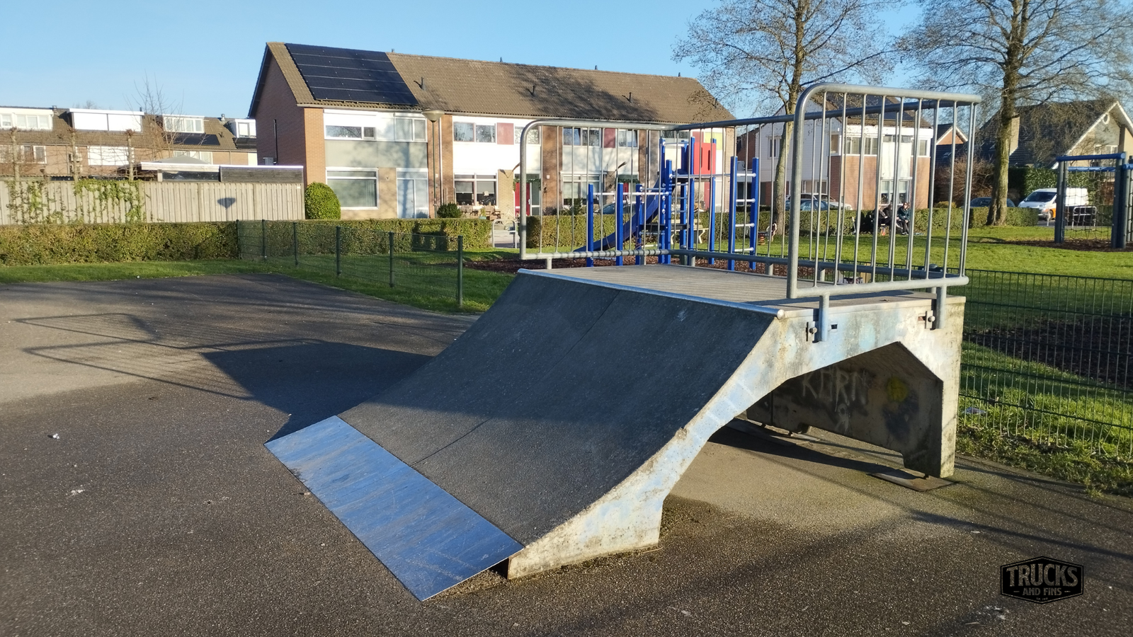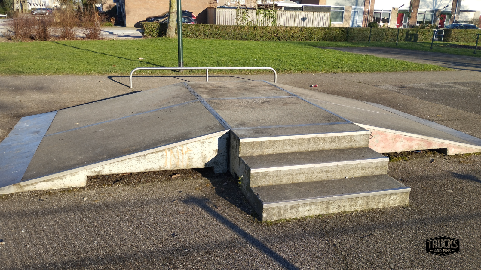 Hank skatepark is a small park with several basic skateboarding obstacles in a back and forth setup.