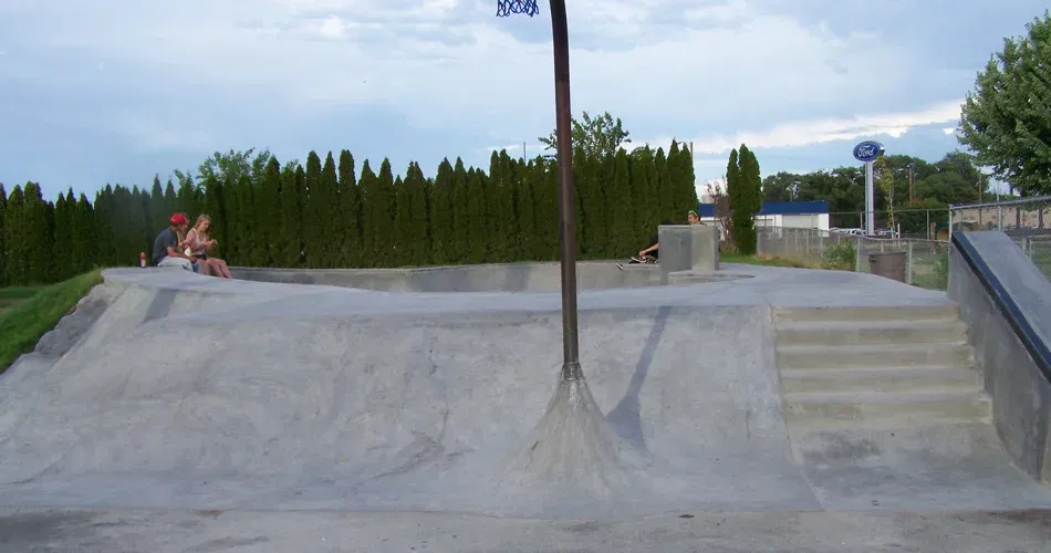Hermiston skatepark is a concrete park with transition and street elements. The skatepark was built by Dreamland Skateparks.