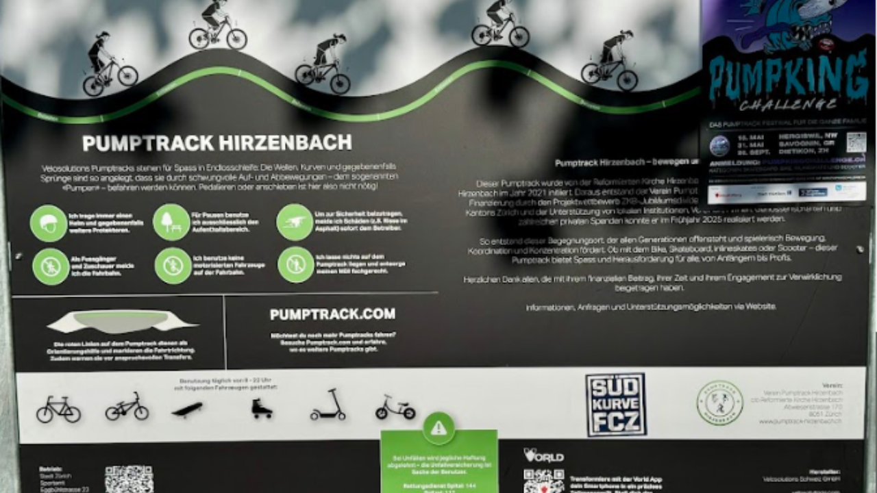 Hirzenbach pumptrack is an asphalt bike and skateboarding track.