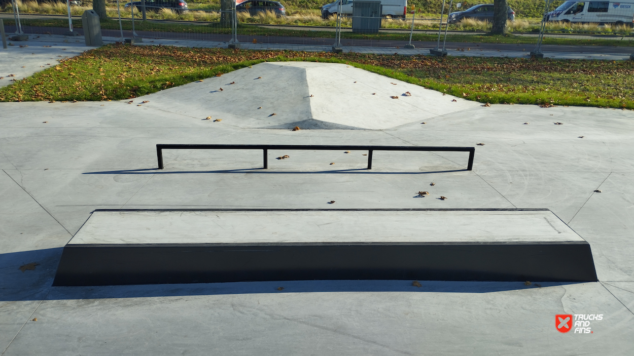 Hoboken-Polder skatepark is a small concrete park with several basic obstacles in a back and forth setup.