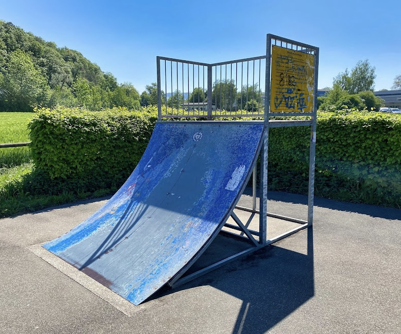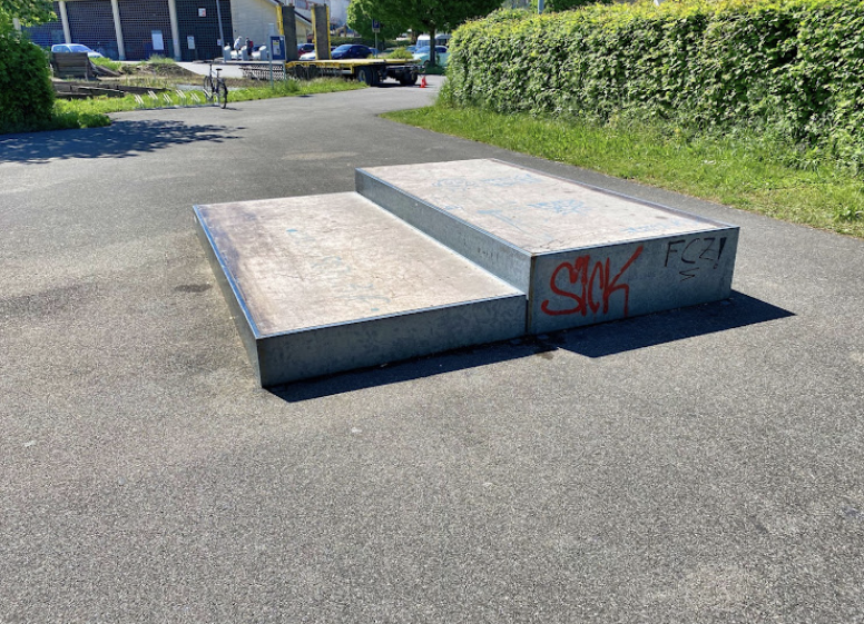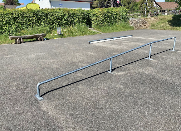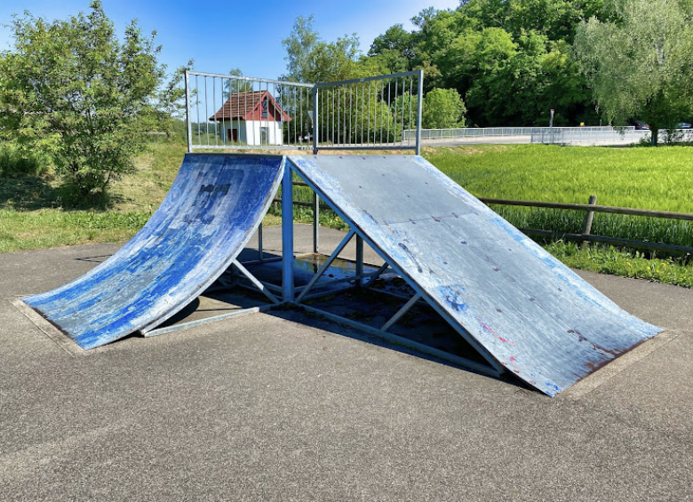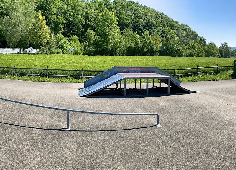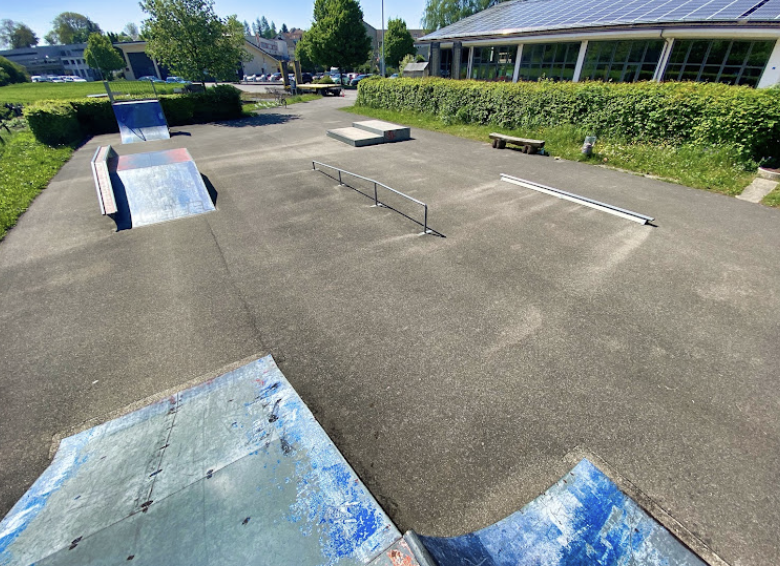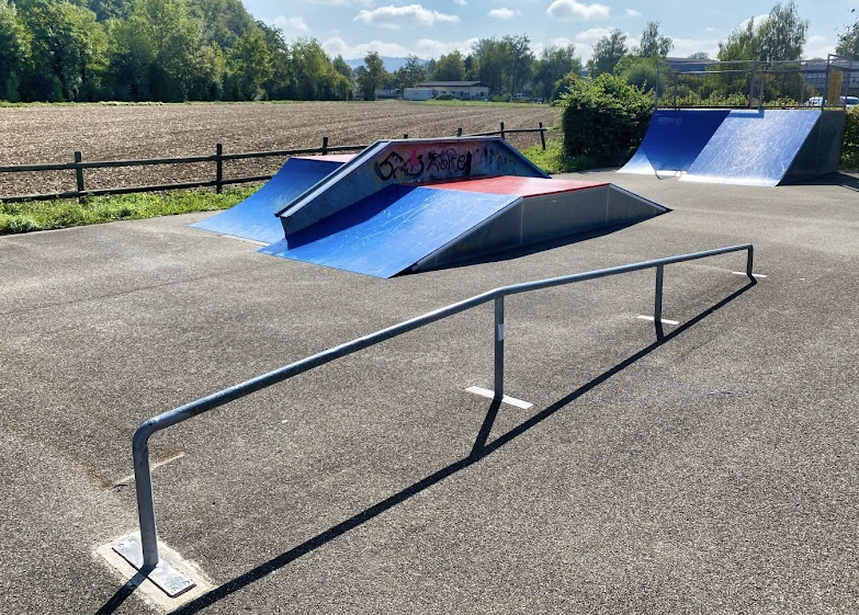 Hochfelden skatepark features a miniramp and several basic skateboarding obstacles.